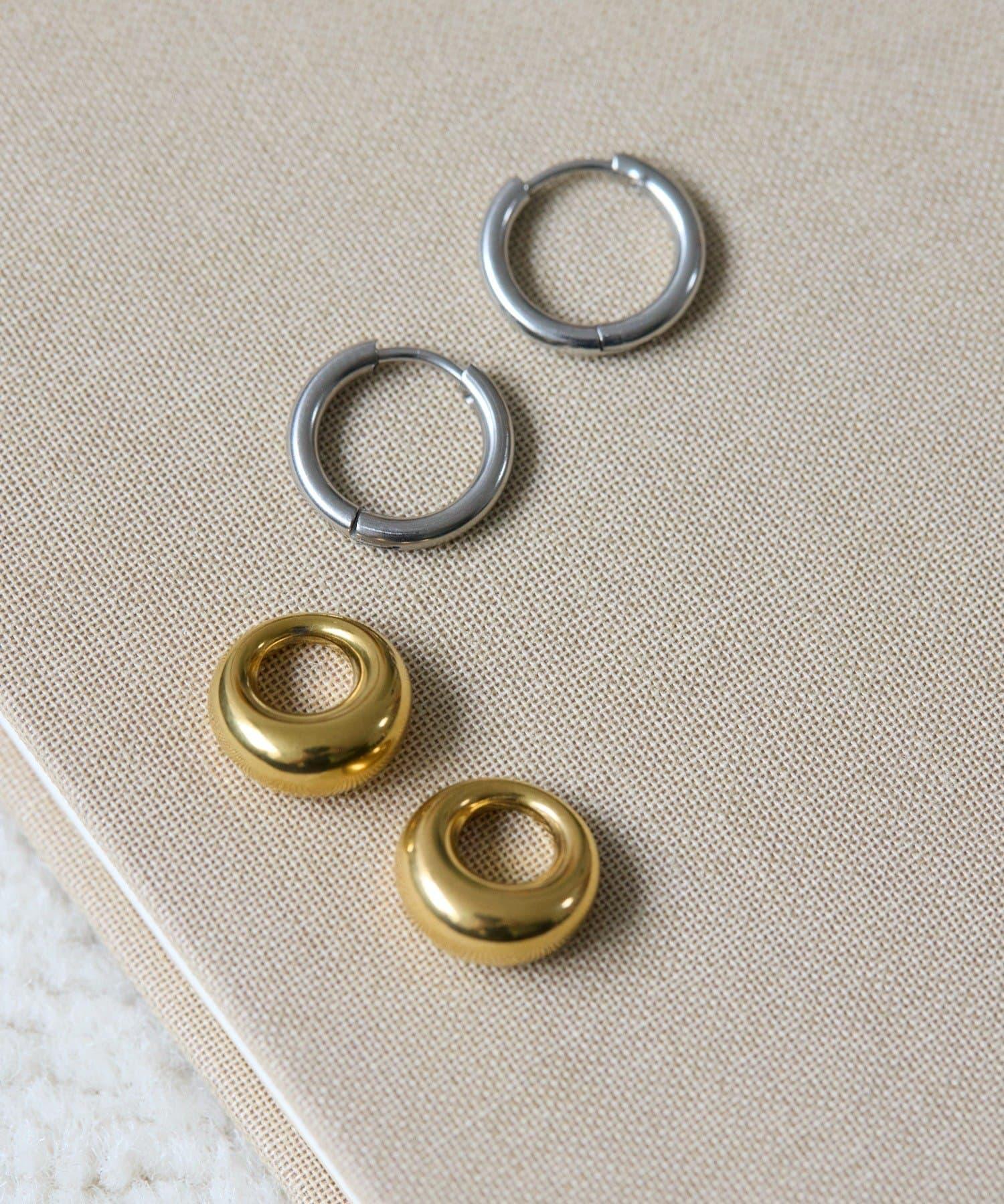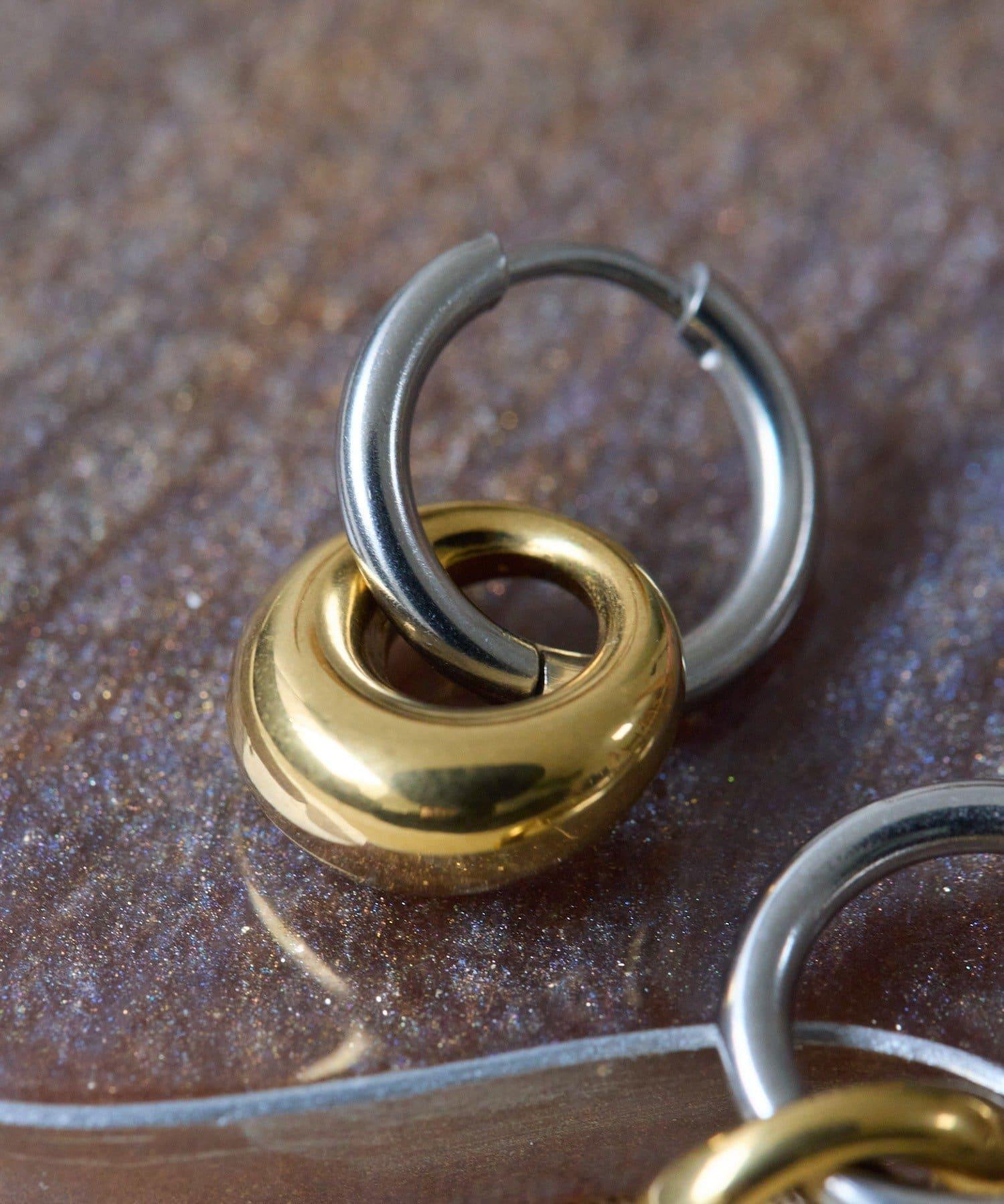 《金屬過敏適用/不鏽鋼》寬環雙色耳環