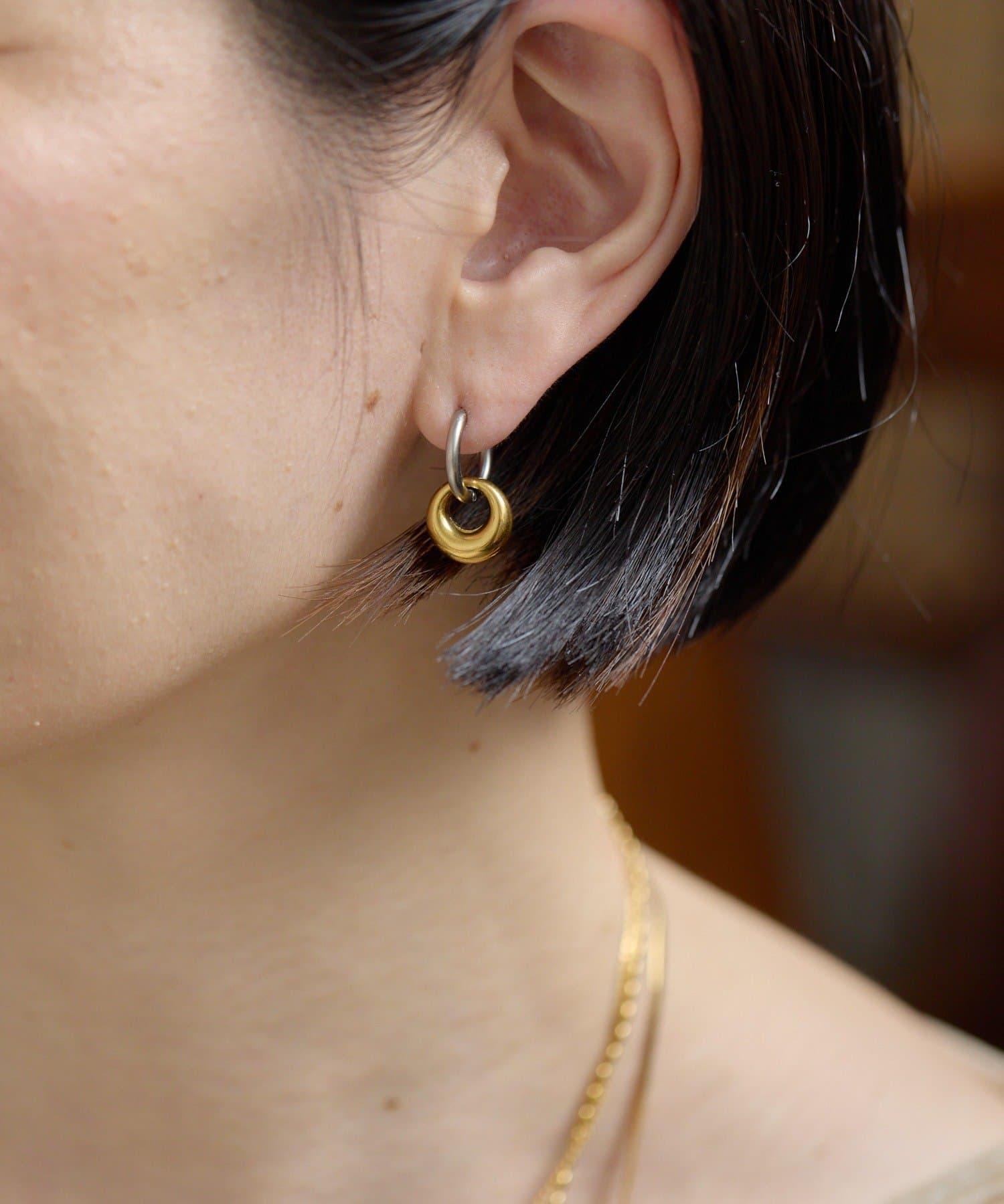 雙向環形耳環上懸掛著一個可拆卸的戒指。