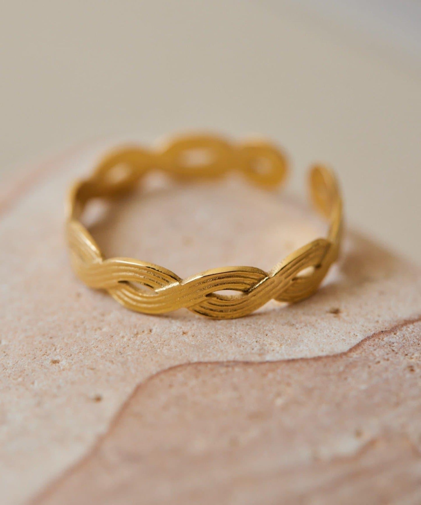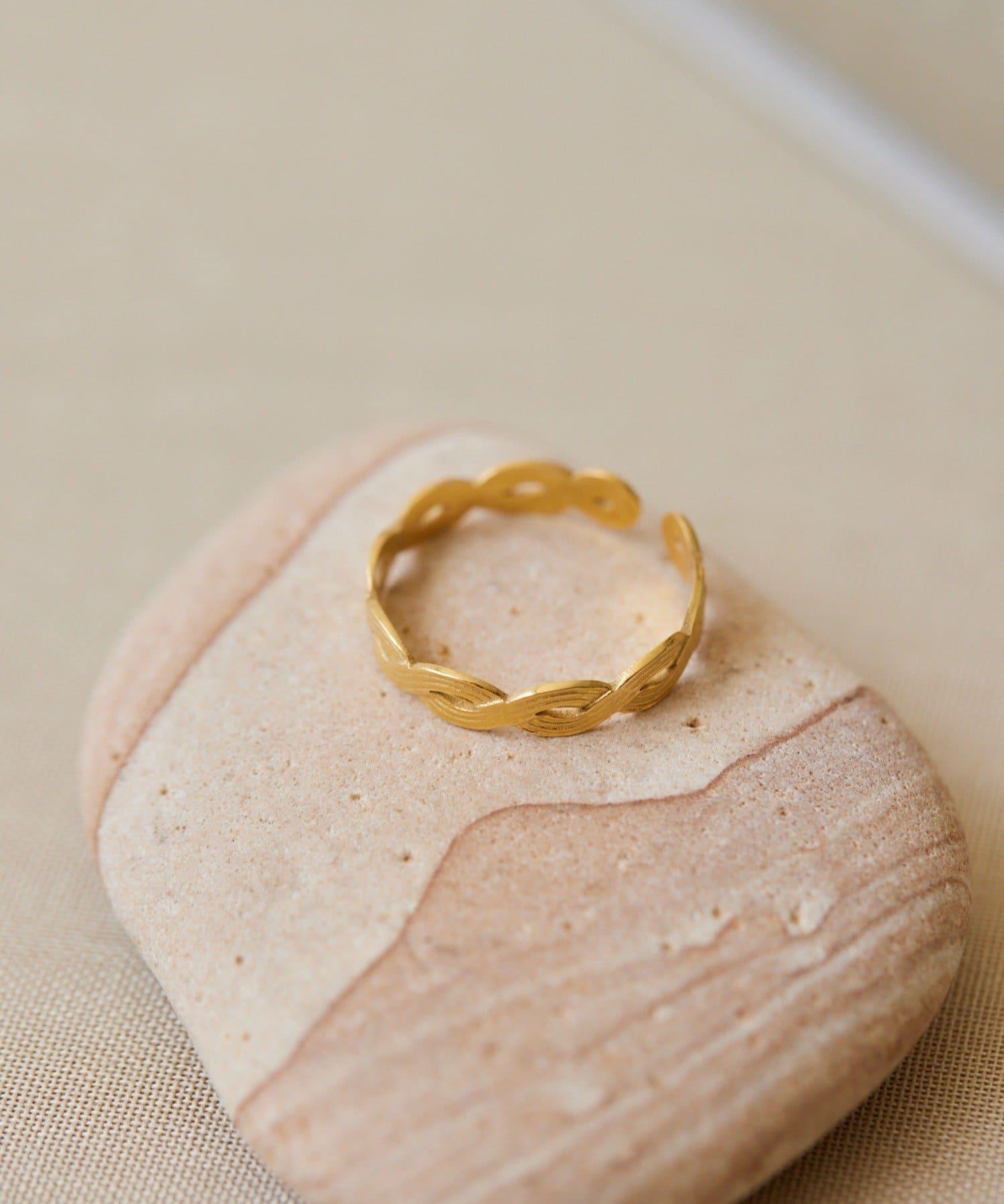 編織條紋之間的鏤空設計賦予戒指女性化的精緻。