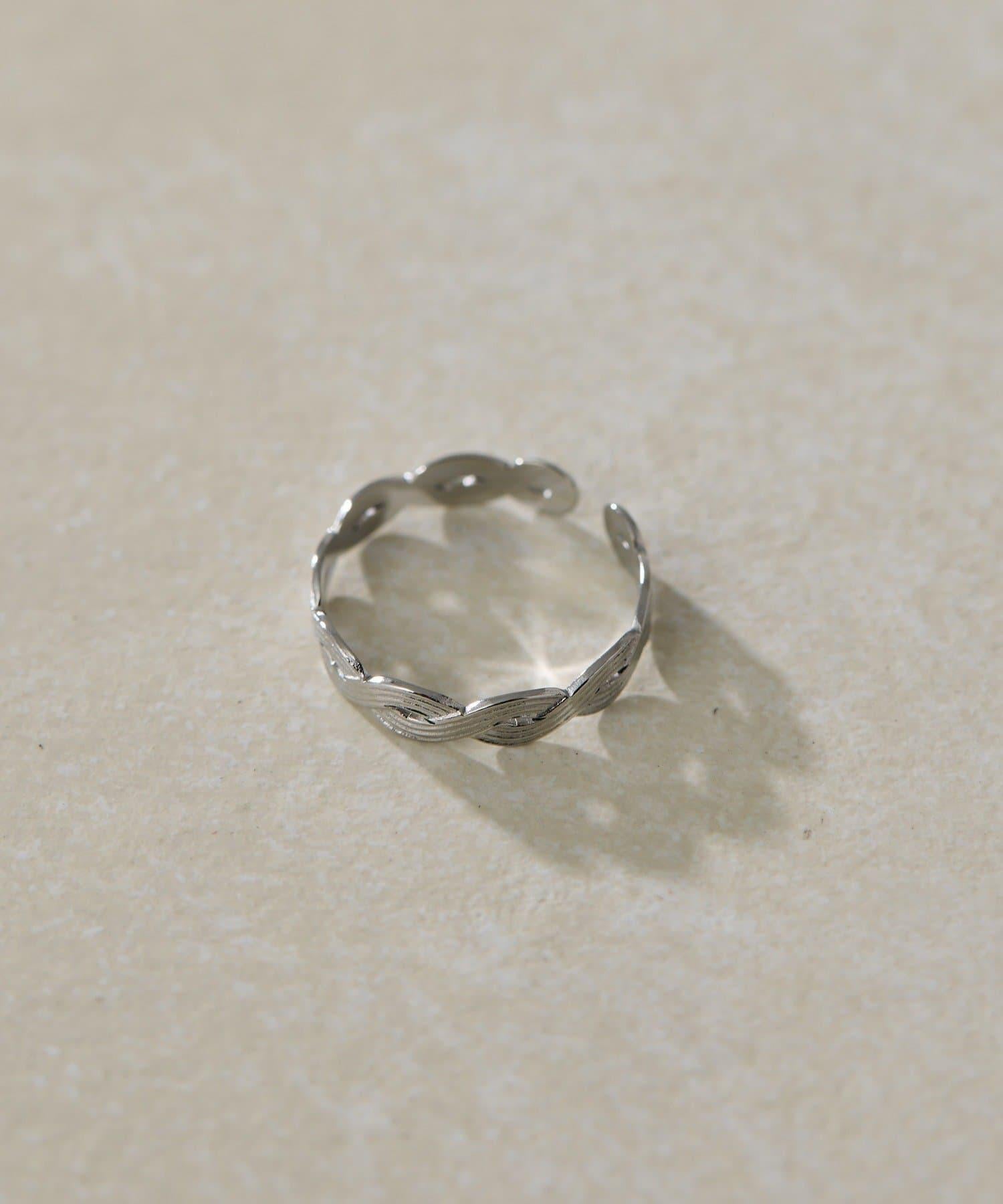 這款不鏽鋼戒指的編織條紋圖案給人一種大氣的感覺。