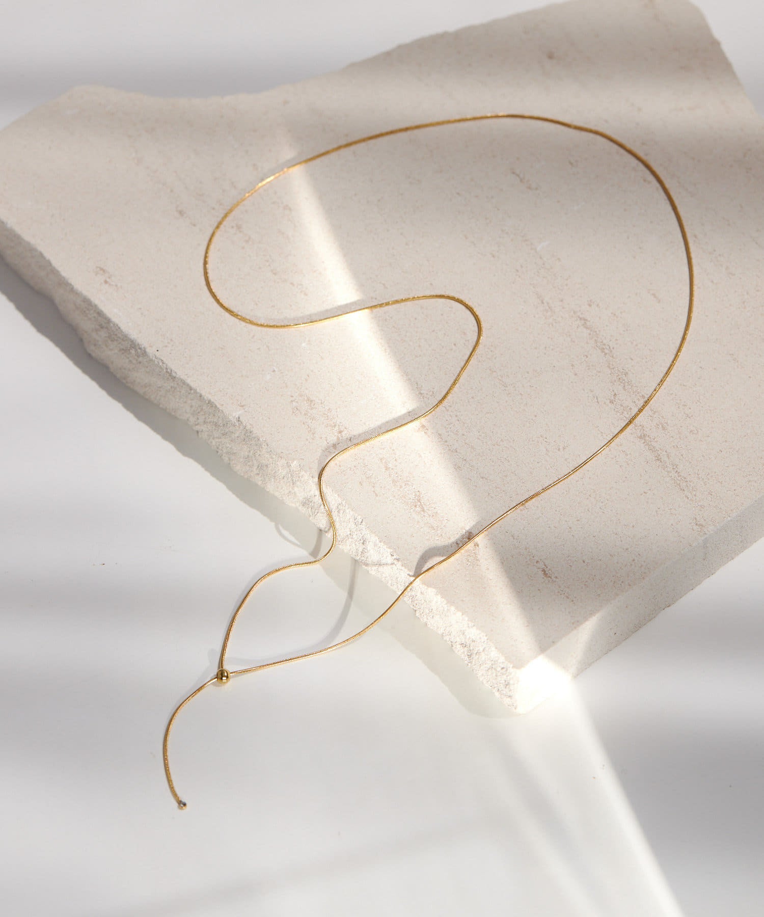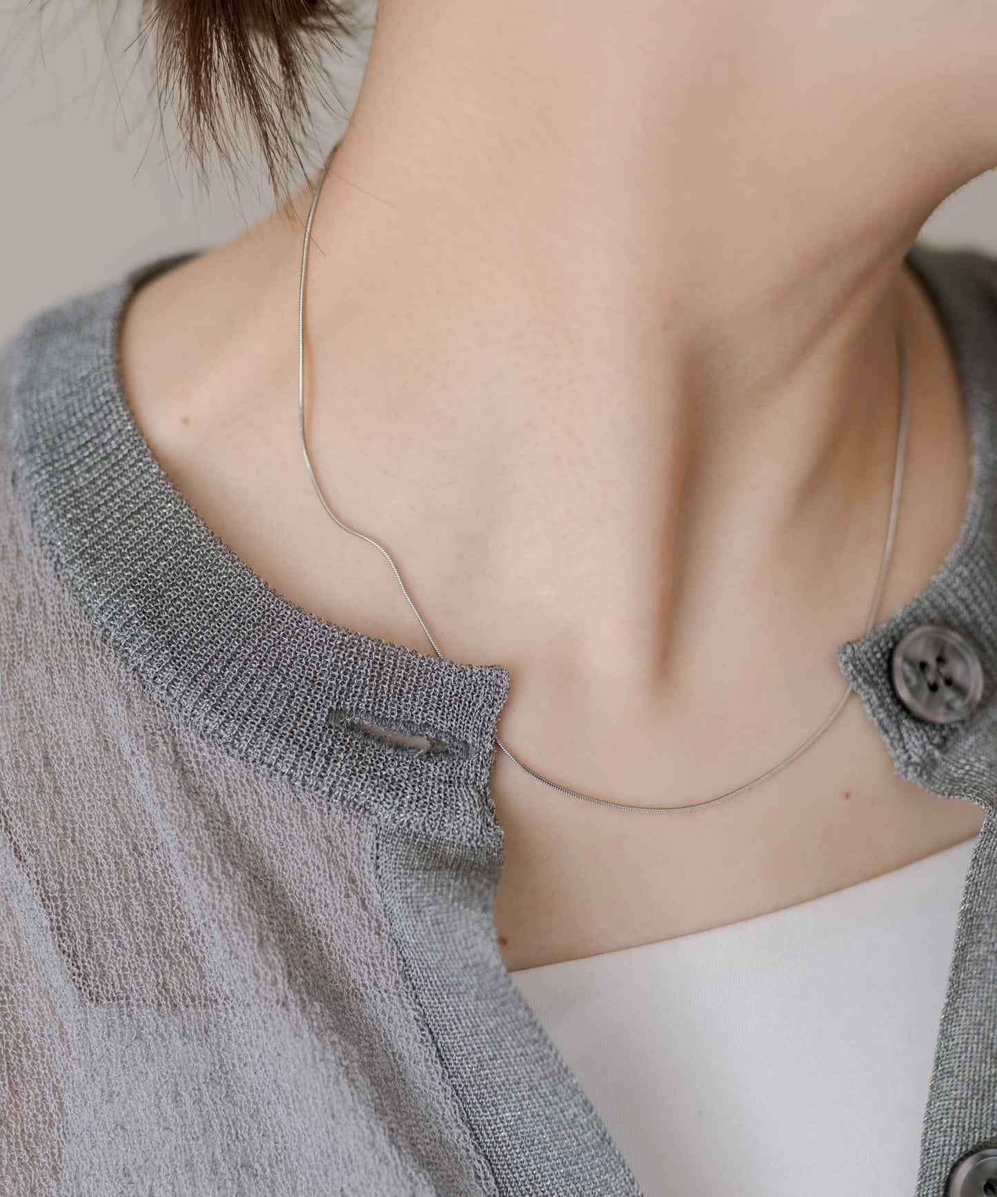 這是一款簡單的滑動式項鍊,可搭配任何服飾。