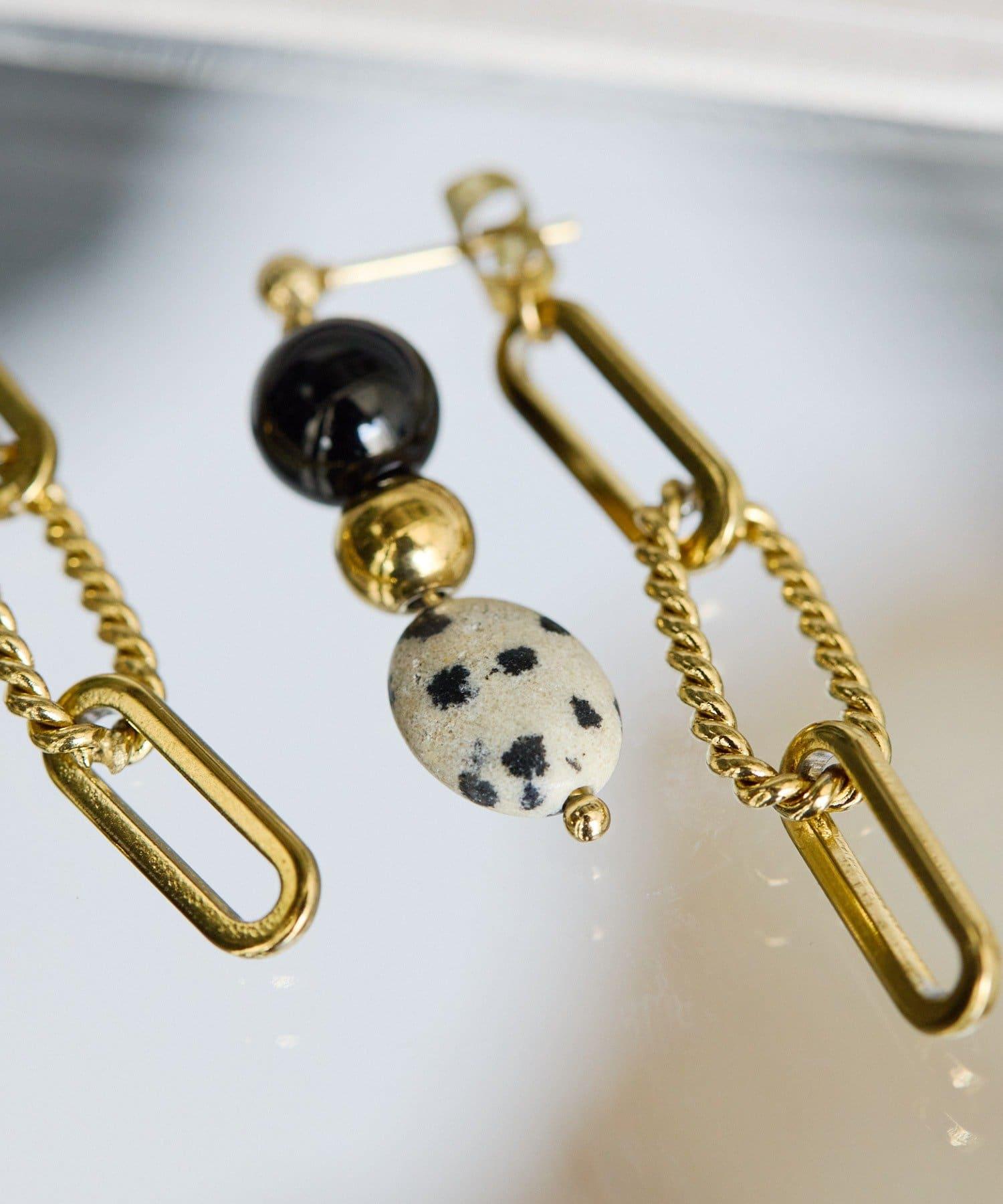 這款現代耳環是不鏽鋼和天然寶石的搶眼組合。