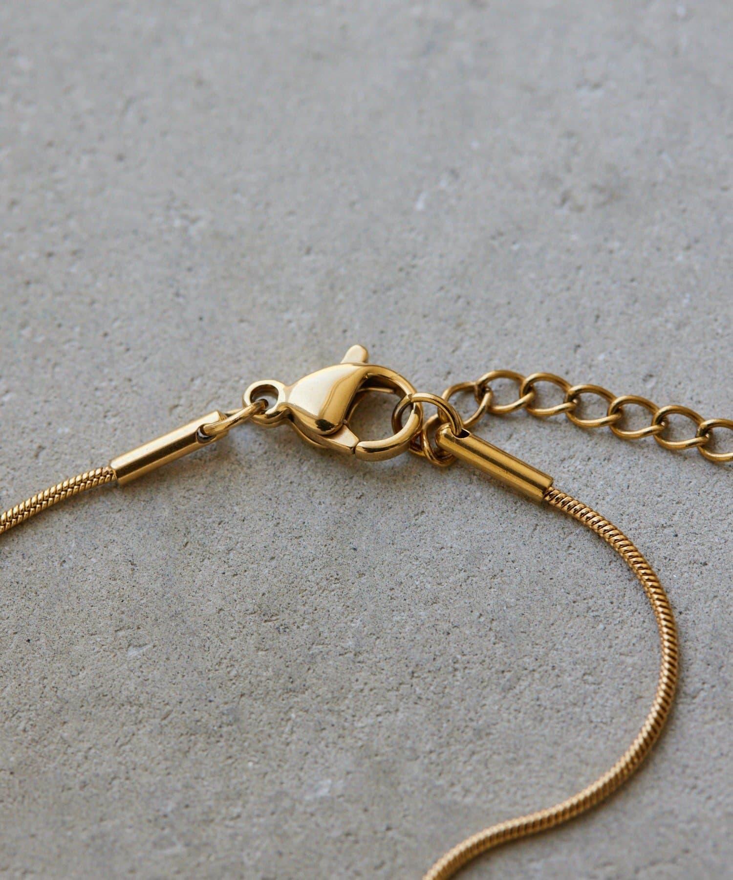 蛇形鏈與閃亮的頂部相結合,使項鍊呈現出成熟的形象。