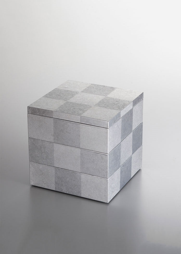 名稱 金澤鋁箔市松三層疊盤(銀色)