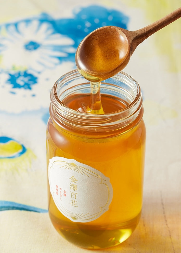 金澤蜂蜜Hyakka是由金澤山區的養蜂場周圍盛開的各種花朵的花蜜製成。隨著花的季節性變化,蜂蜜的味道也隨之變化,使其具有季節性風味。