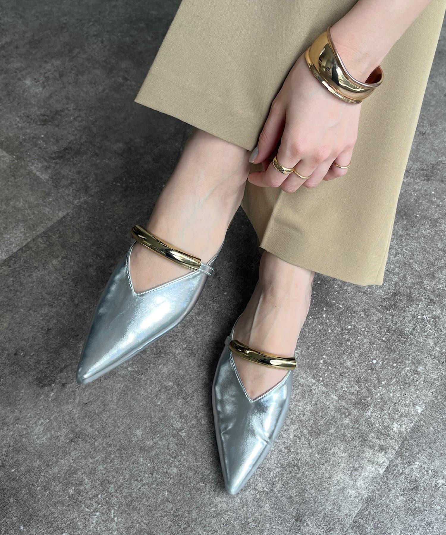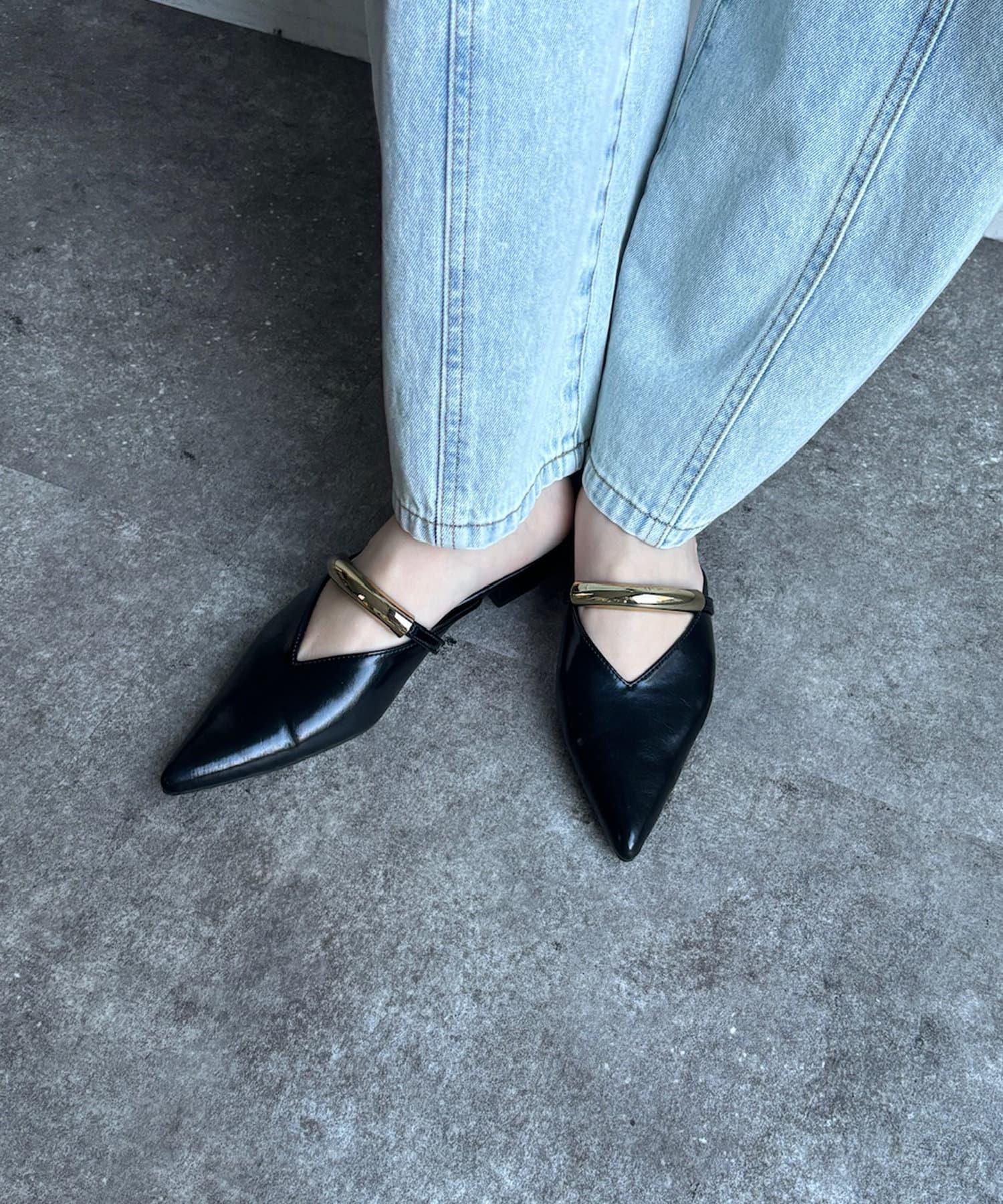 尖銳的鞋頭與 V 形切割線條完美搭配、