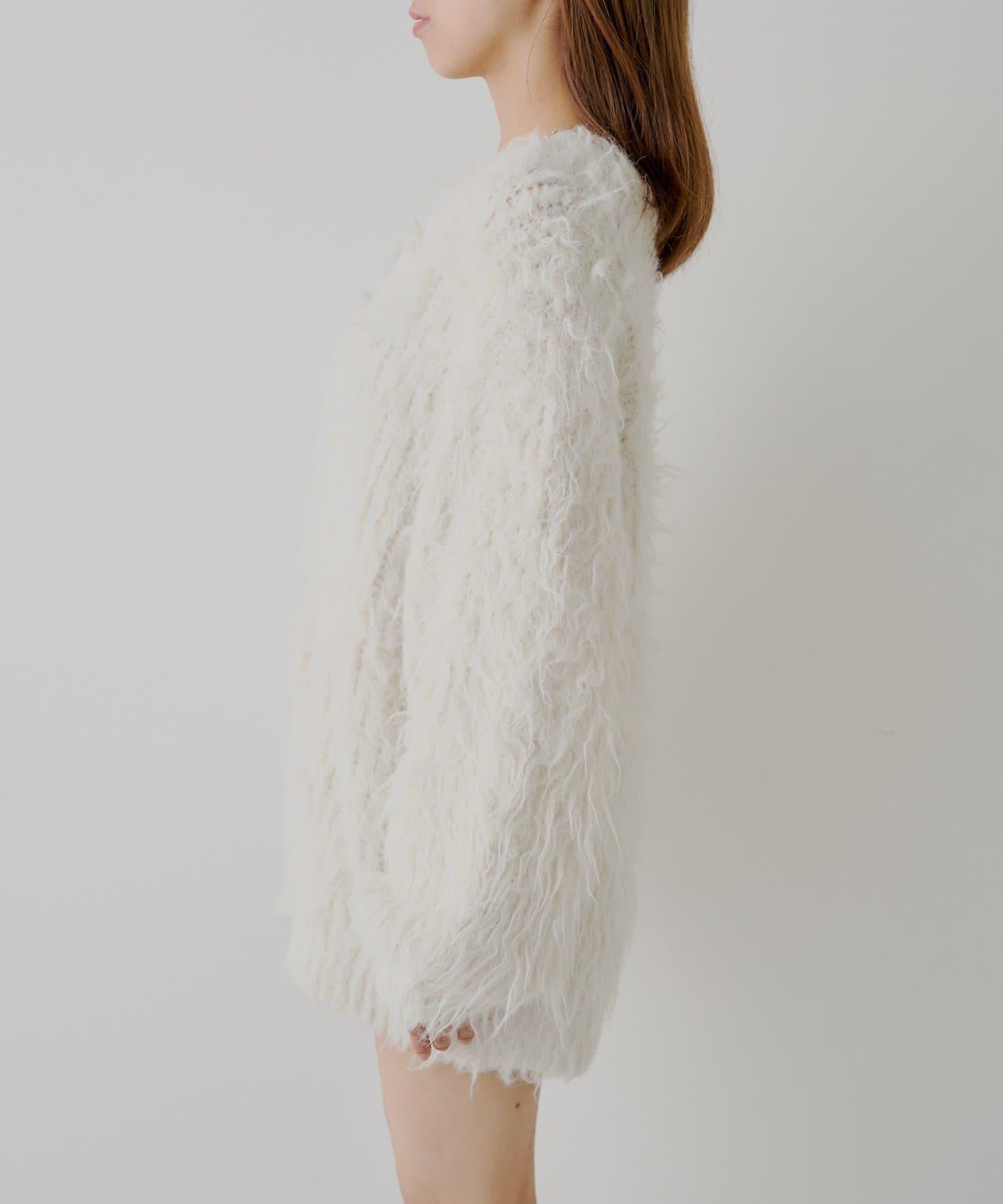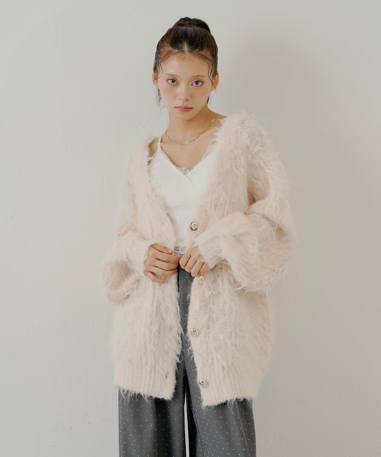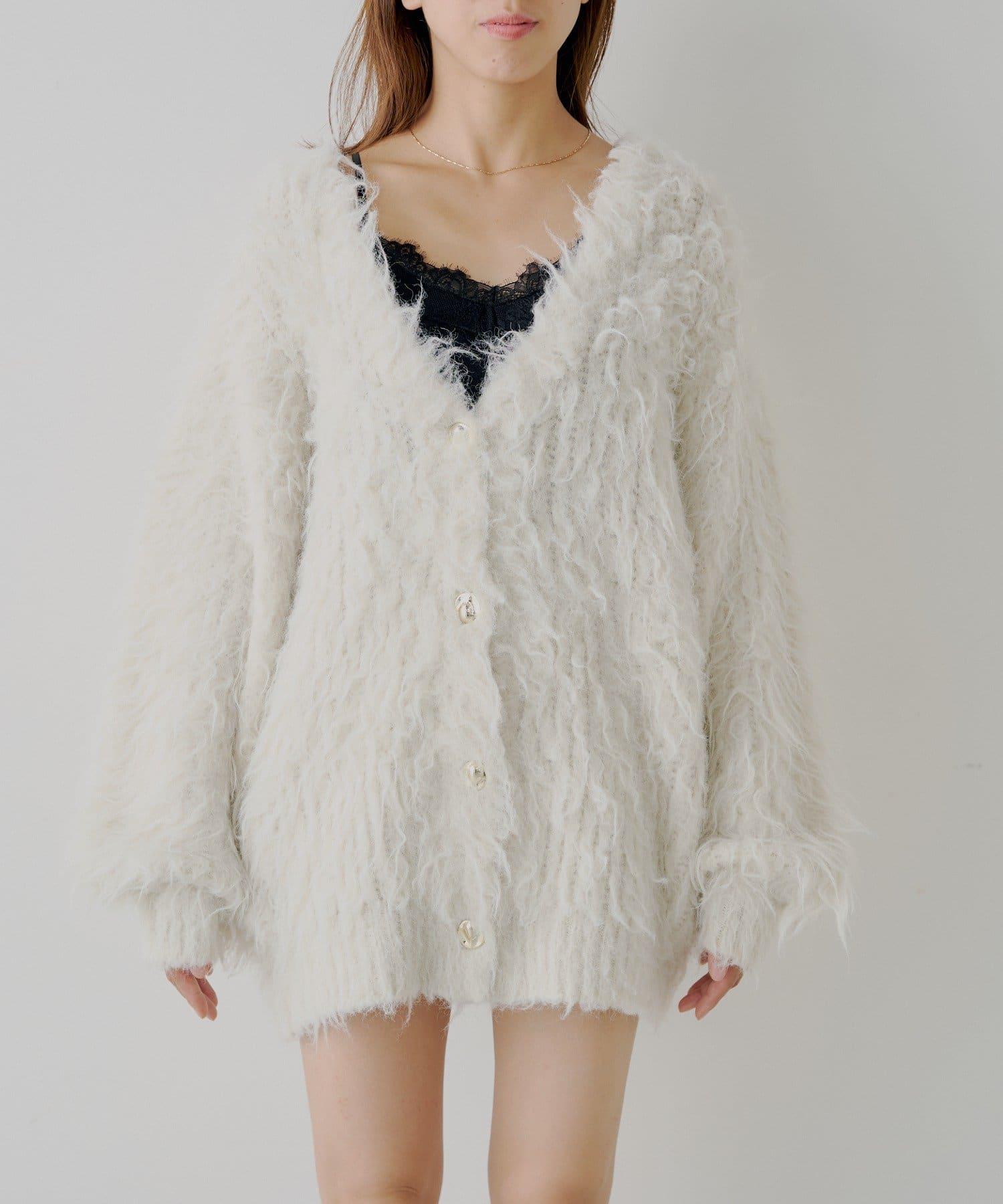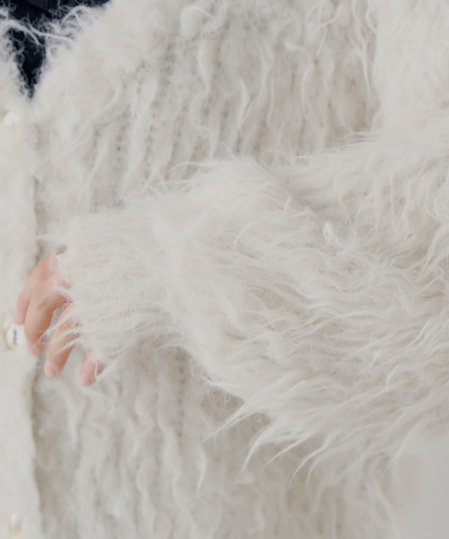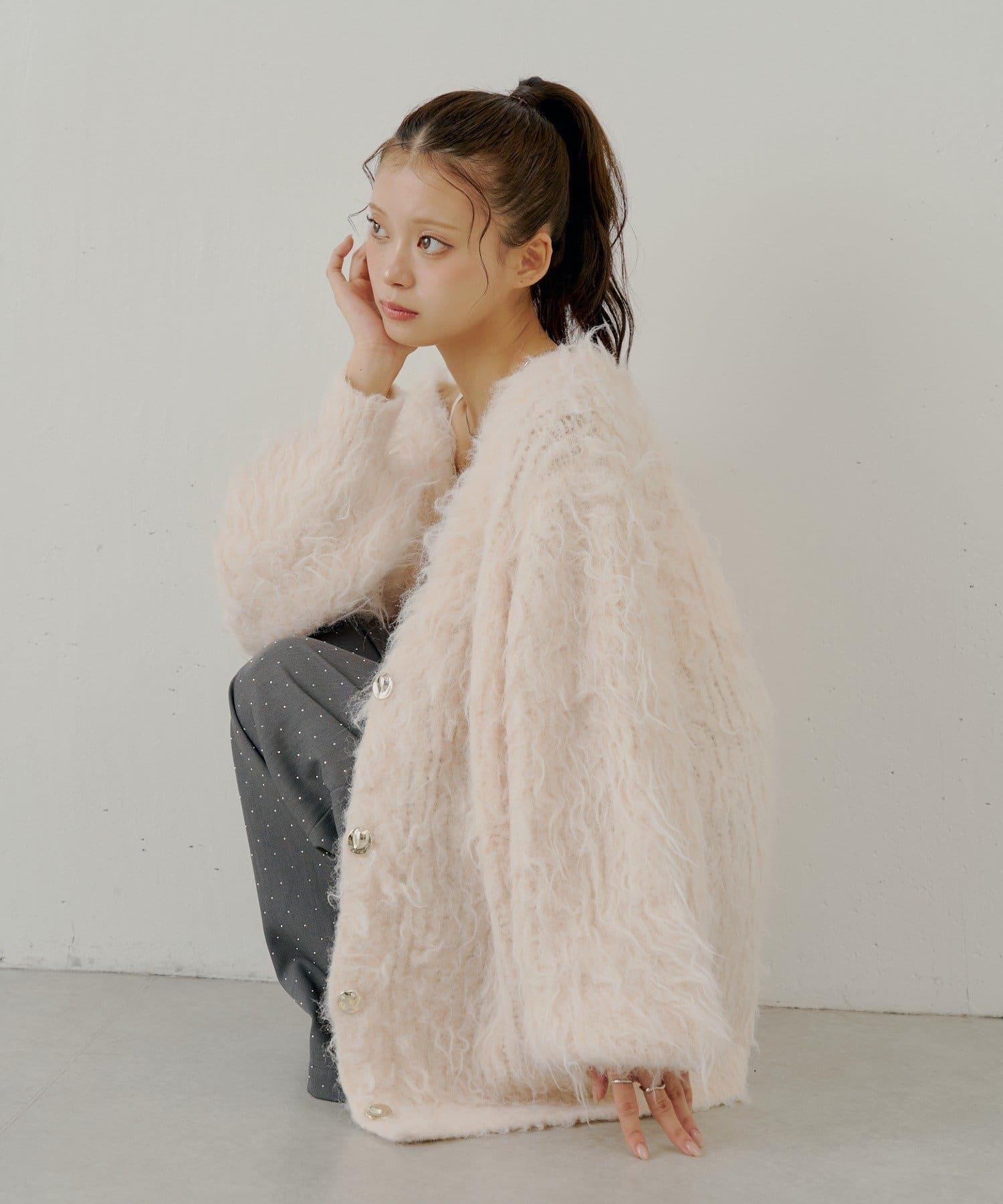 寬鬆開衫,採用蓬鬆絨毛面料。