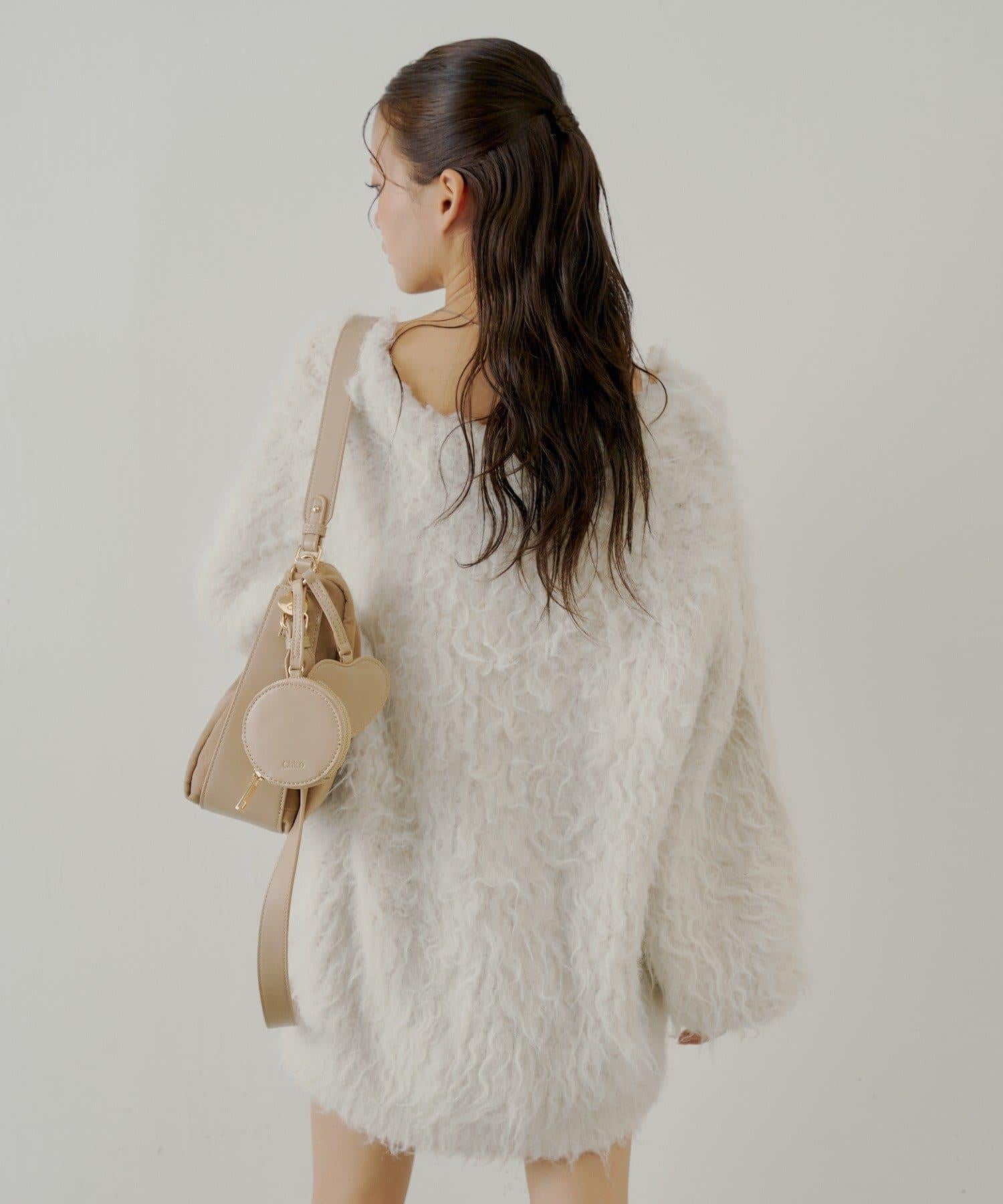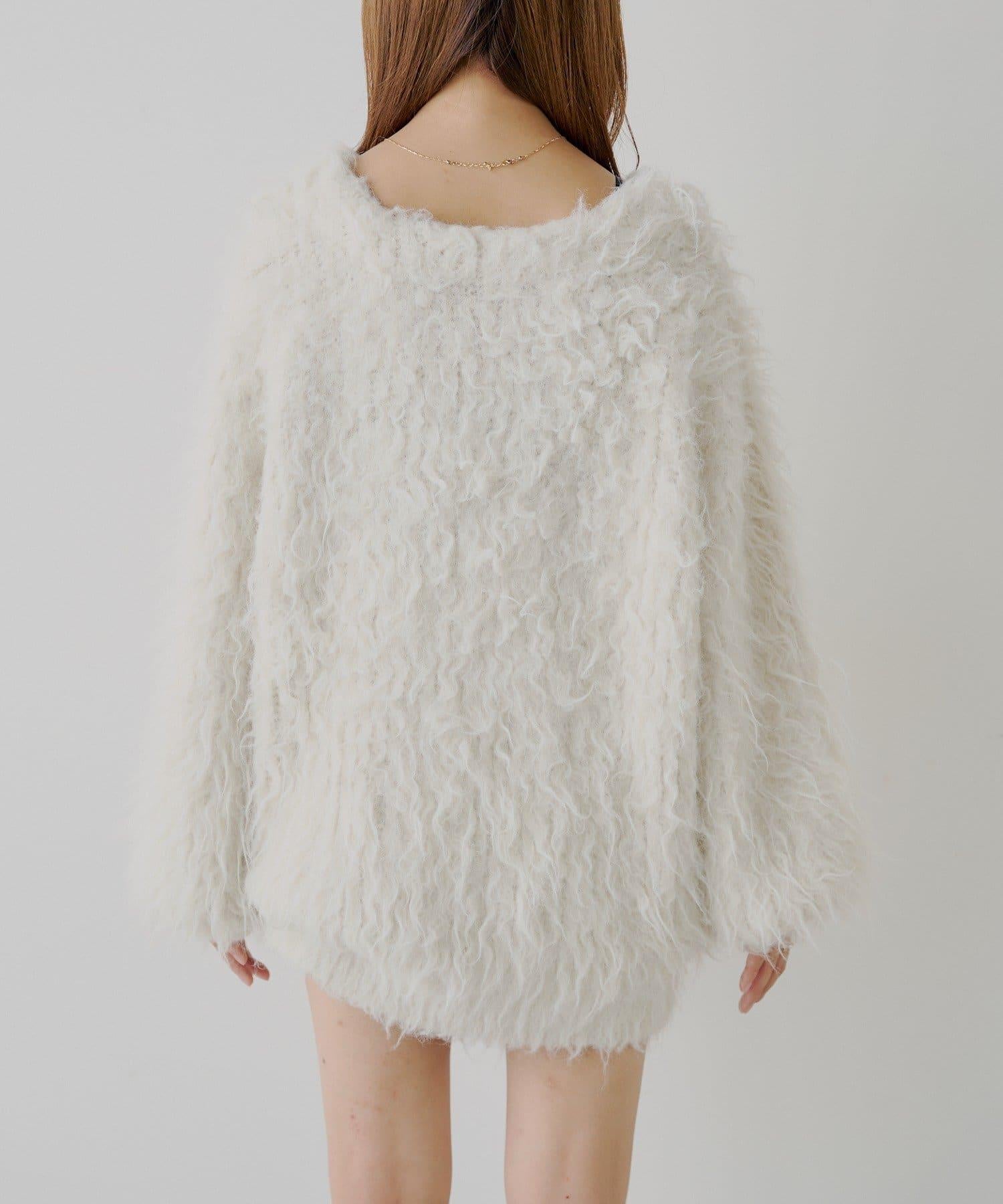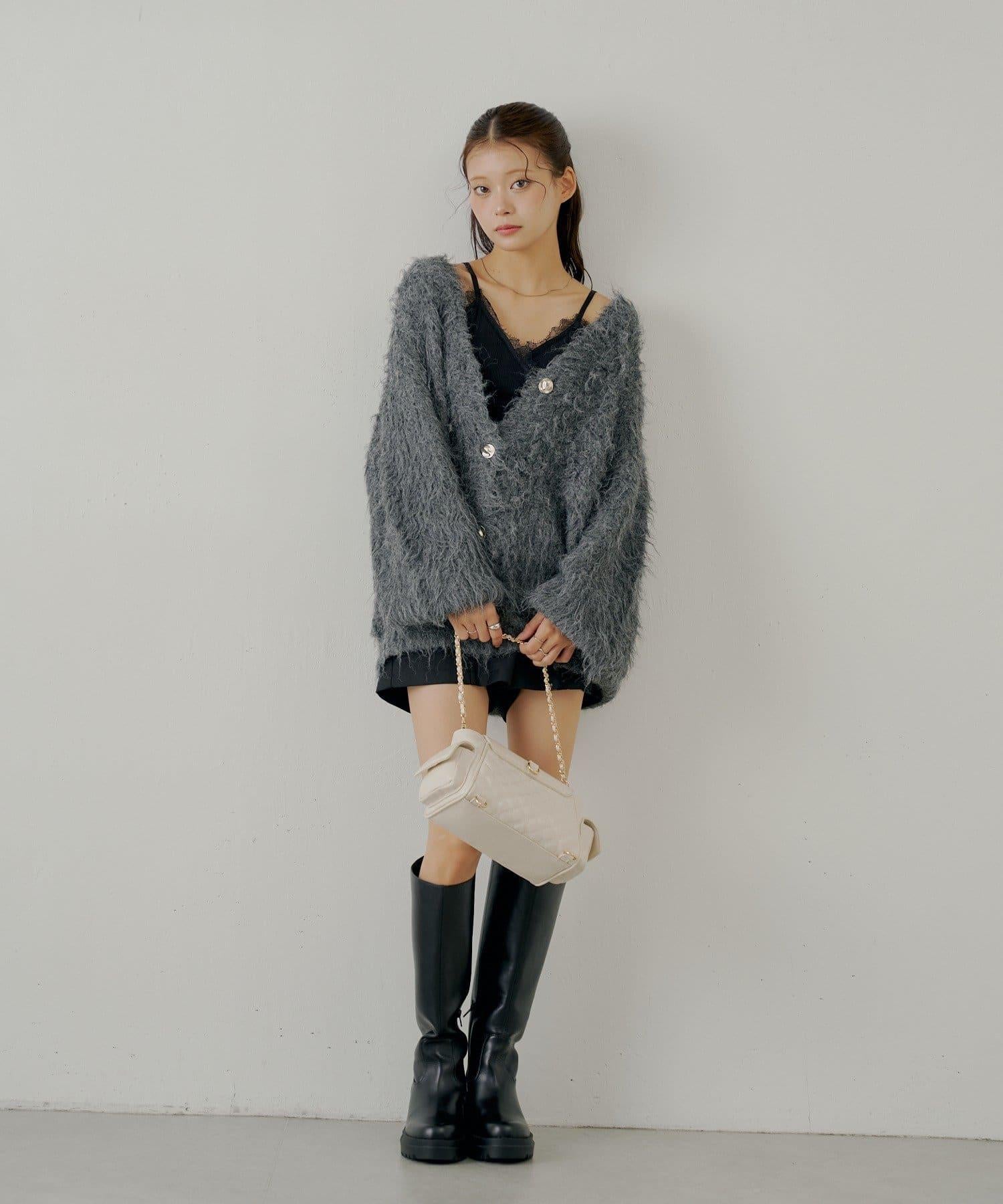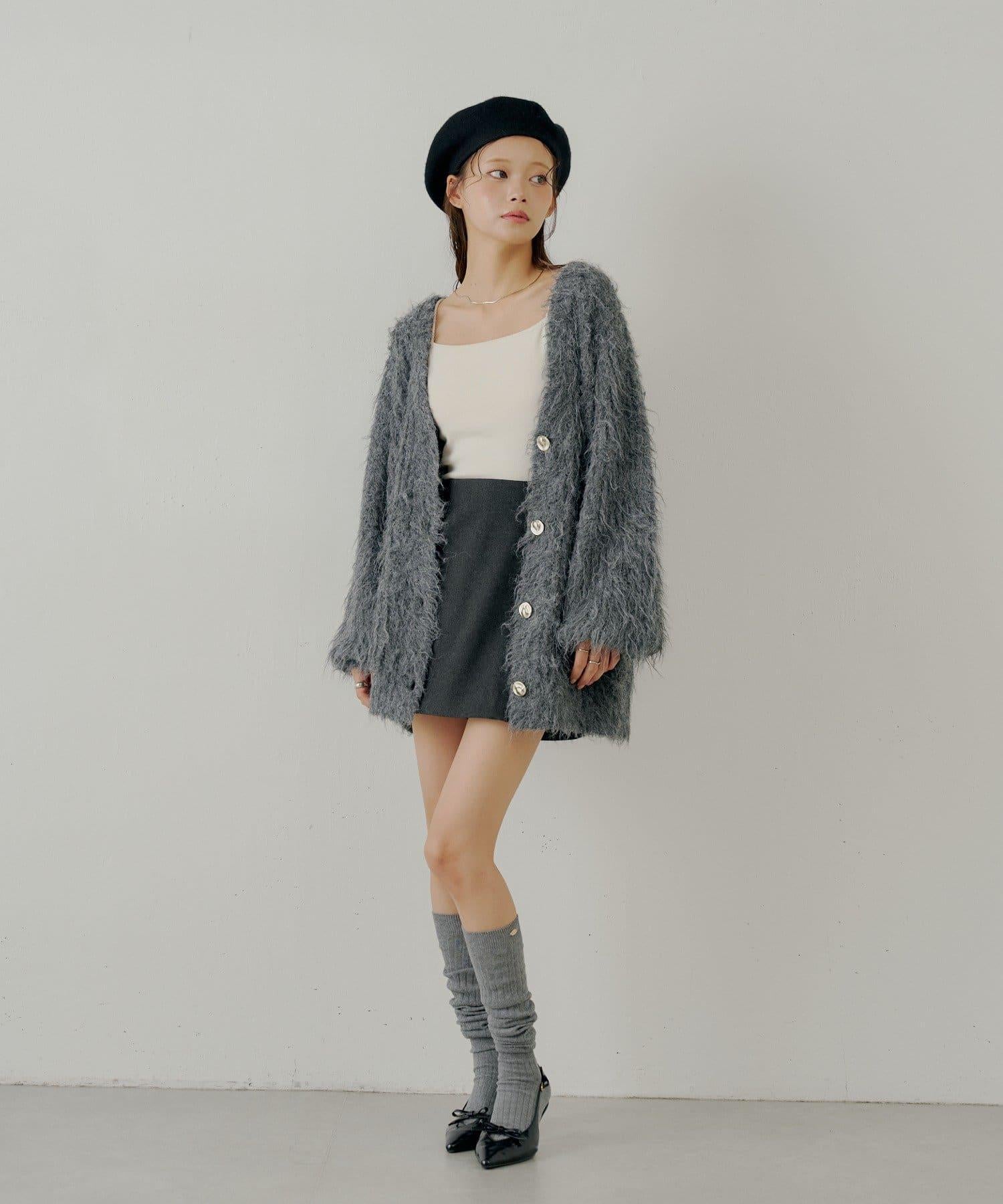 寬鬆開衫,採用蓬鬆絨毛面料。