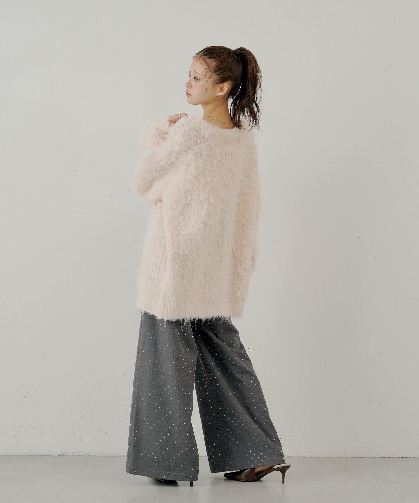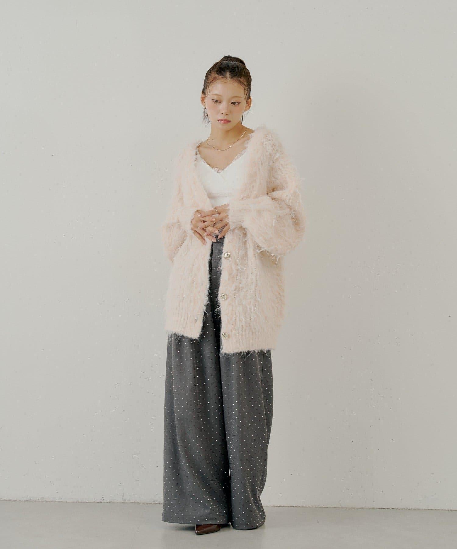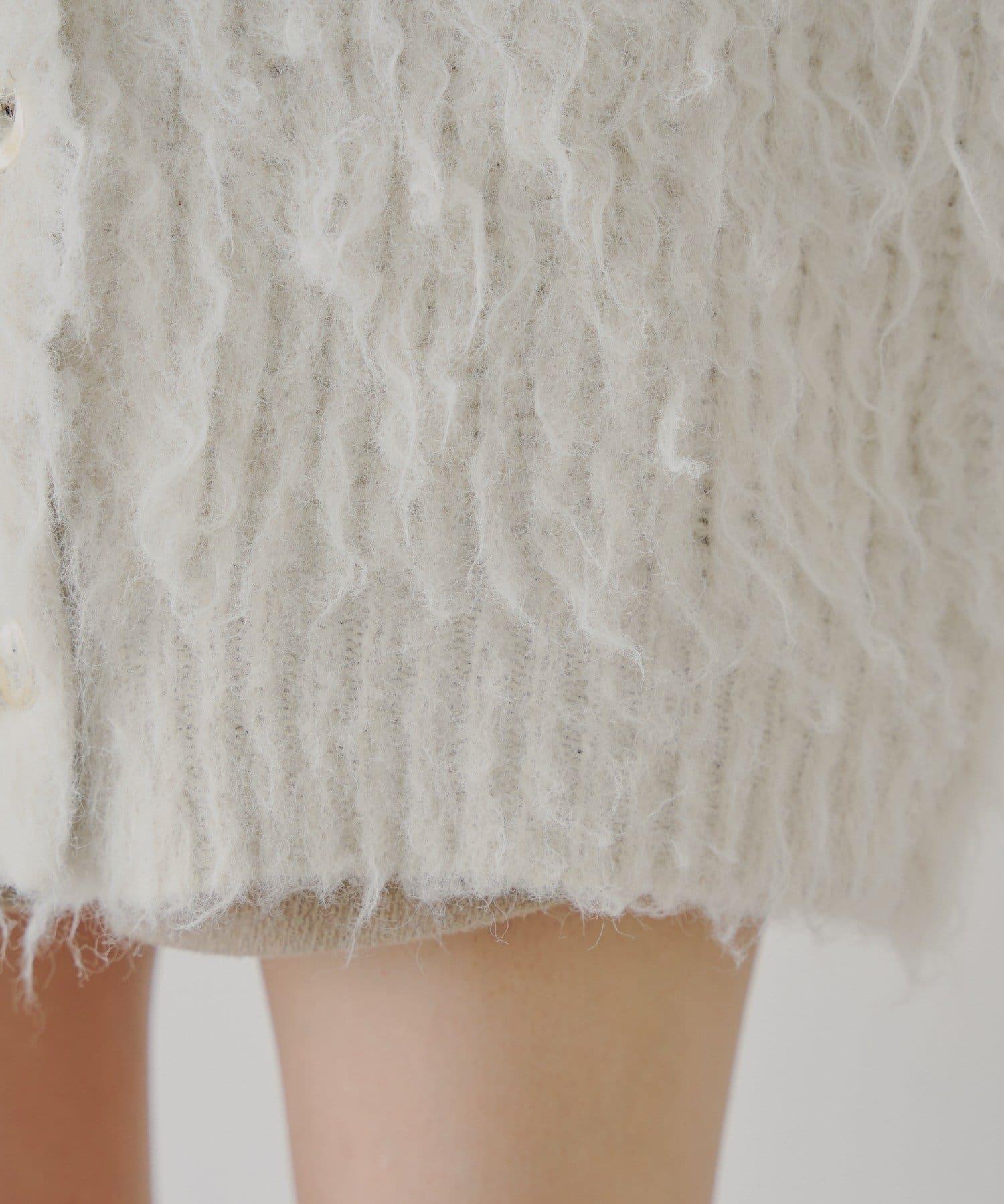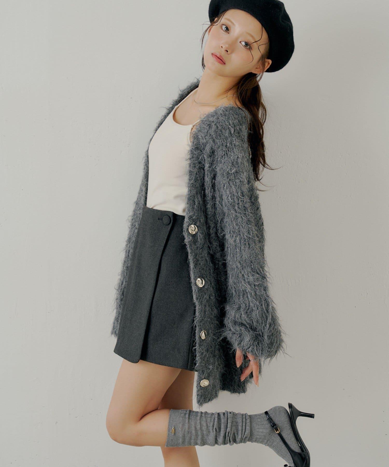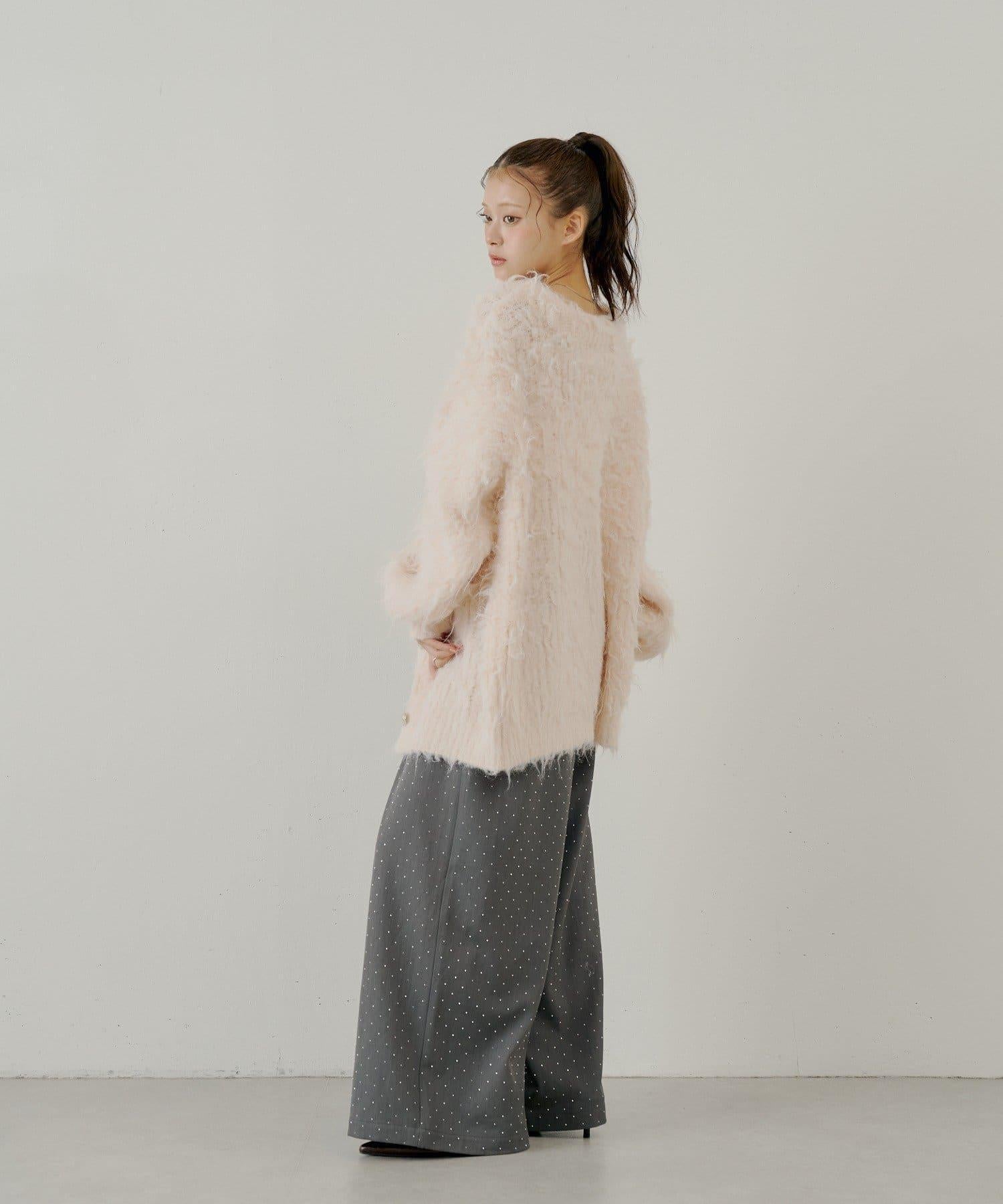 寬鬆開衫,採用蓬鬆絨毛面料。
