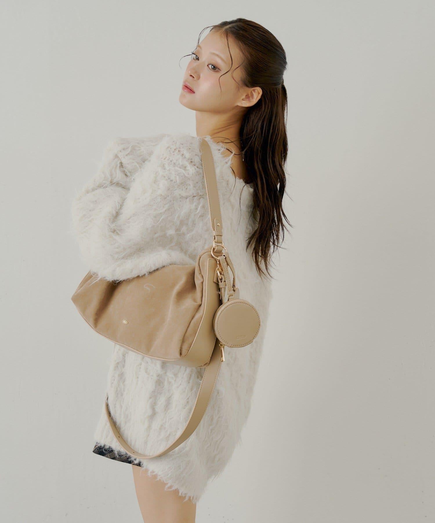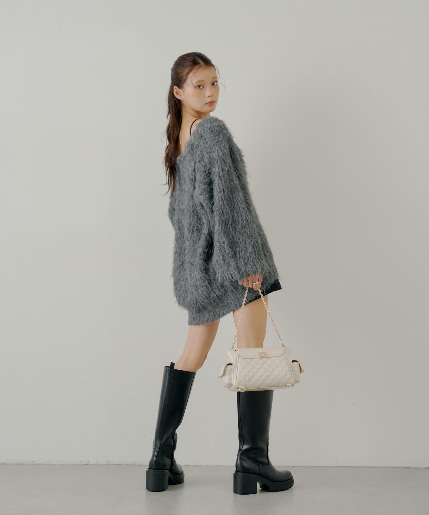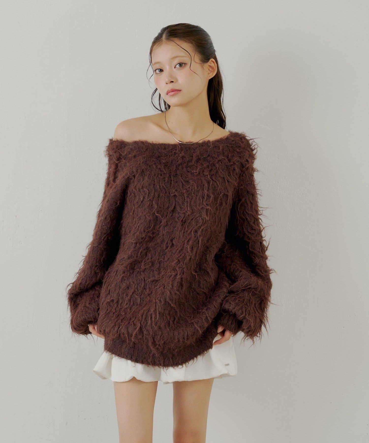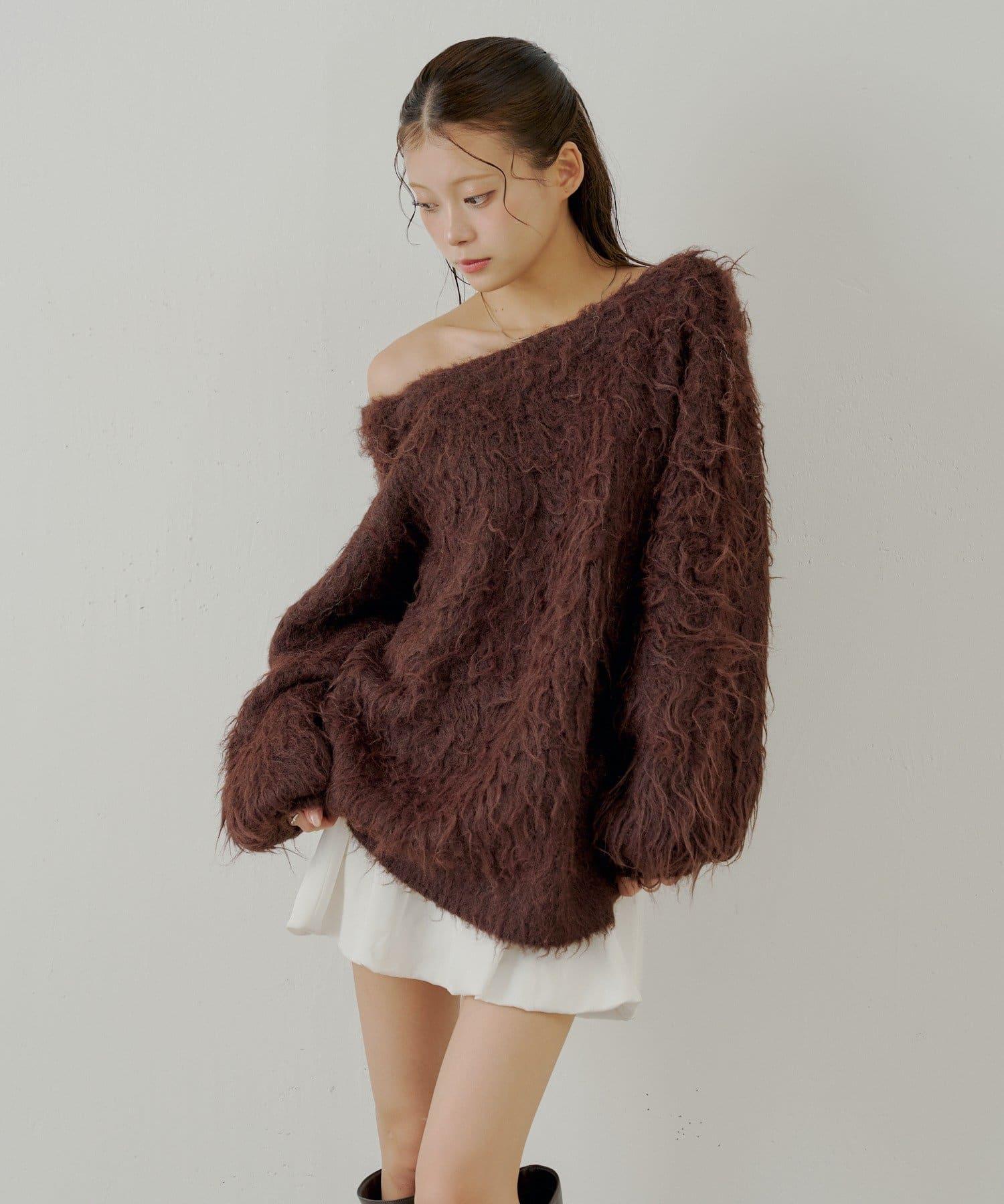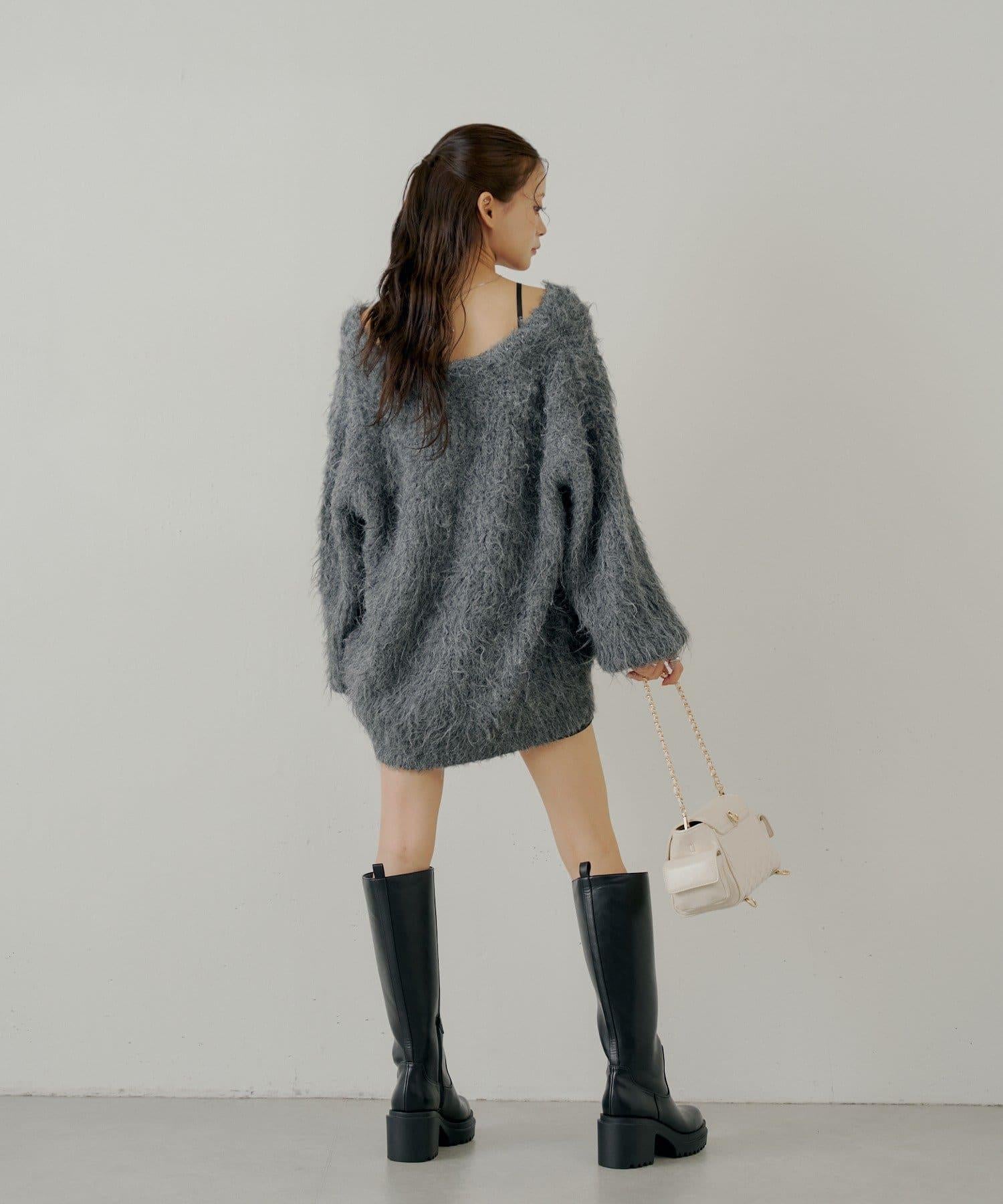 寬鬆開衫,採用蓬鬆絨毛面料。