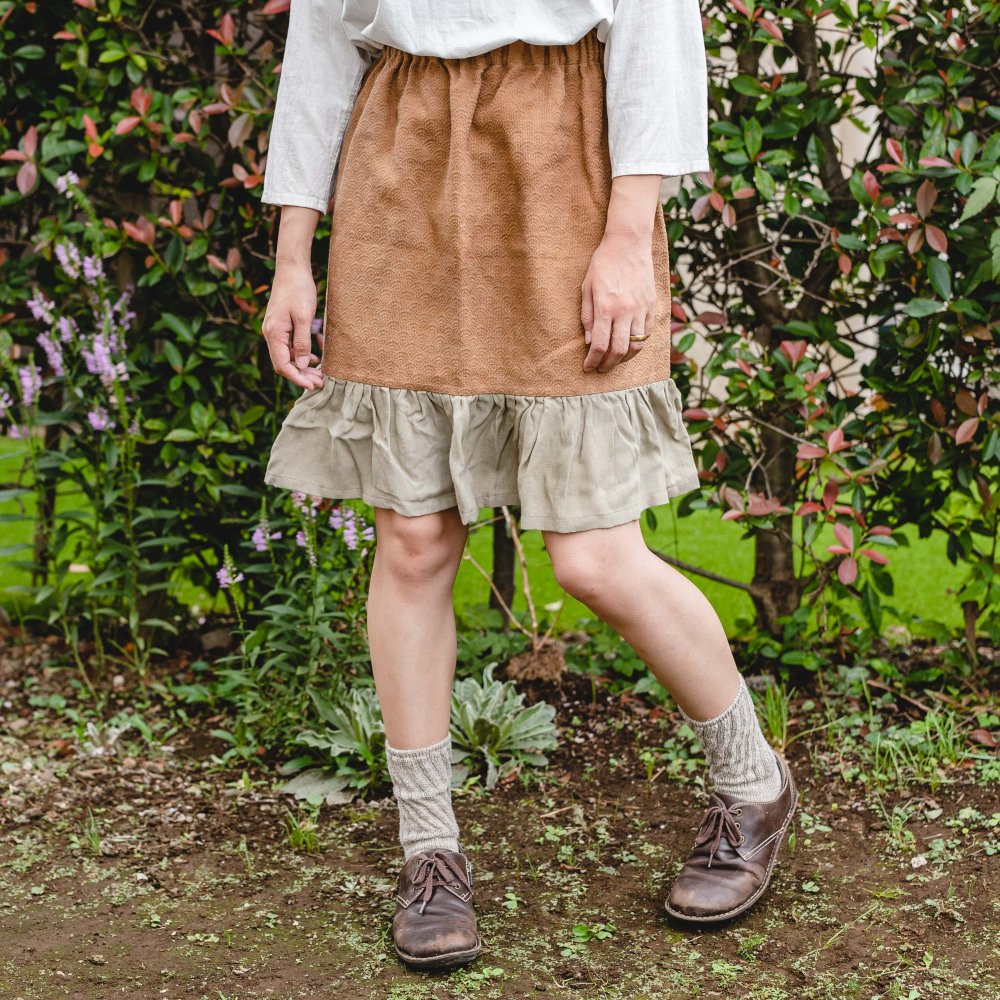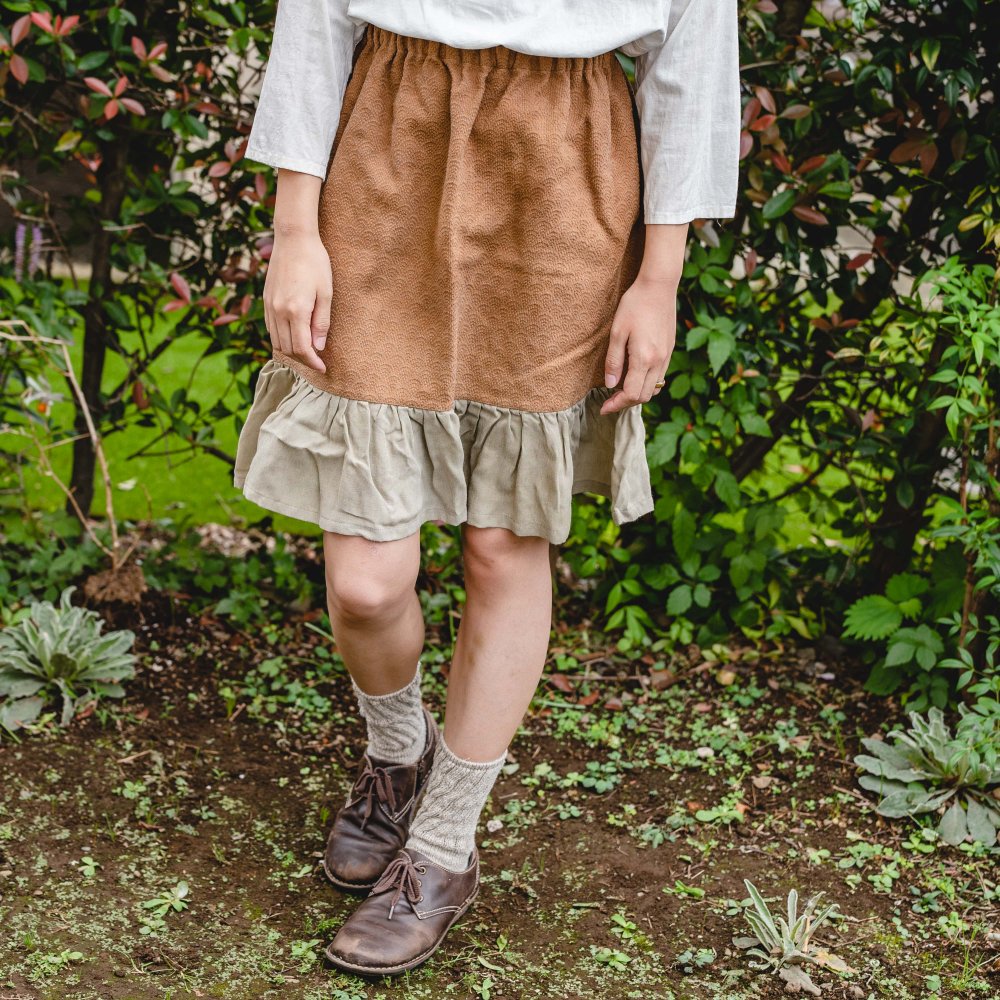 金魚裙/青海波米色卡其/三河木棉刺繡織