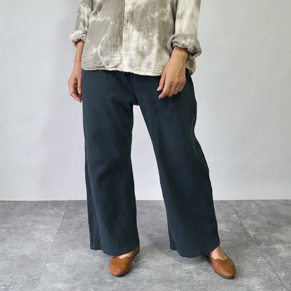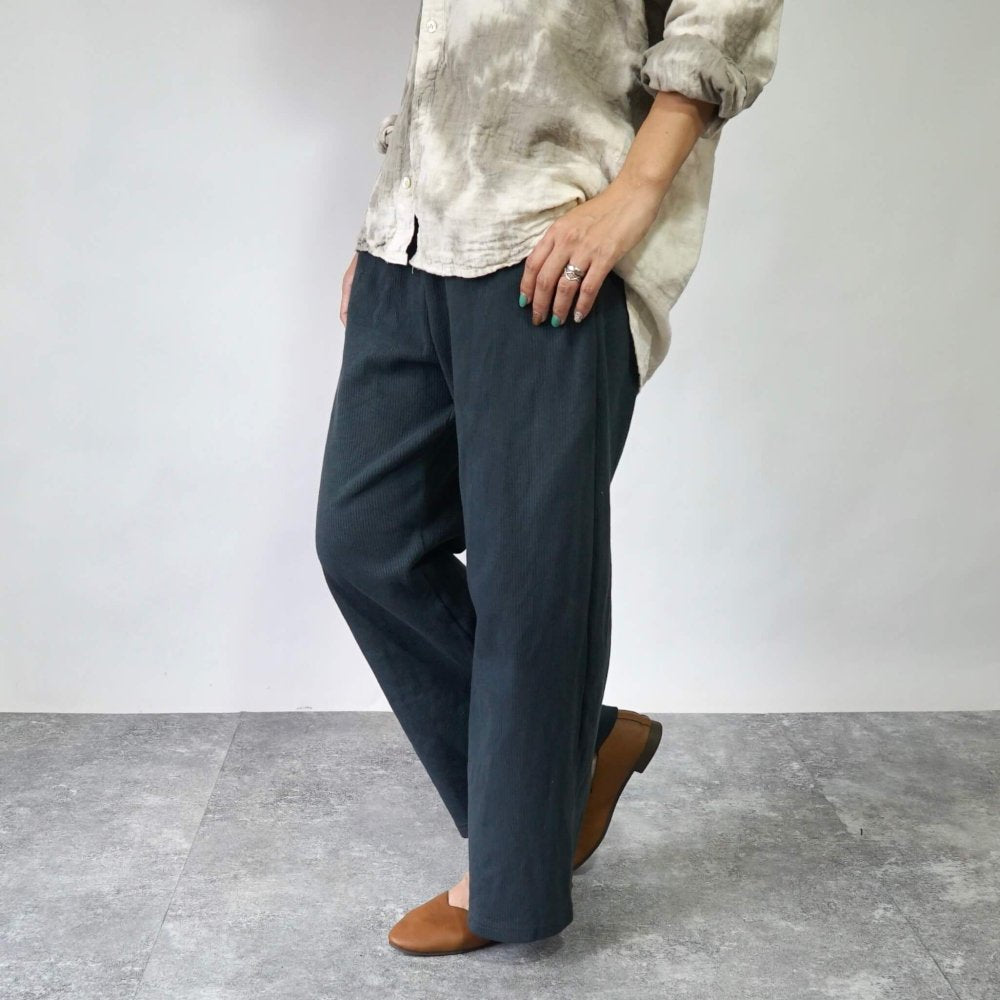 這款寬大的長褲採用基本設計,可以有多種款式。
