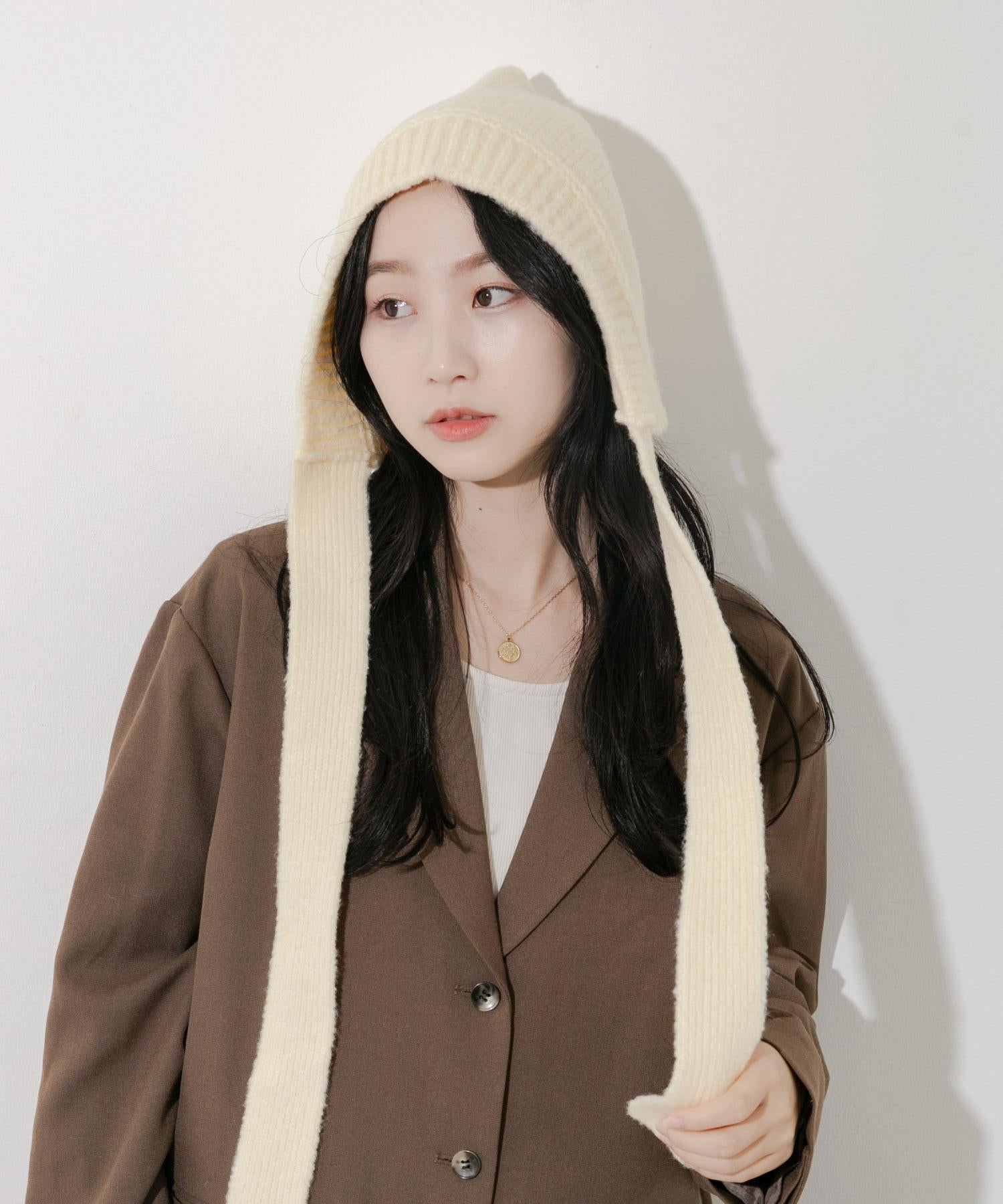 這款針織帽子是本季流行的頭巾的升級版,更加女性化。