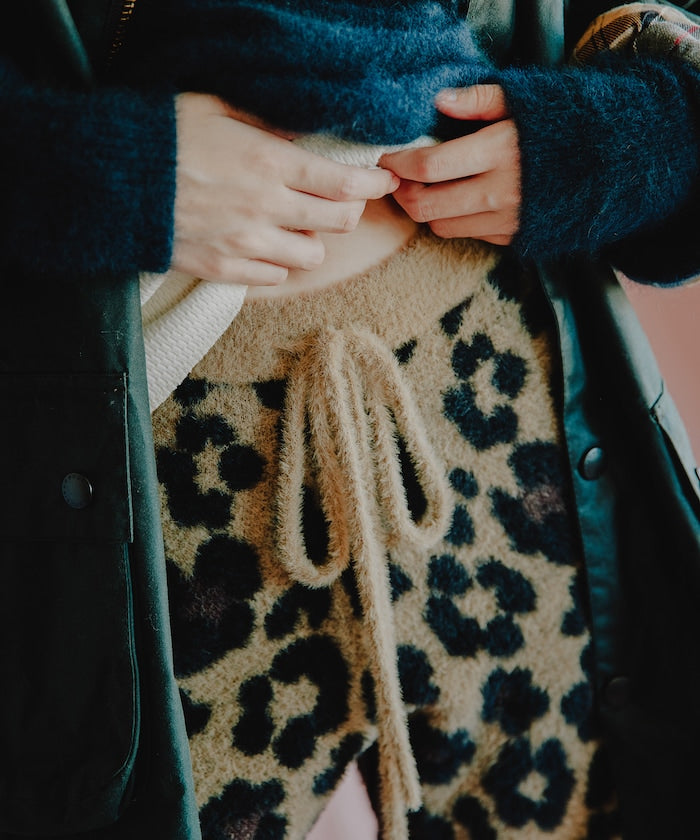 圖案的中心部分由不含毛皮的紗線製成,呈現出微妙的立體效果。