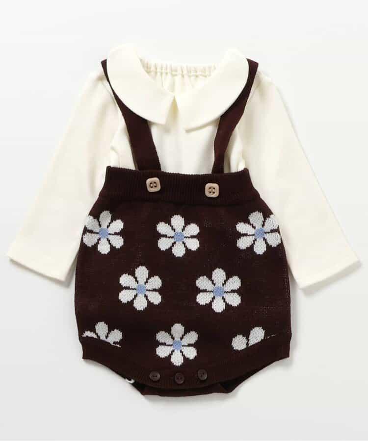 apres les cours 的 "針織 Salopette & 內衣套裝 "設計自然,細膩柔和。作為嬰兒禮物或嬰兒洗禮禮物的主角都是不錯的選擇♪。