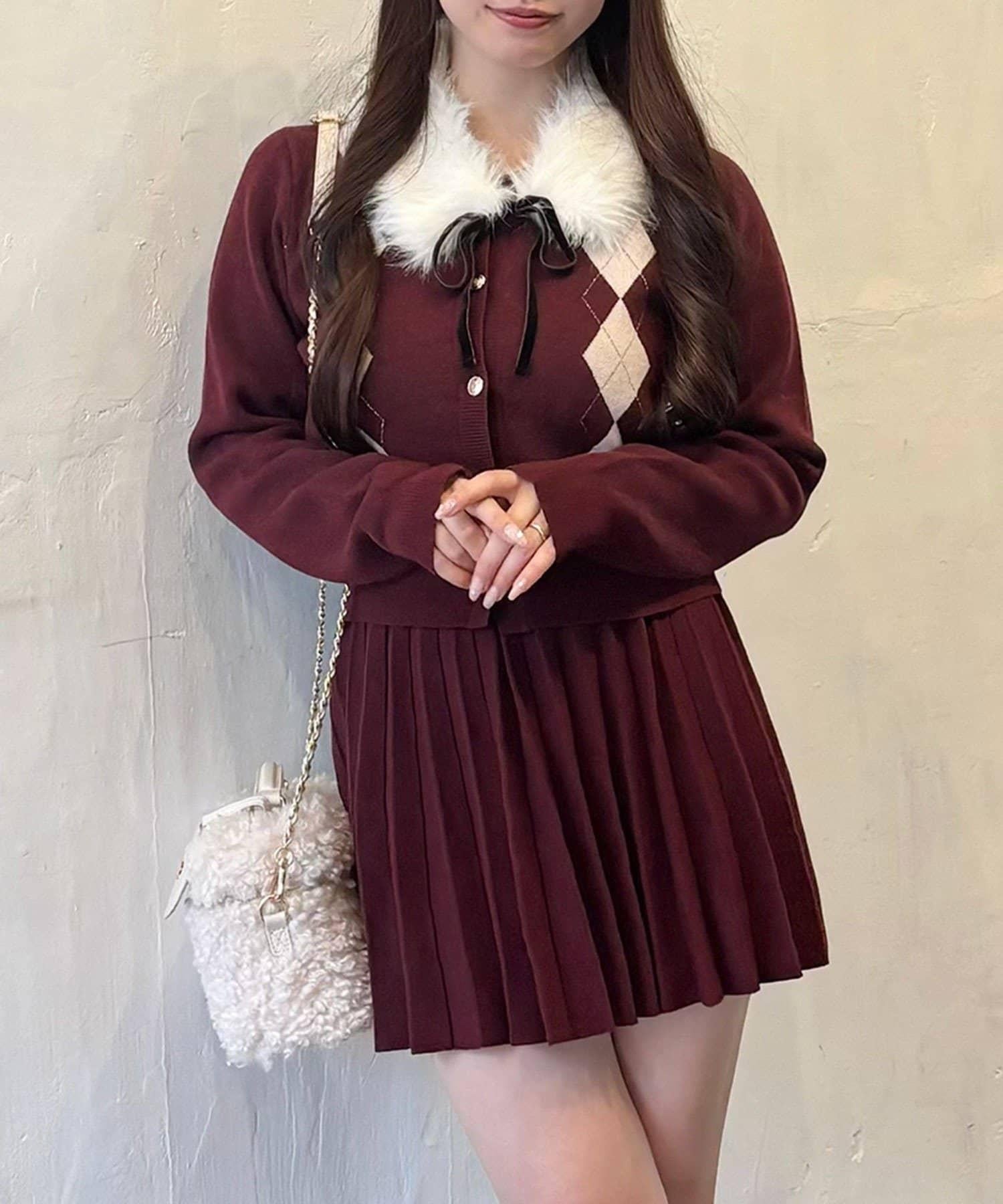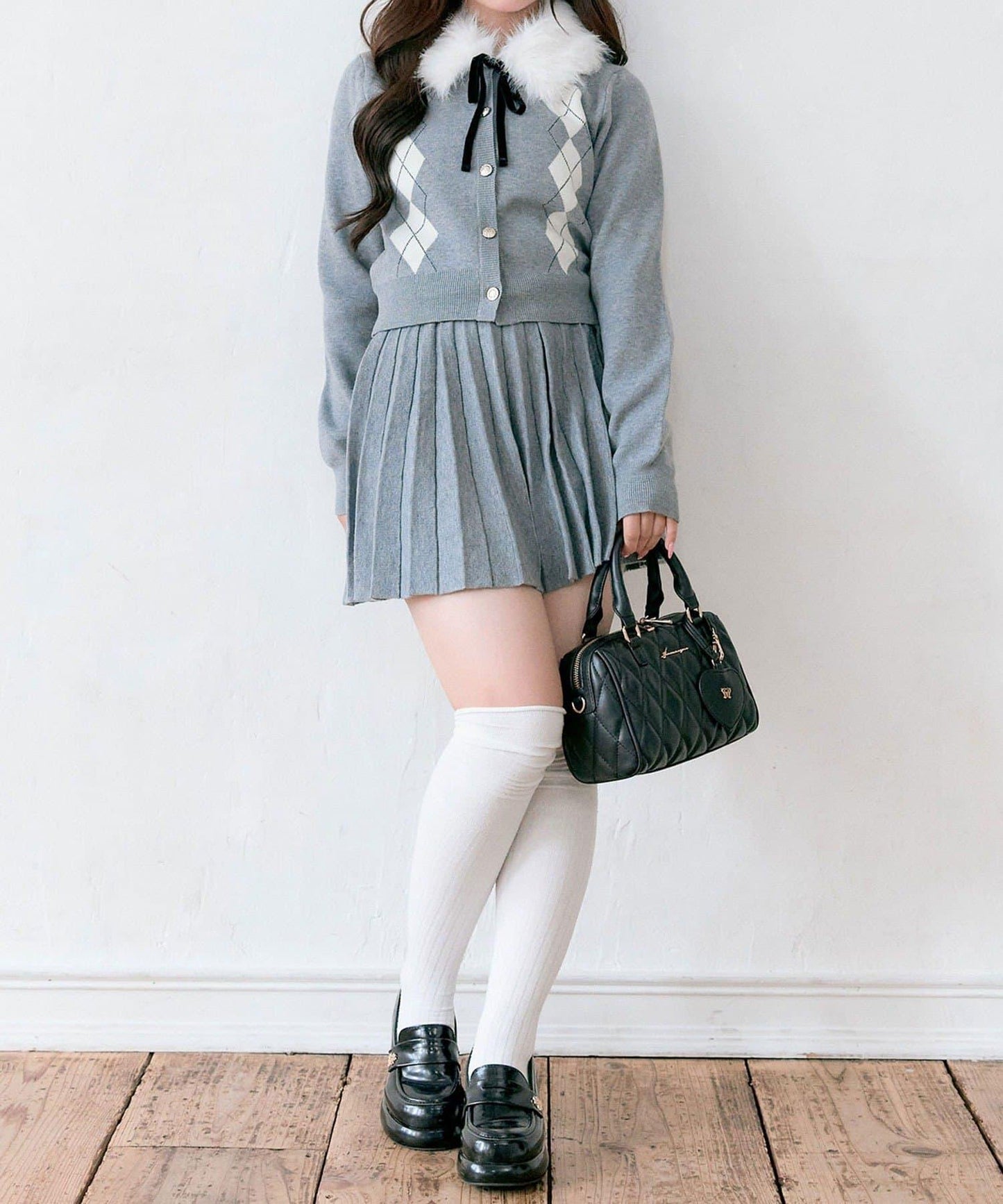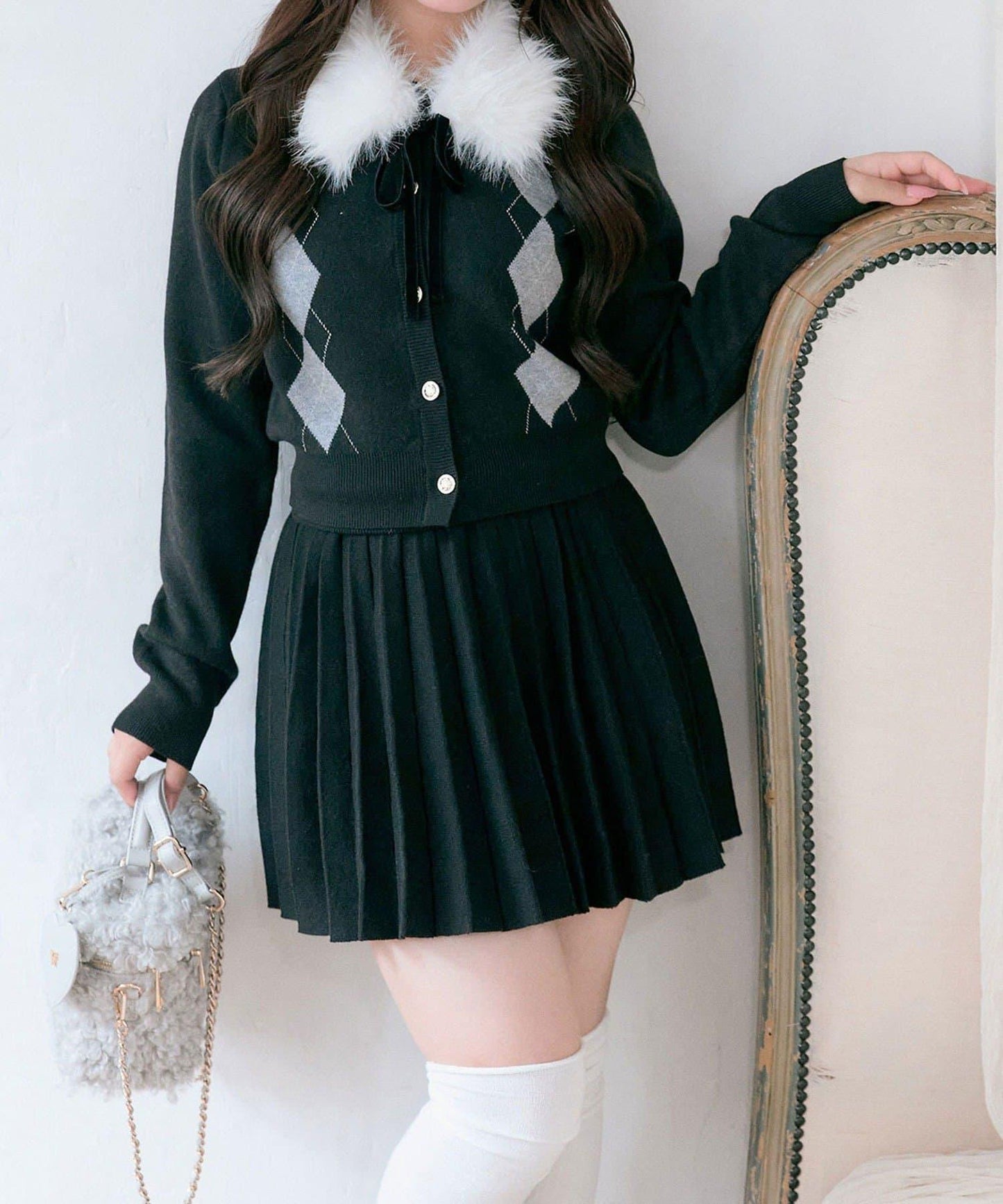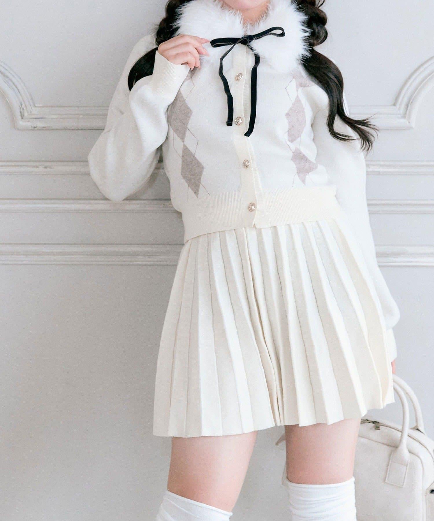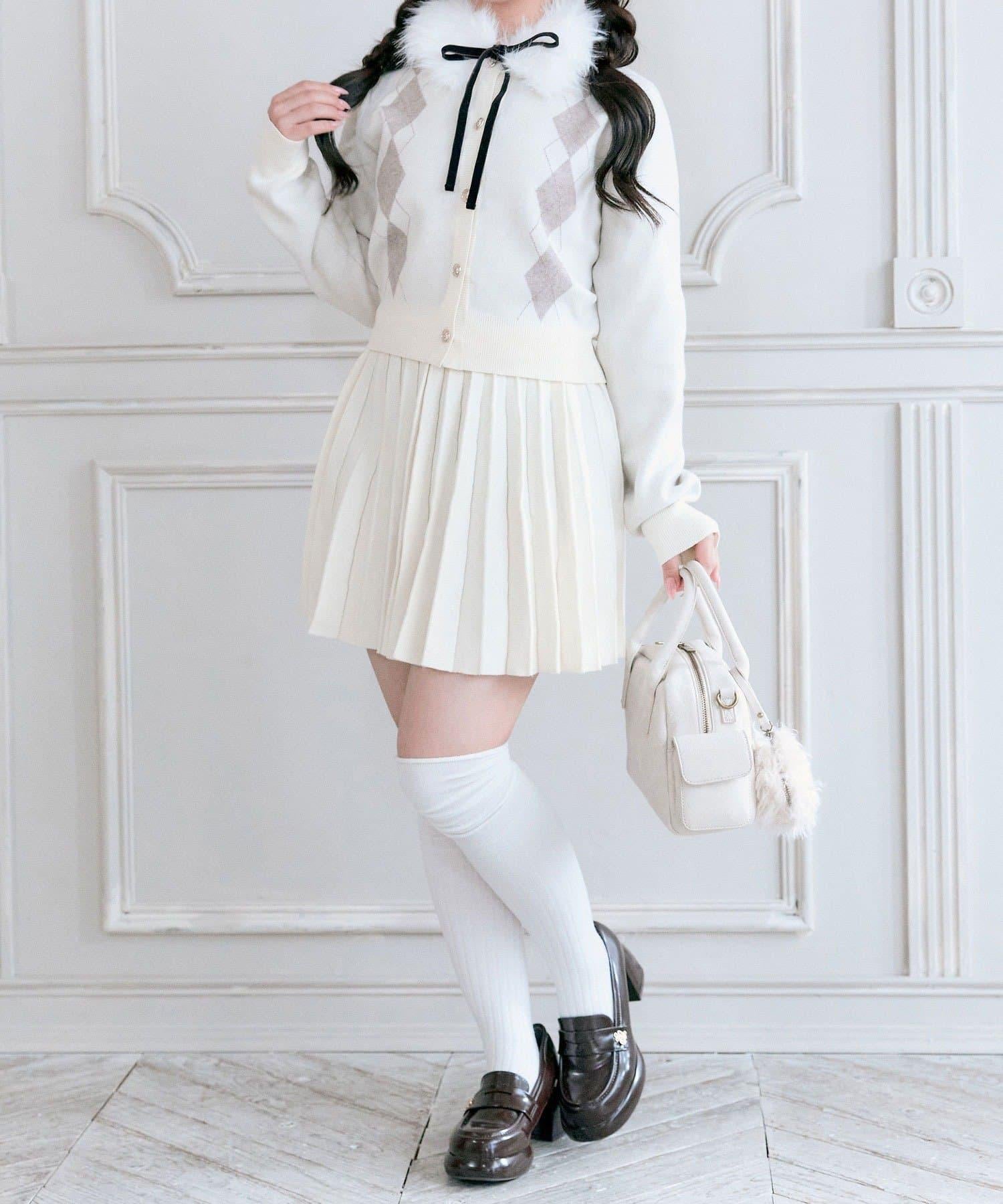 與帶毛邊的菱格紋針織衫(貨號:1052050280)搭配,可打造出套裝造型。