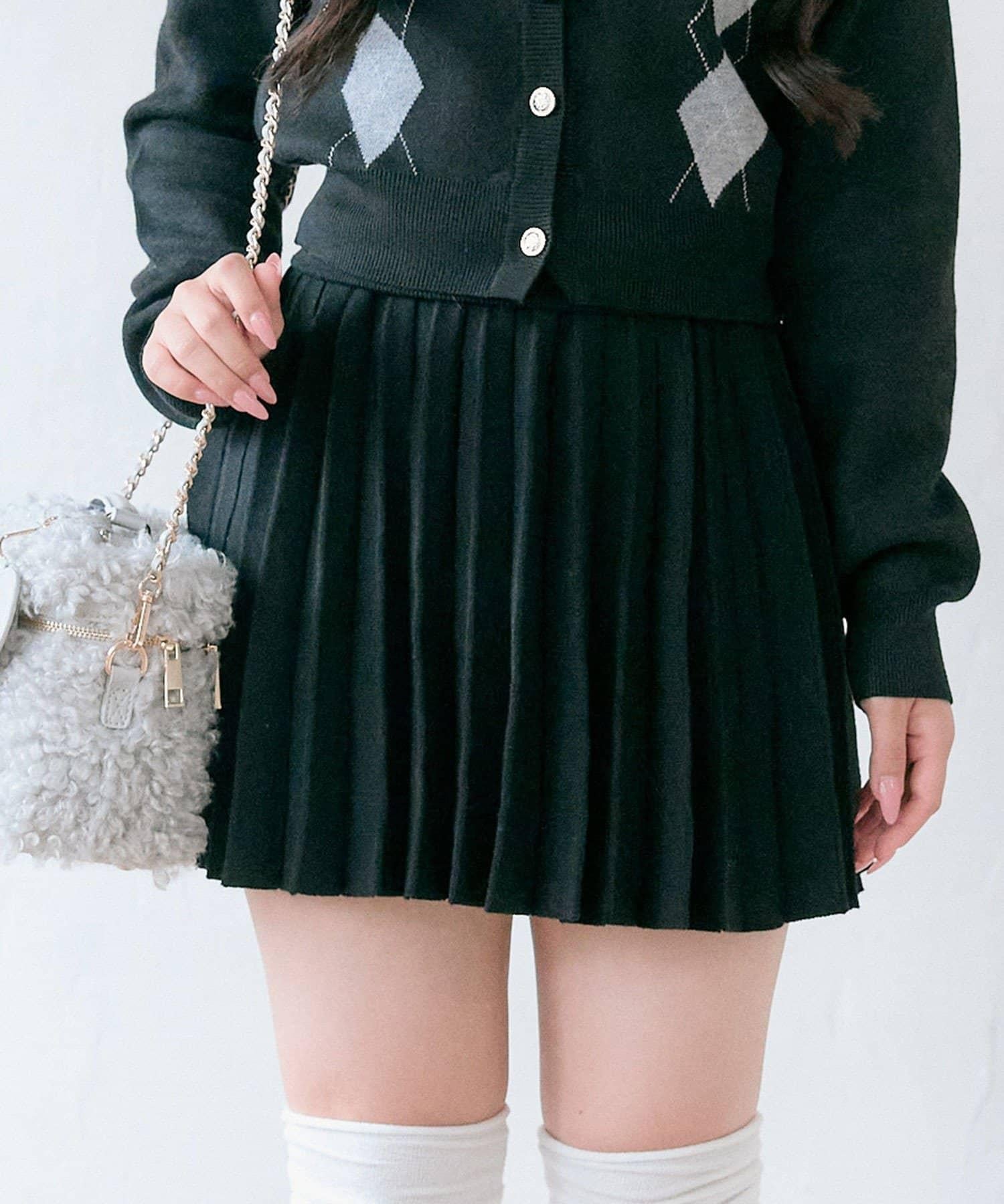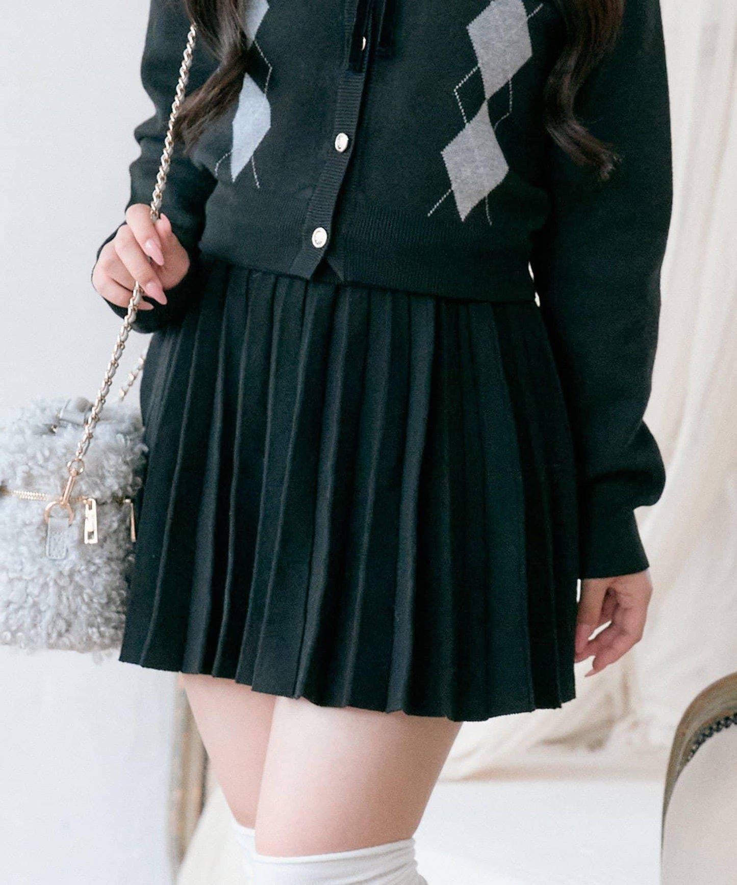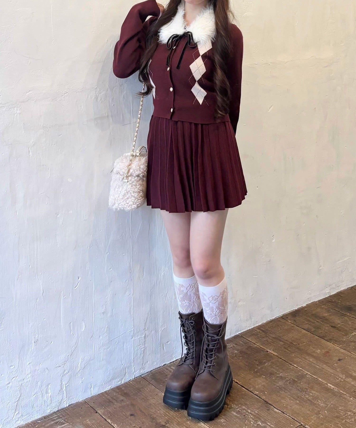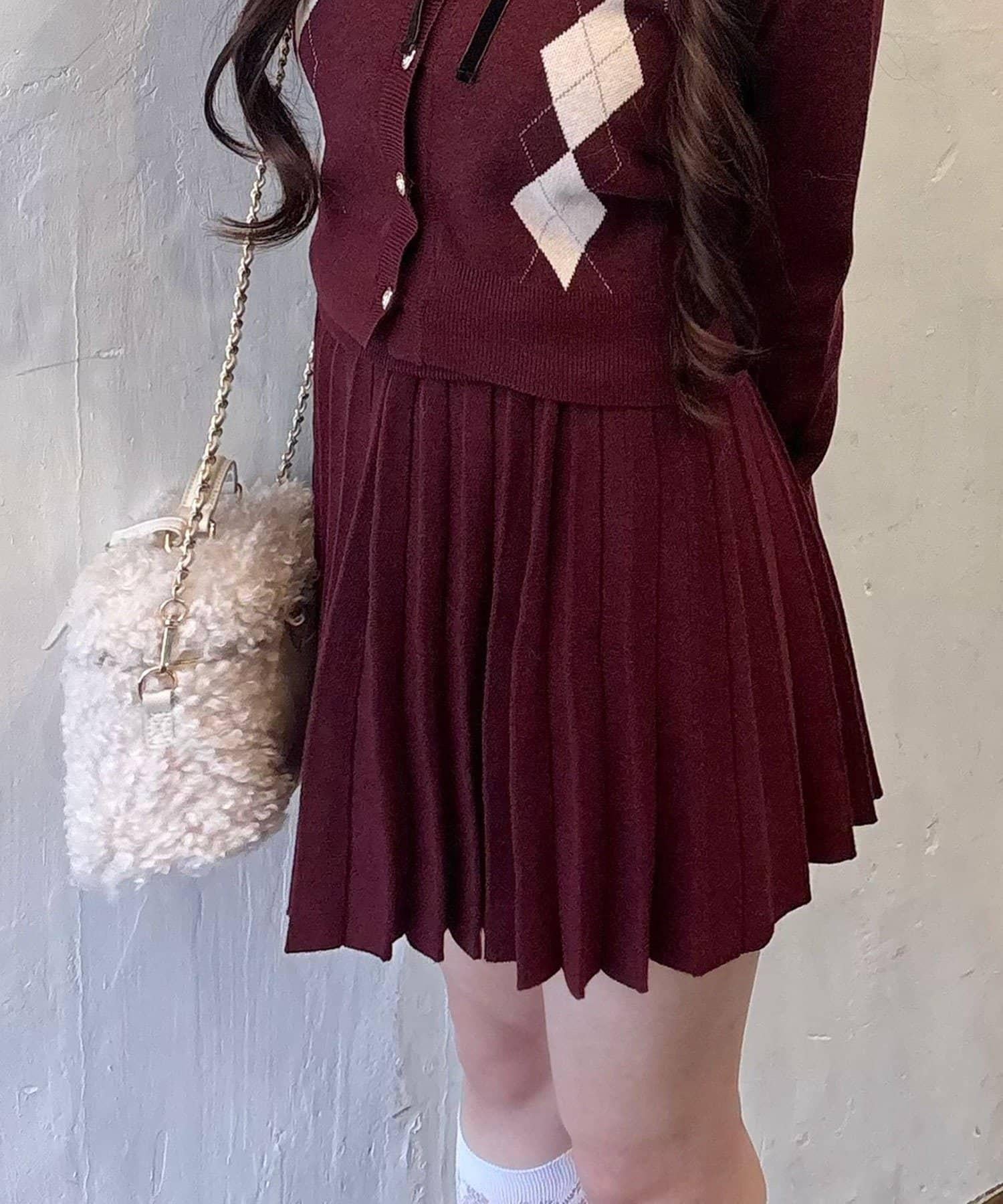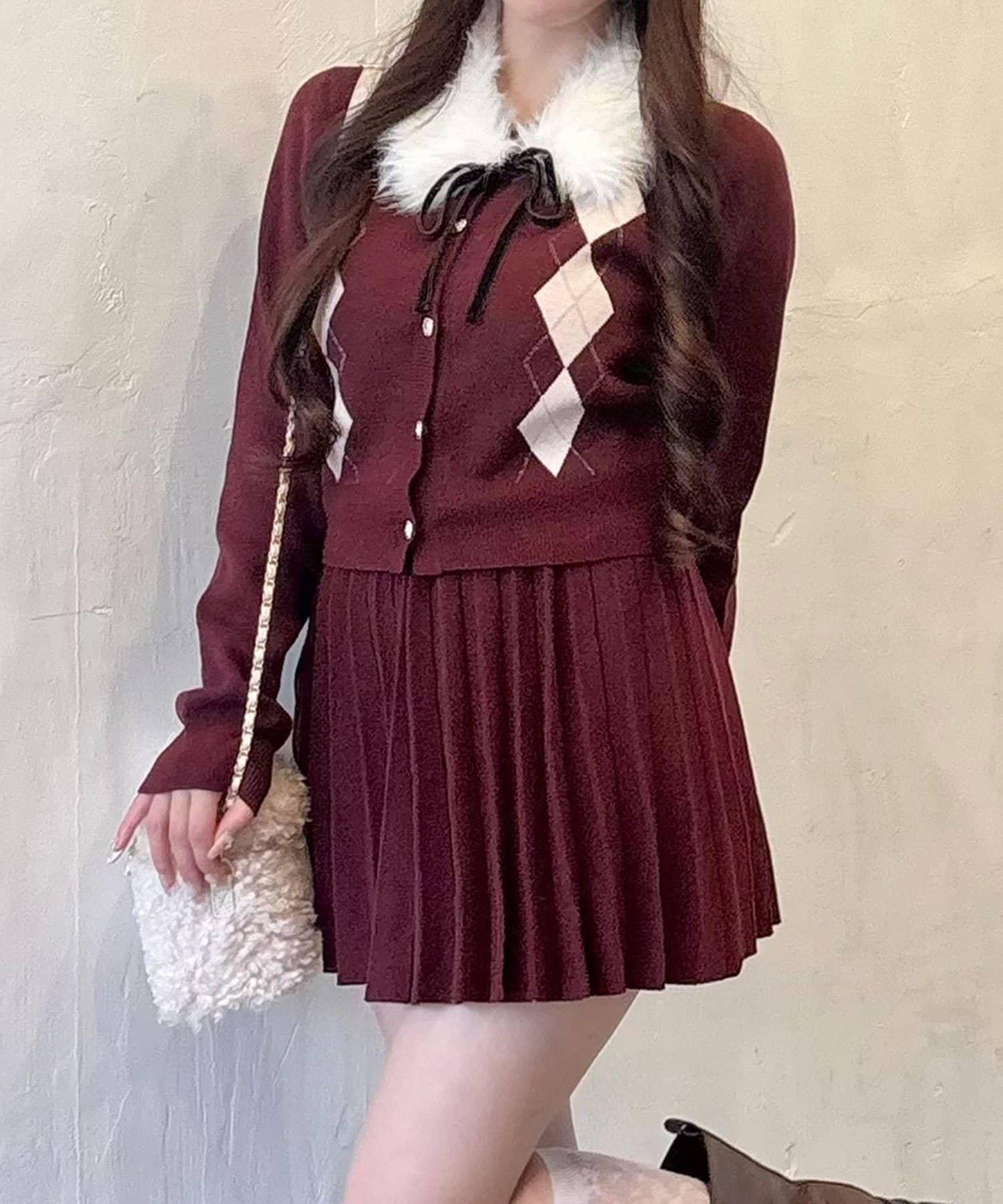 與帶毛邊的菱格紋針織衫(貨號:1052050280)搭配,可打造出套裝造型。