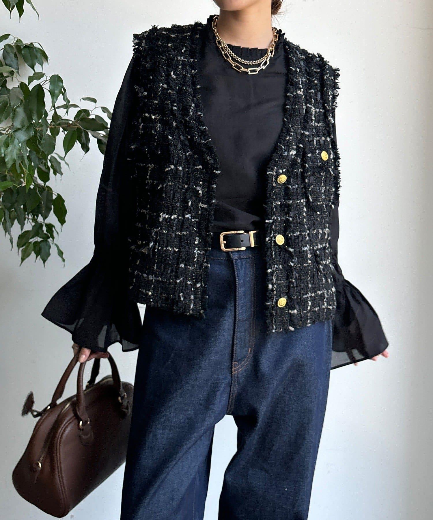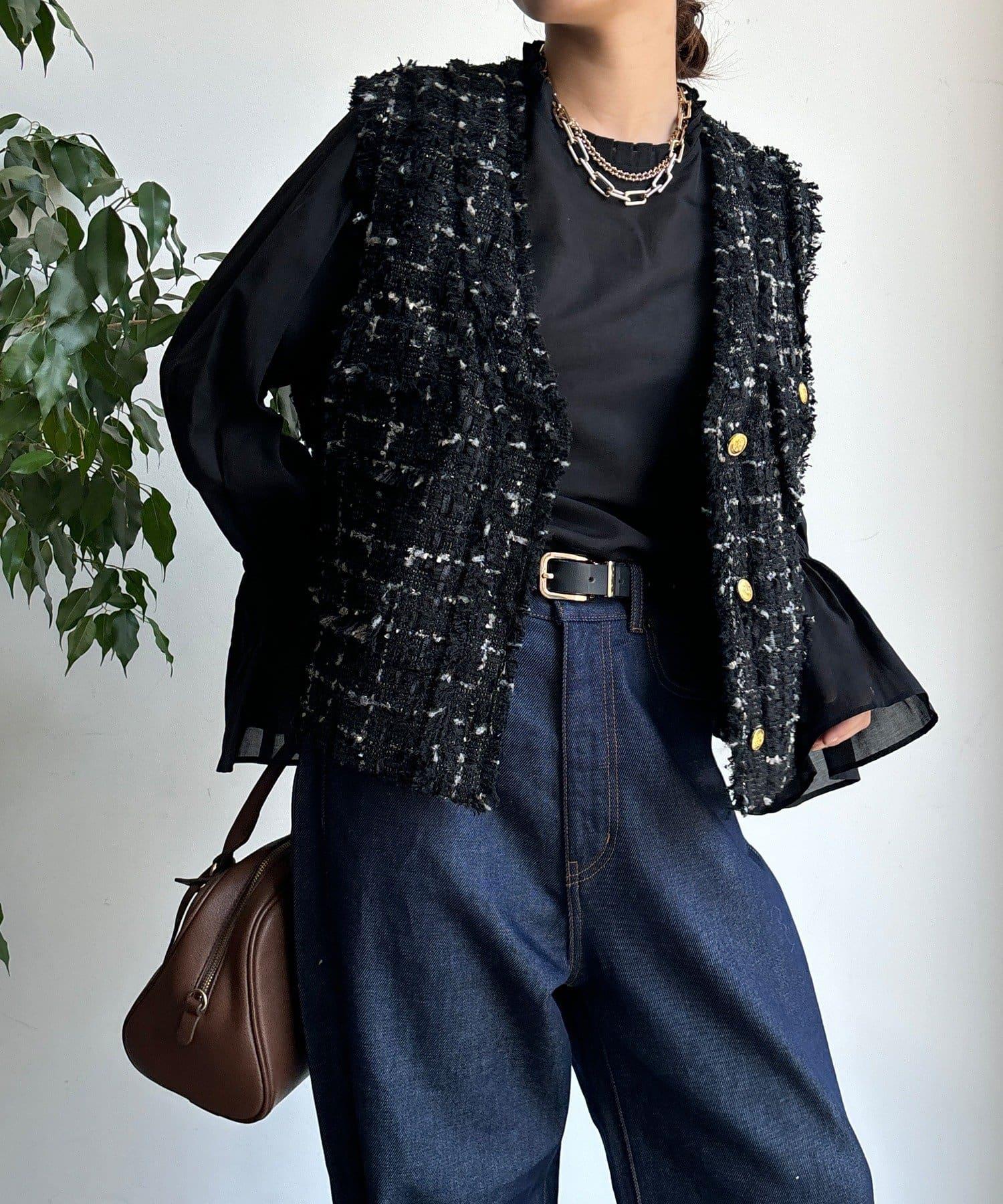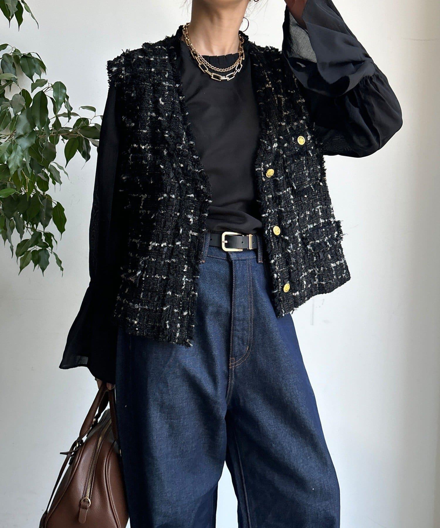 斜紋軟呢短款馬甲。