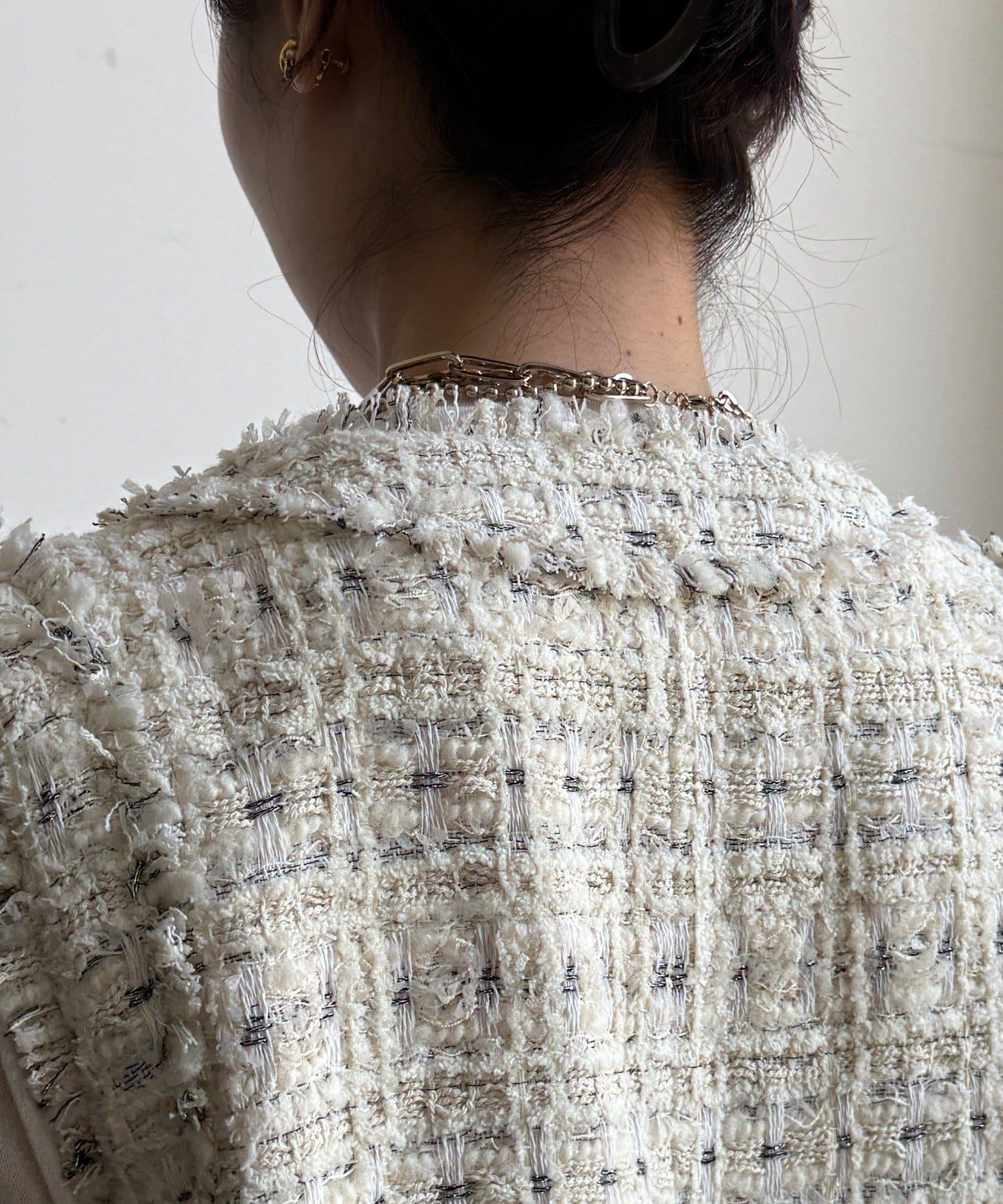 小巧的剪裁給人簡約的印象,配以經典的金色紐扣。鈕釦起到了微妙的點綴作用。