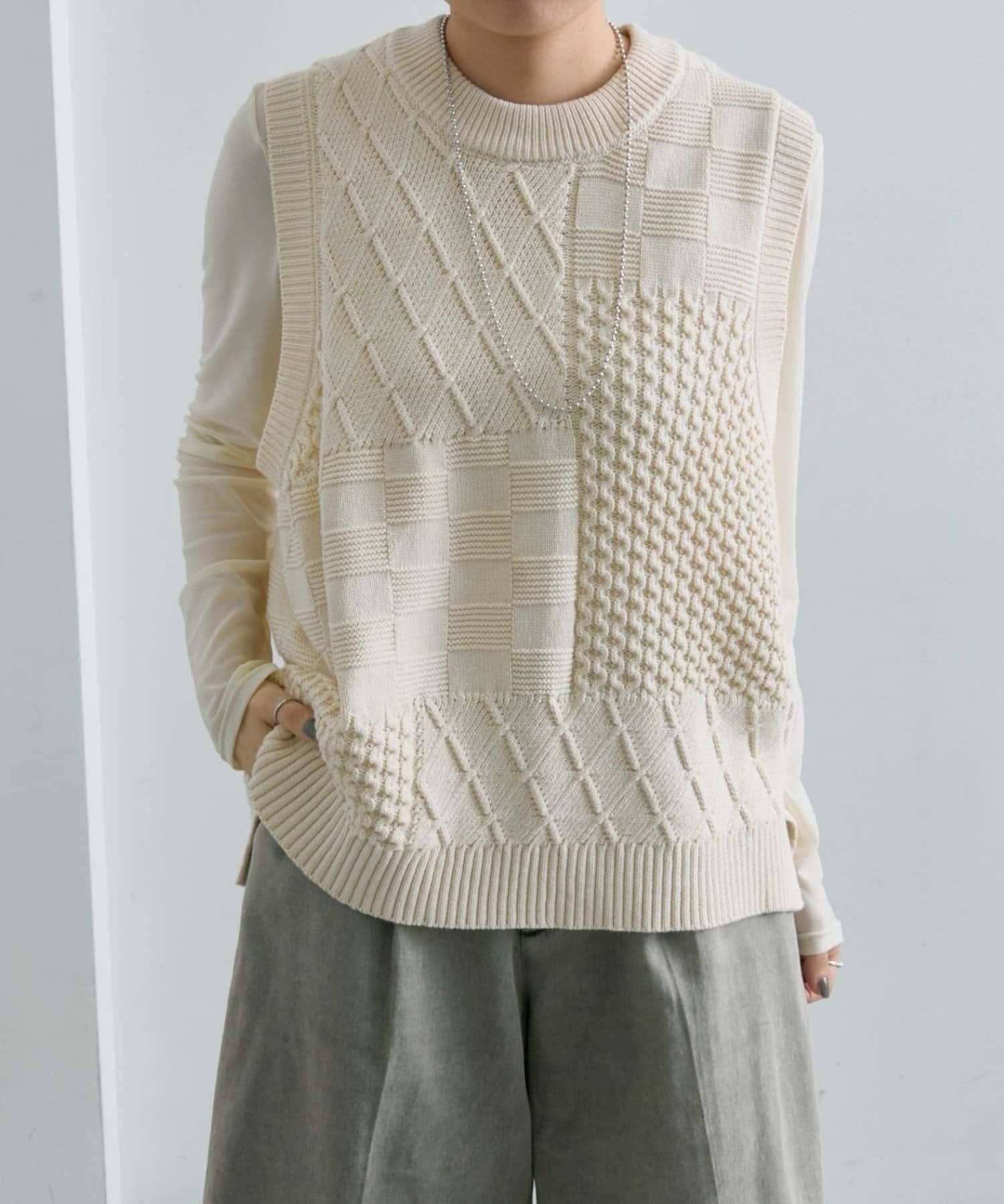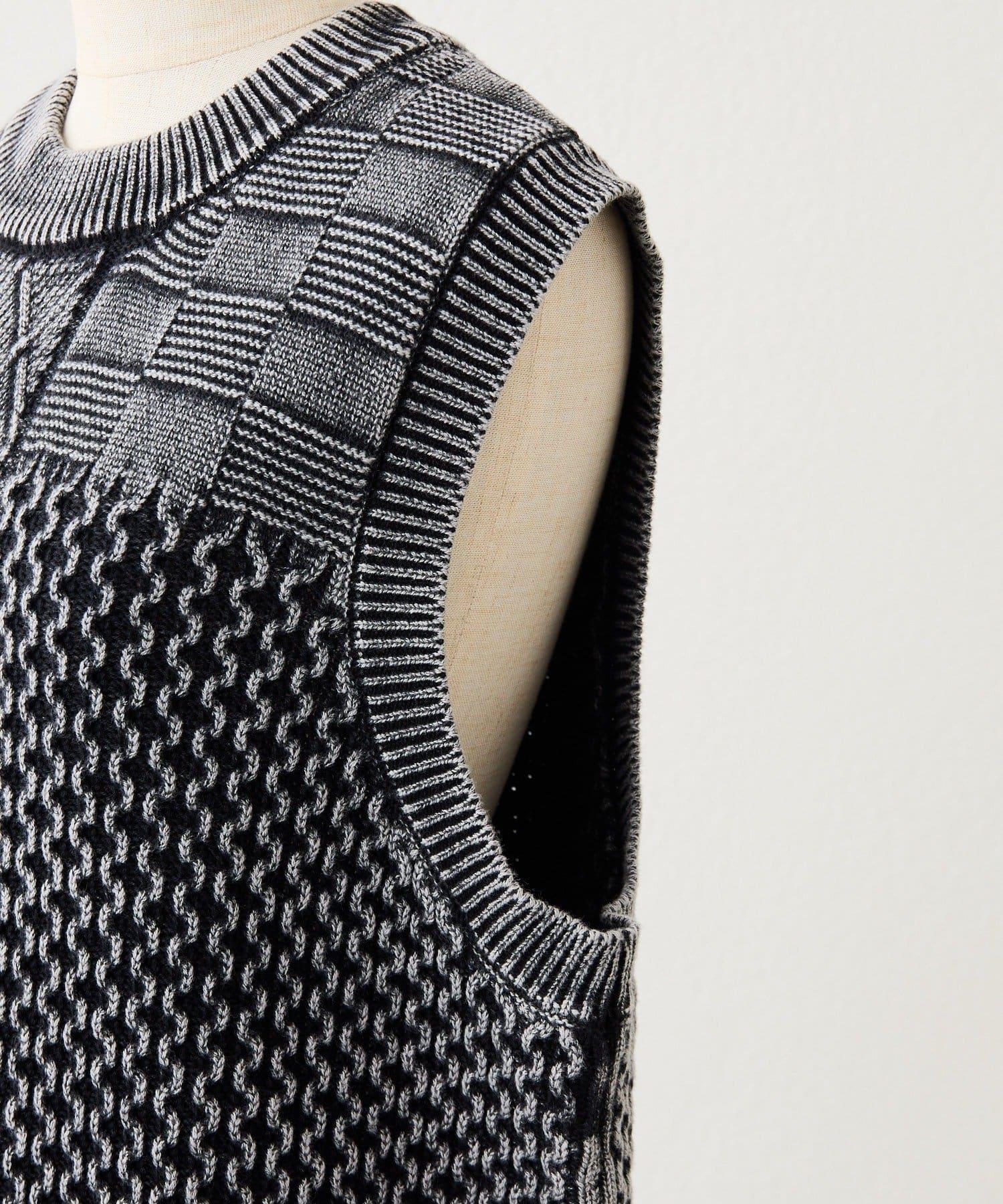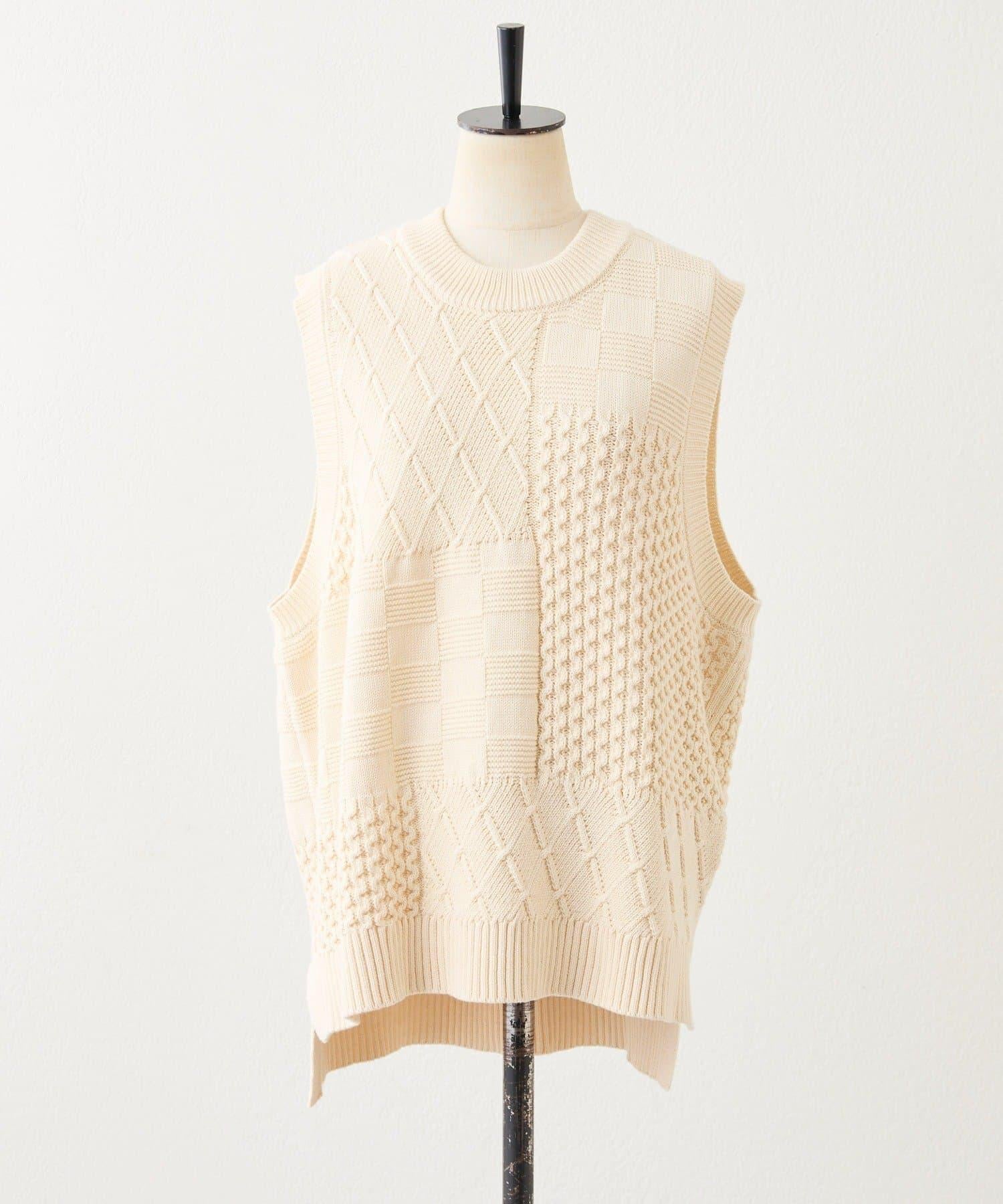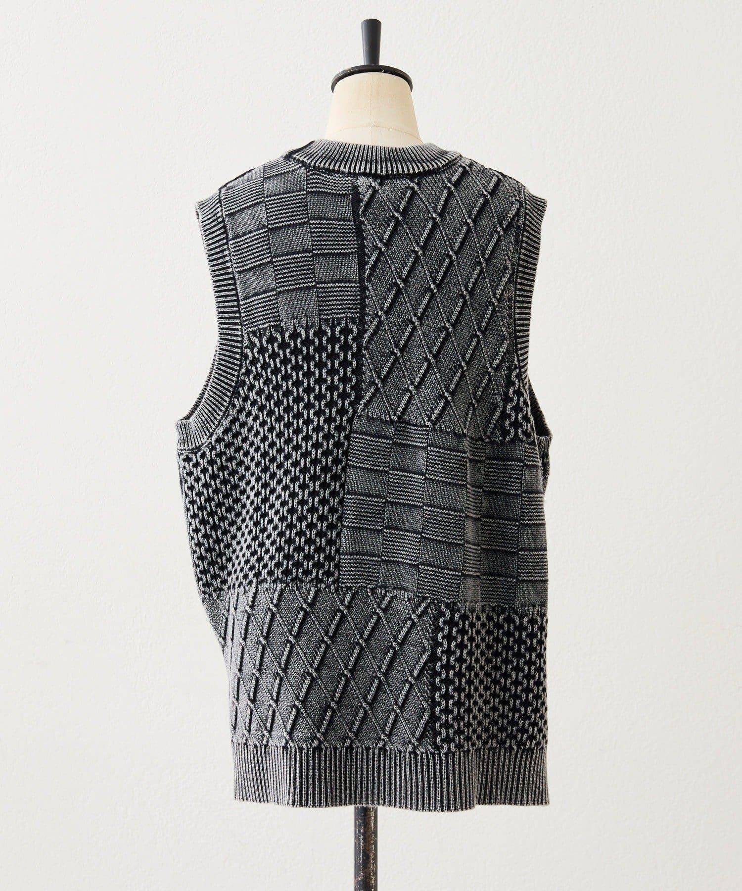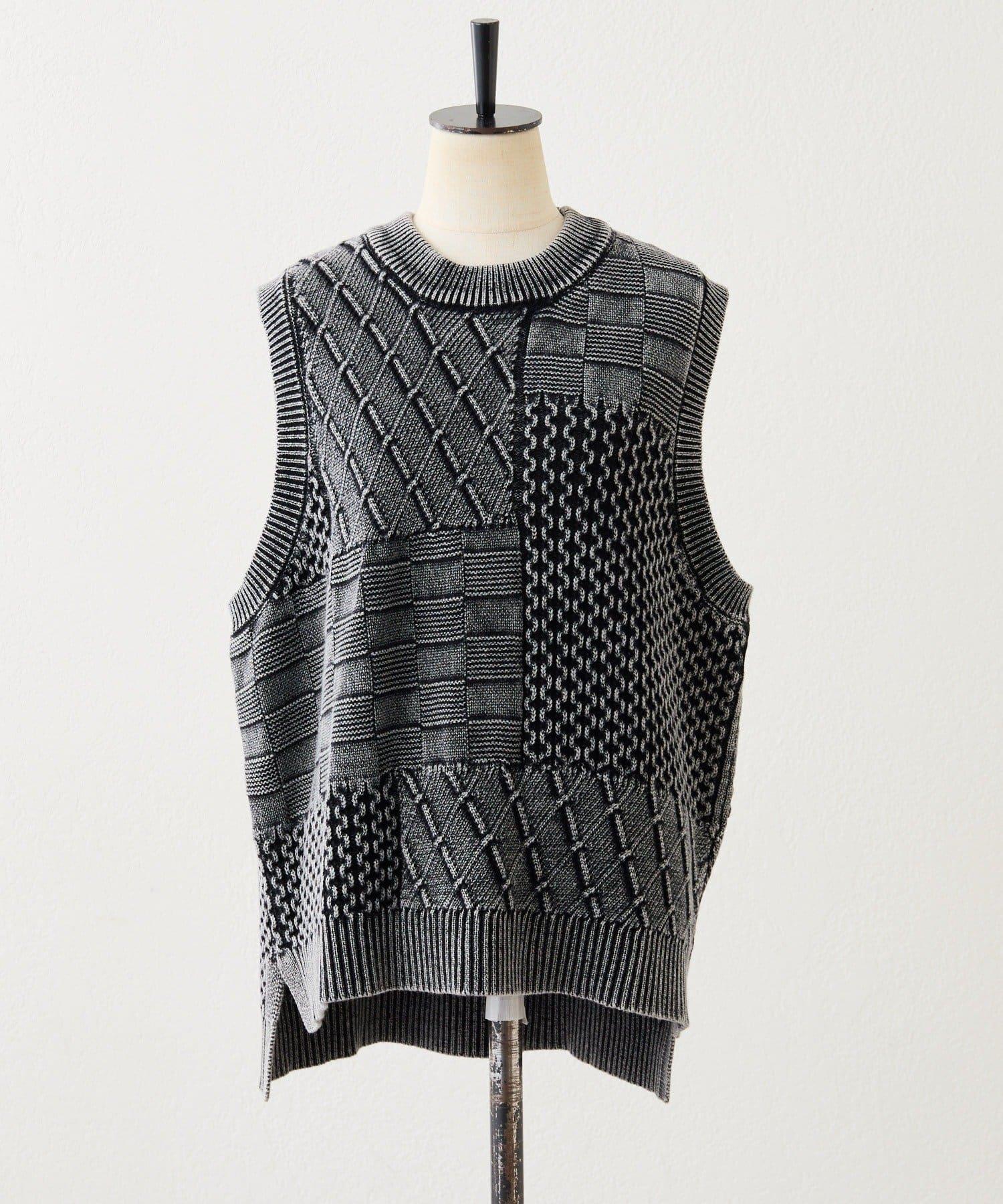 這款馬甲的設計看起來像是由各種圖案的針織物對接而成。