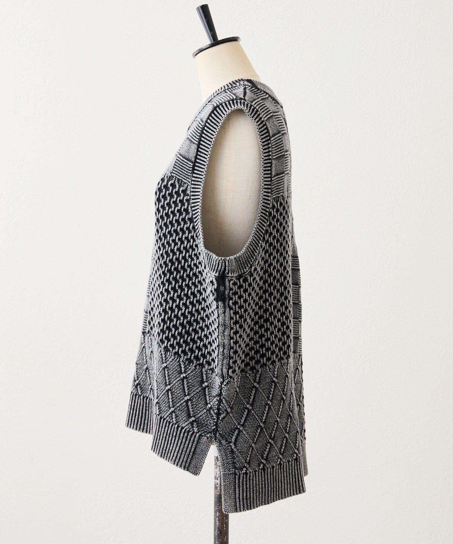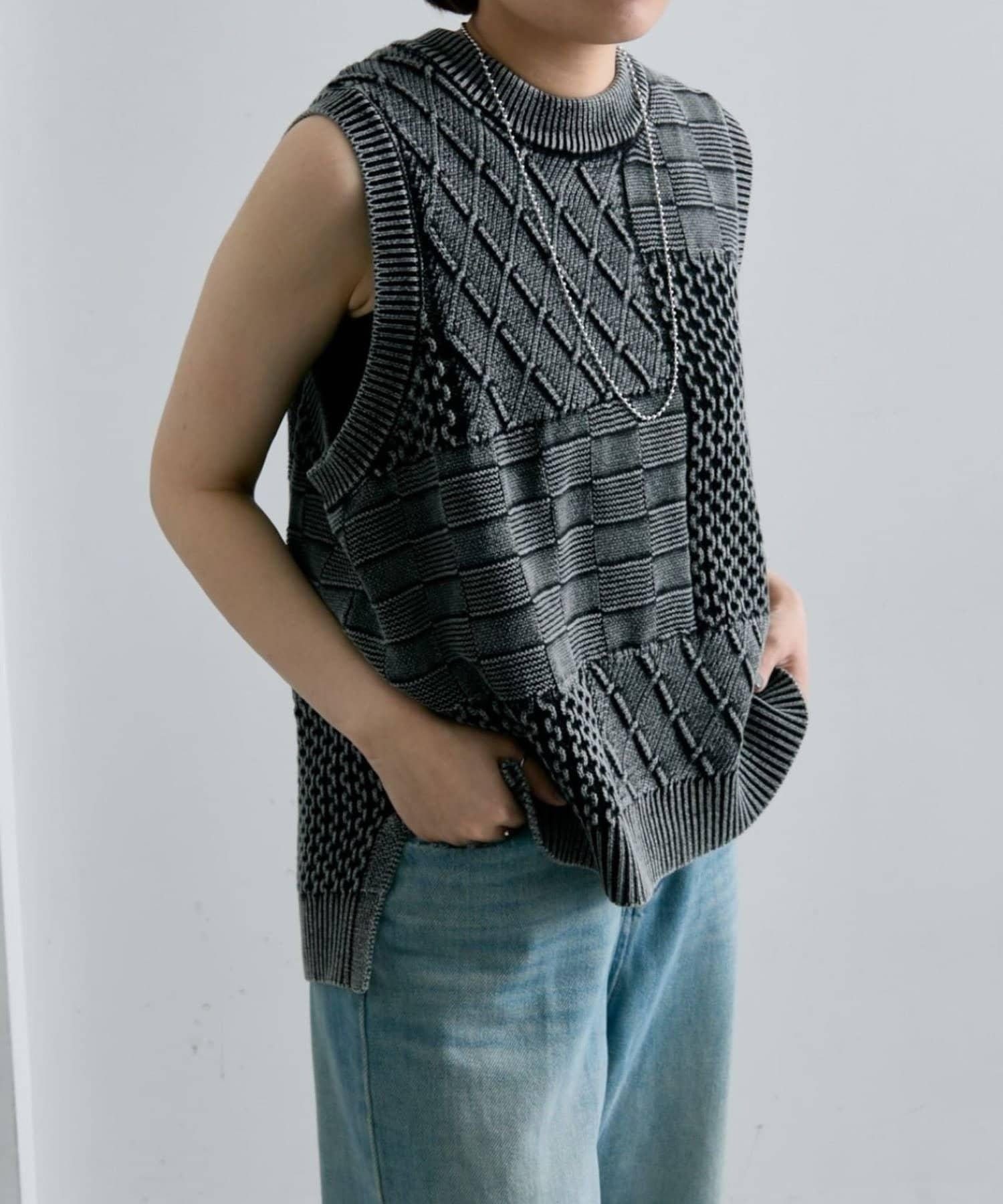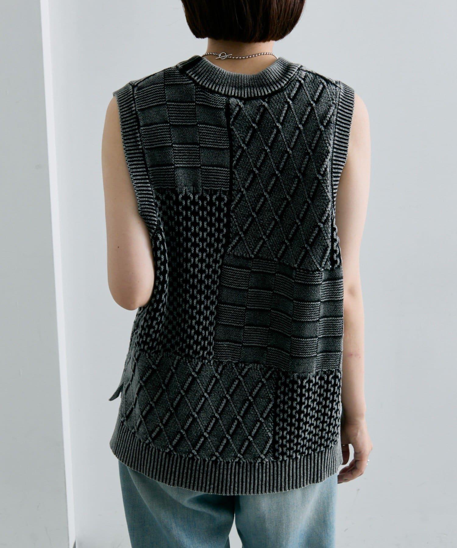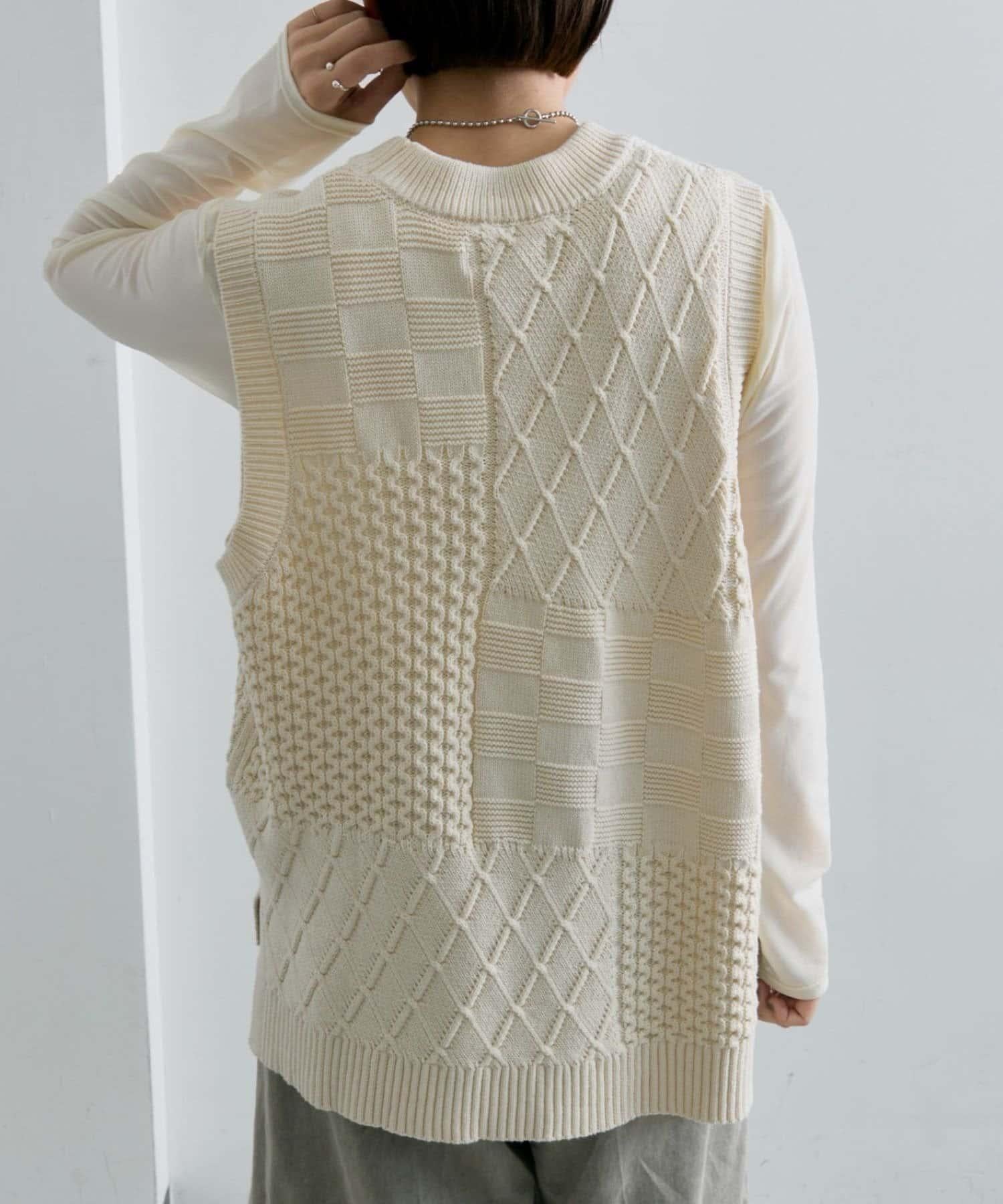 這款馬甲的設計看起來像是由各種圖案的針織物對接而成。