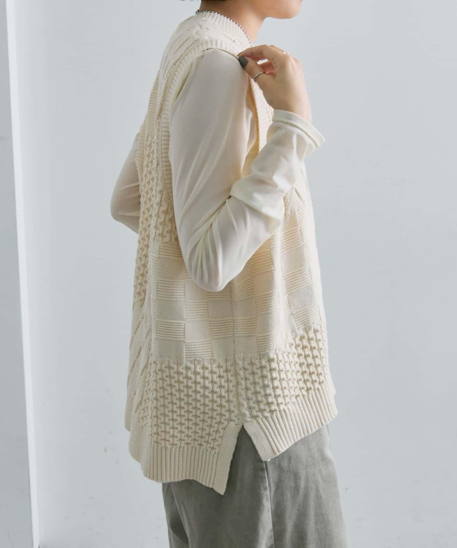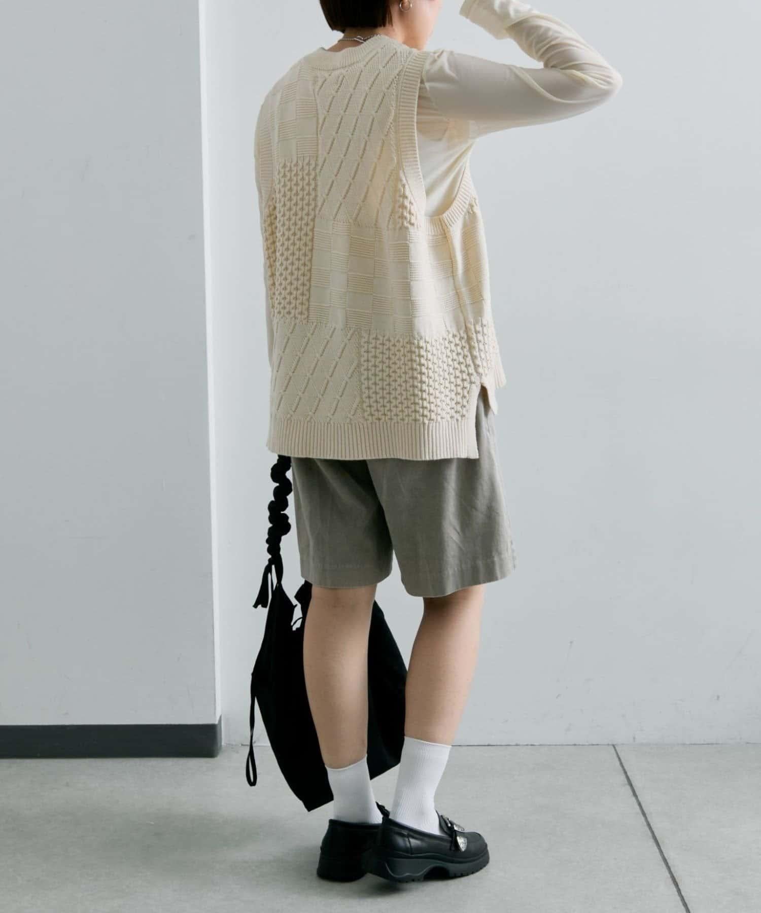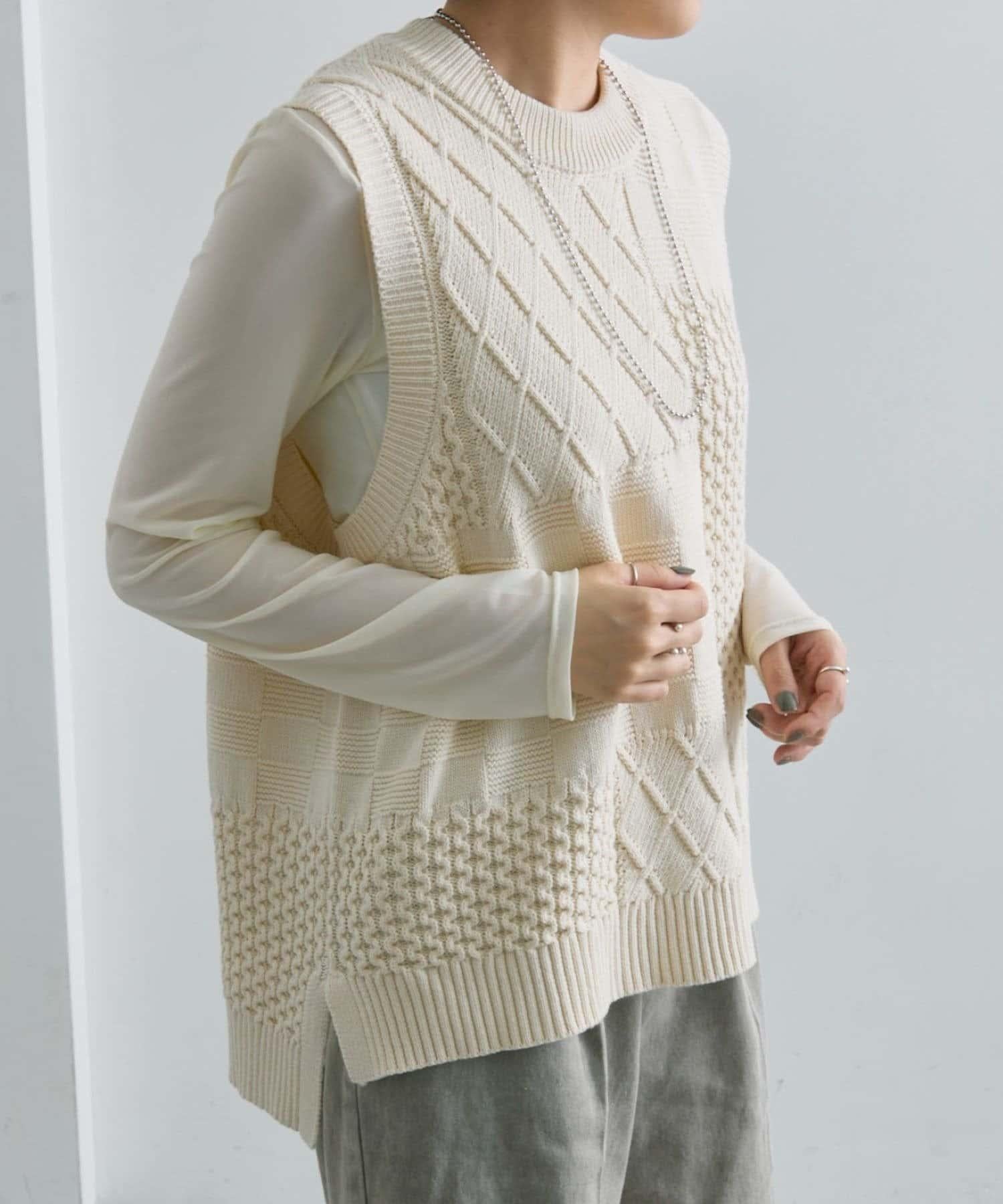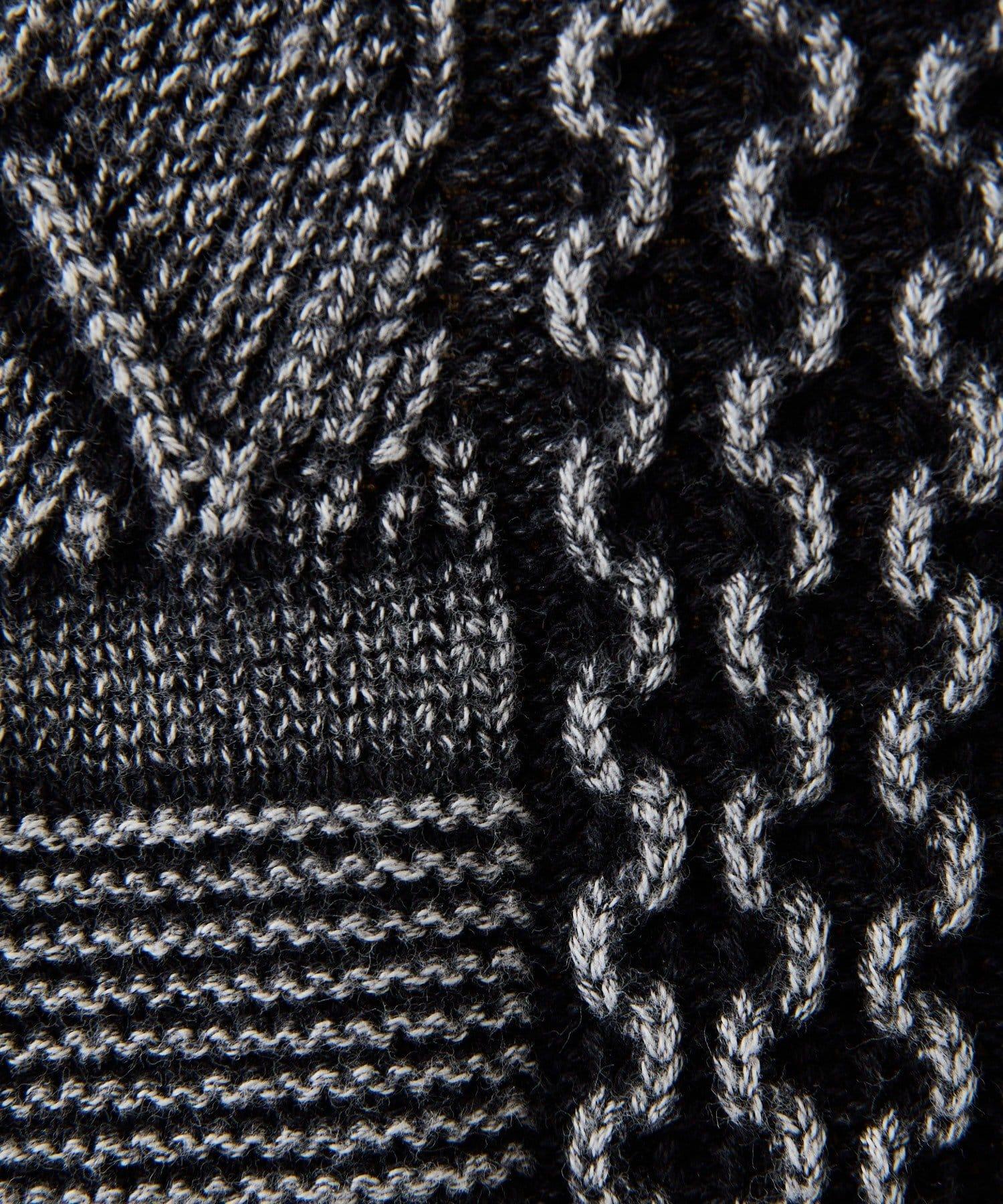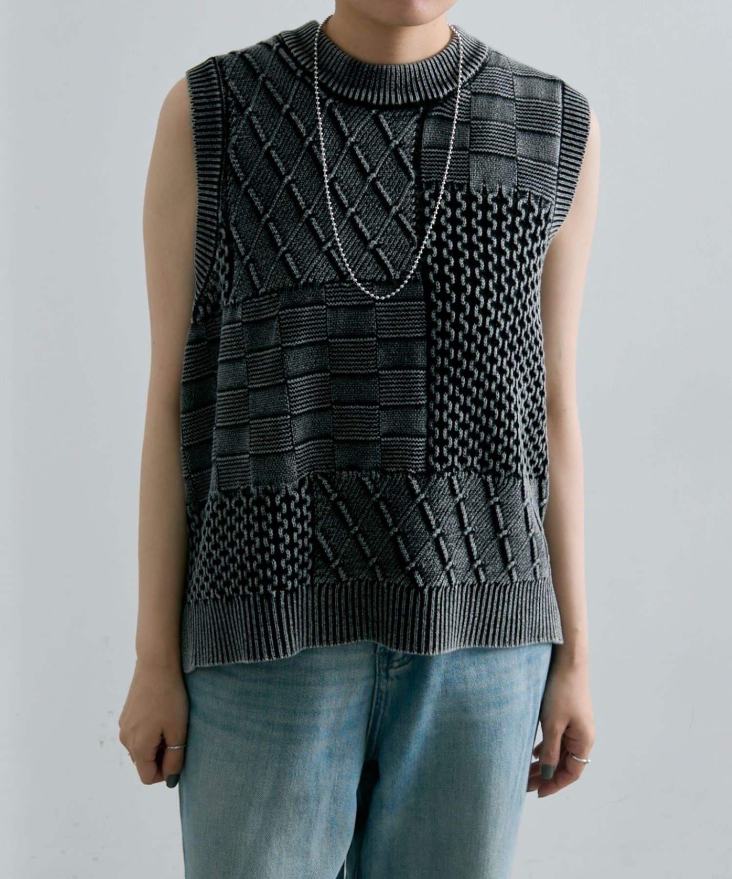 這款馬甲的設計看起來像是由各種圖案的針織物對接而成。