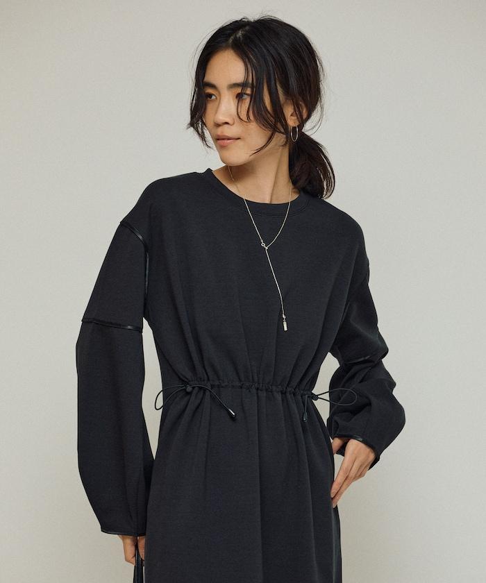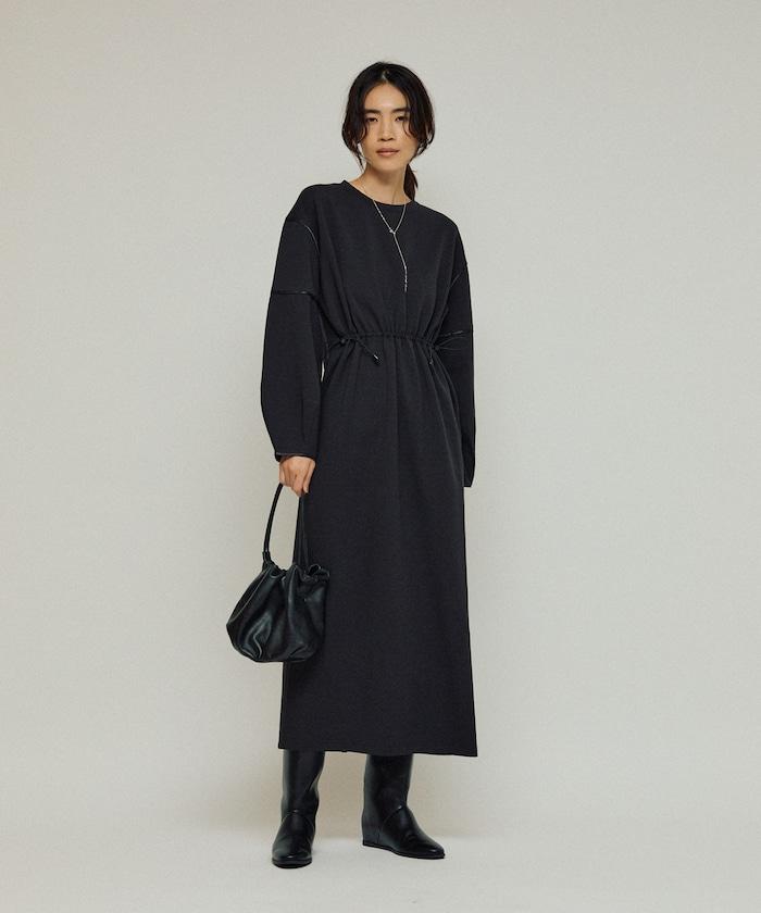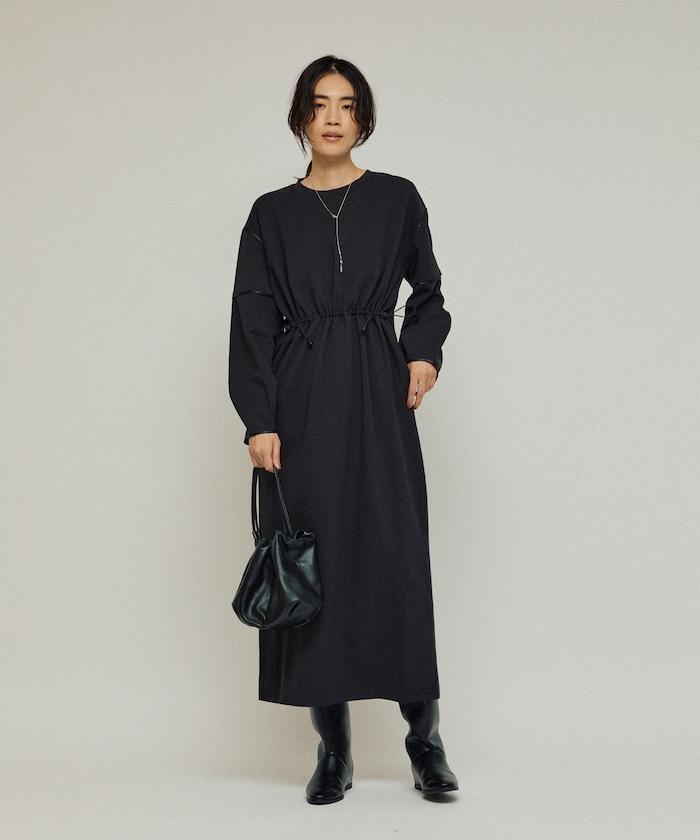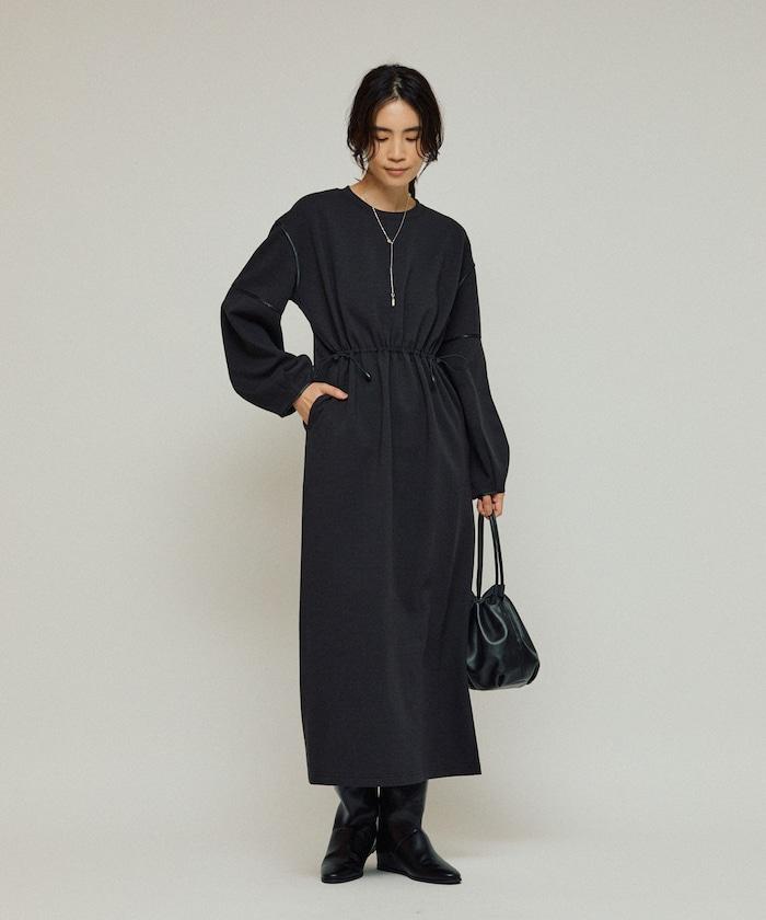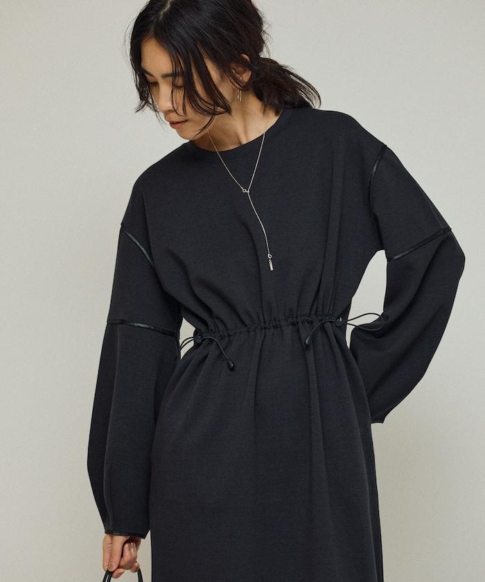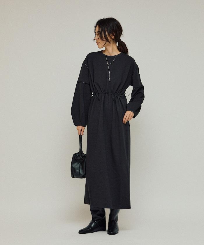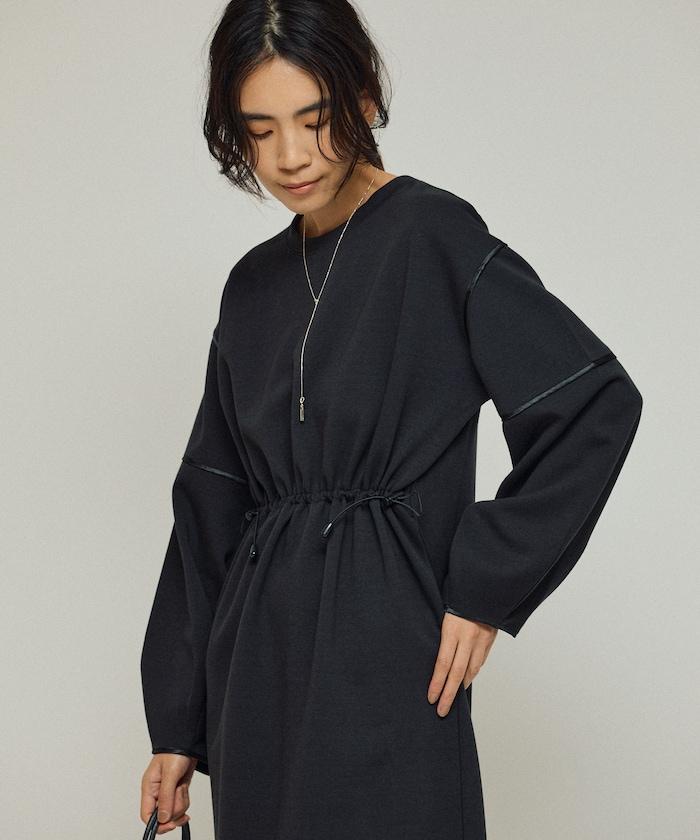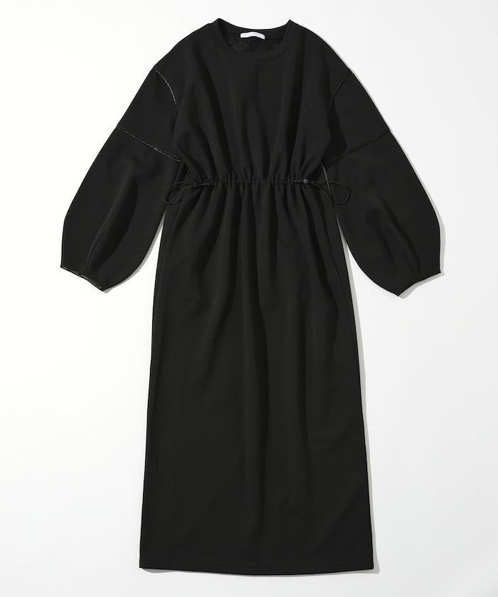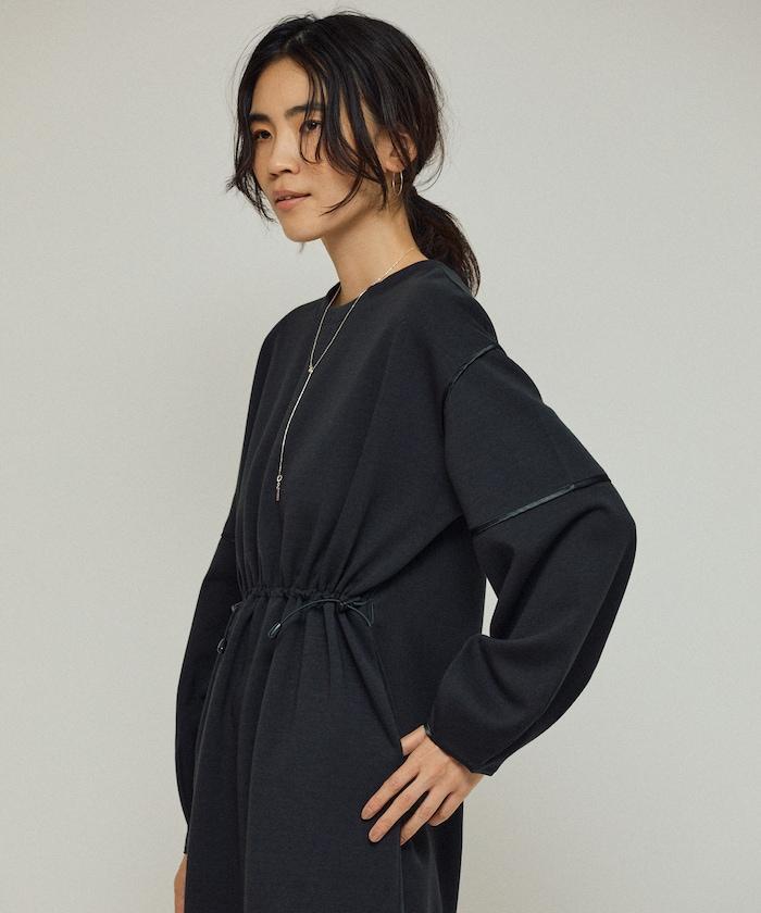 針織腰部抽繩連衣裙 / 繭型袖帶抽繩連衣裙