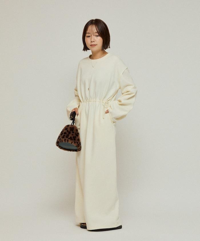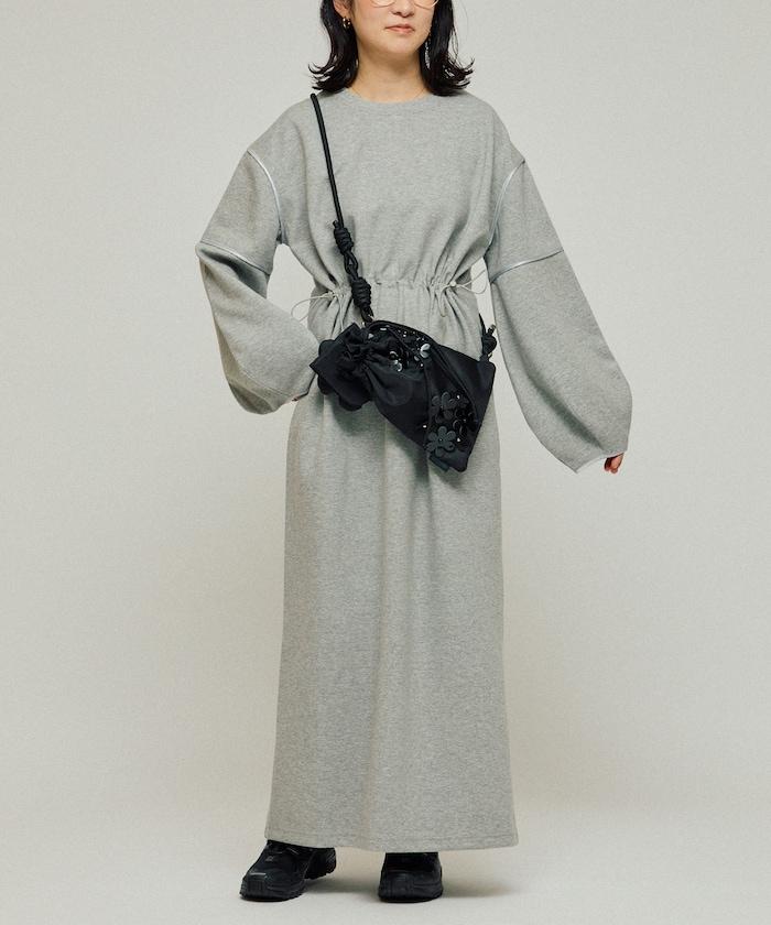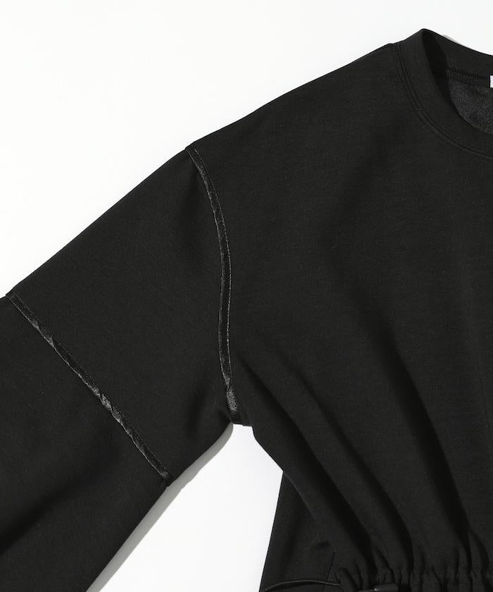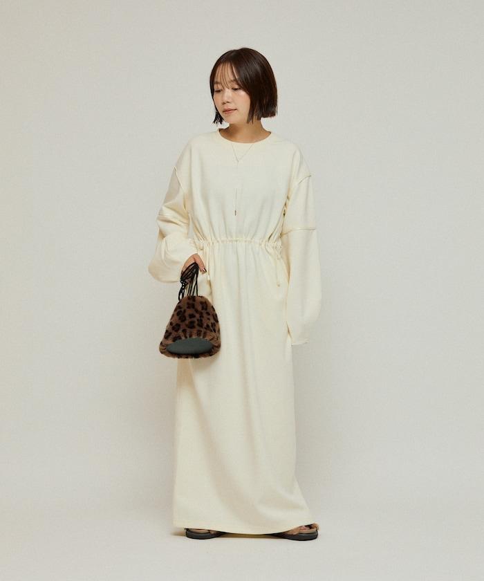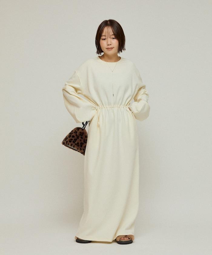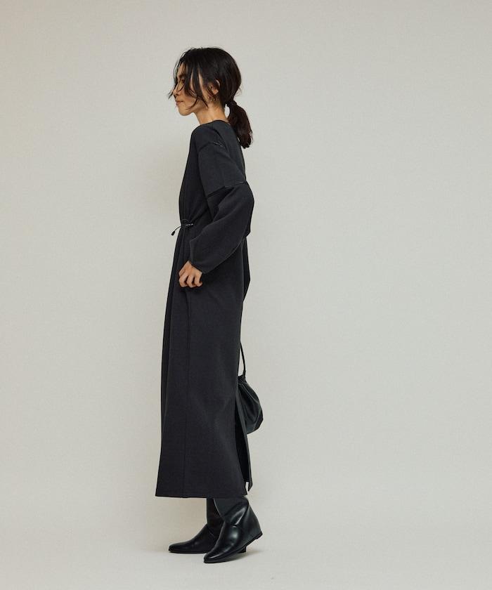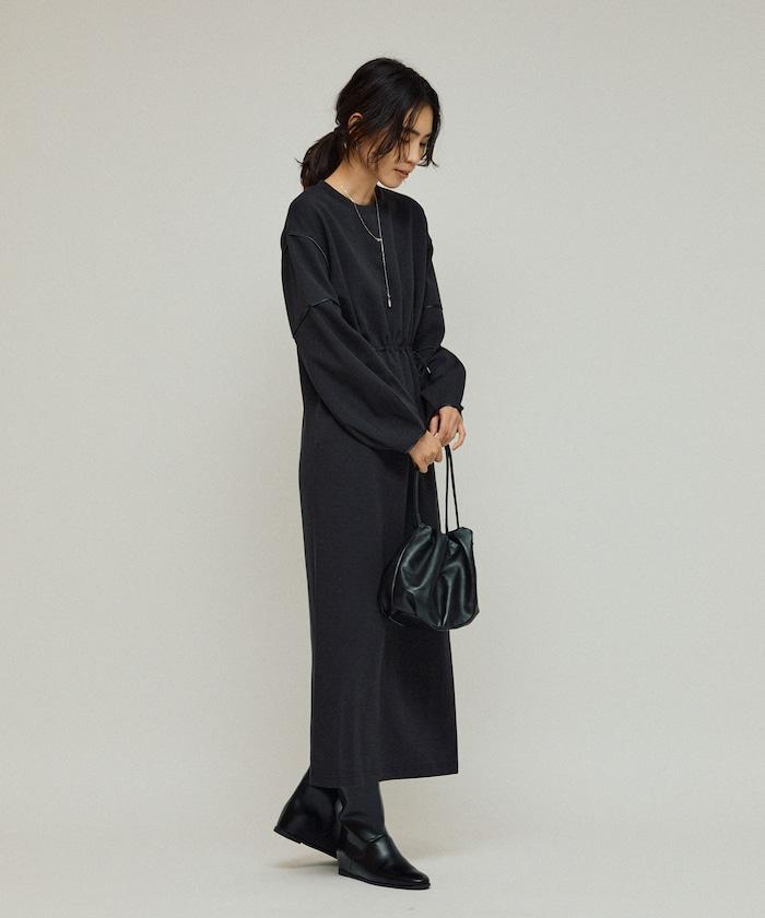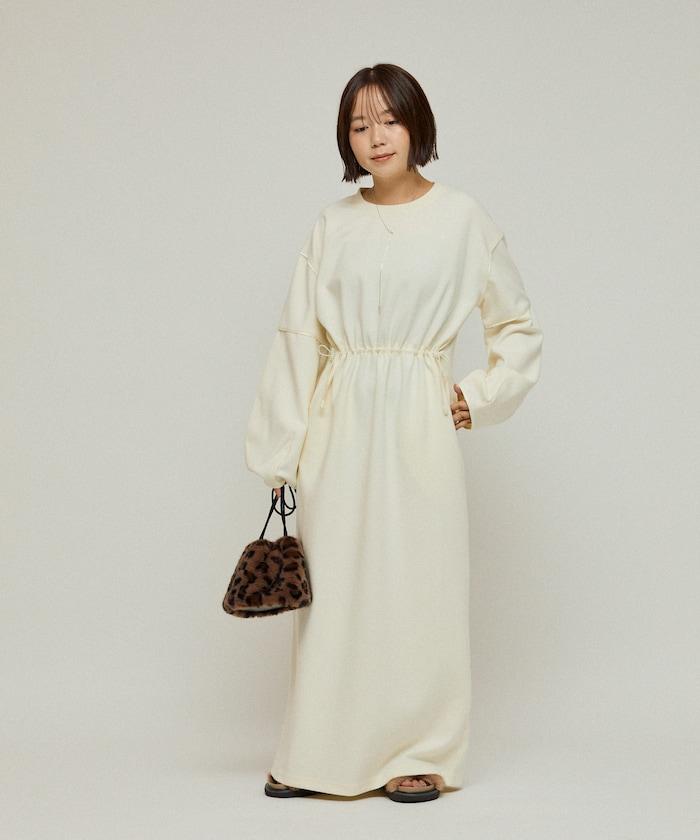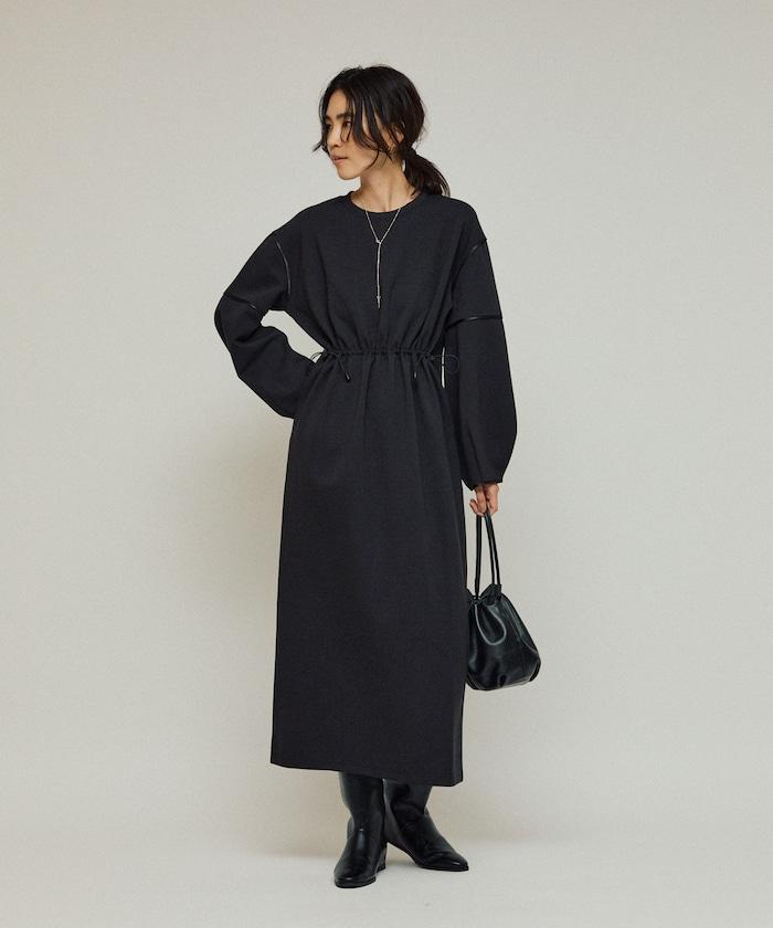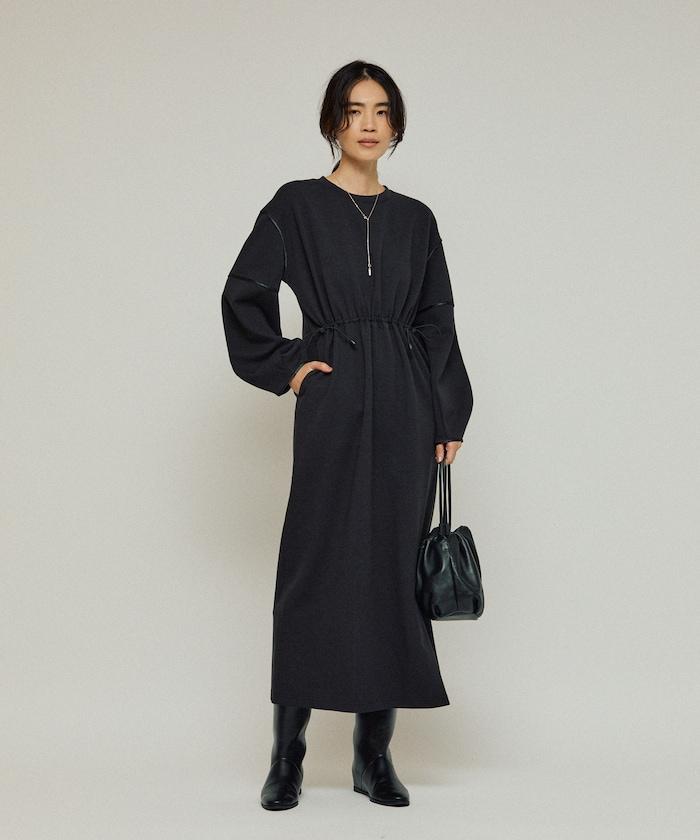 針織腰部抽繩連衣裙 / 繭型袖帶抽繩連衣裙