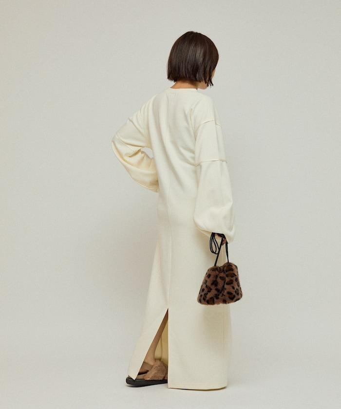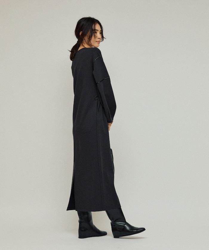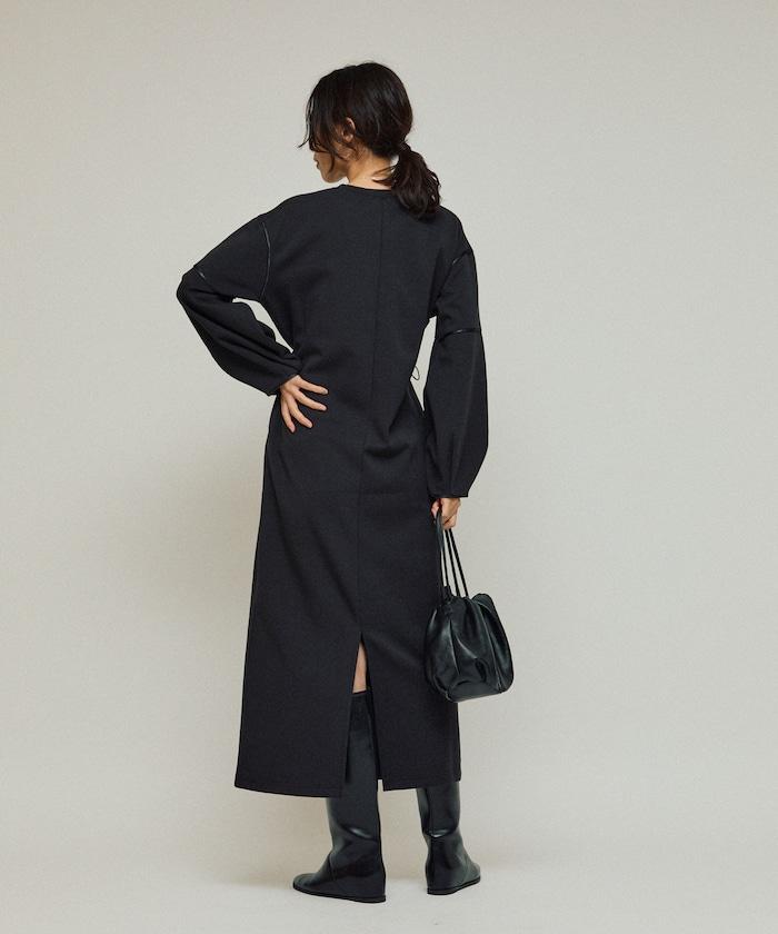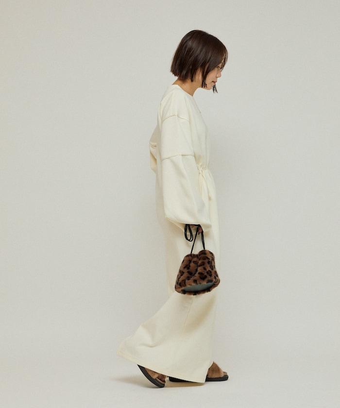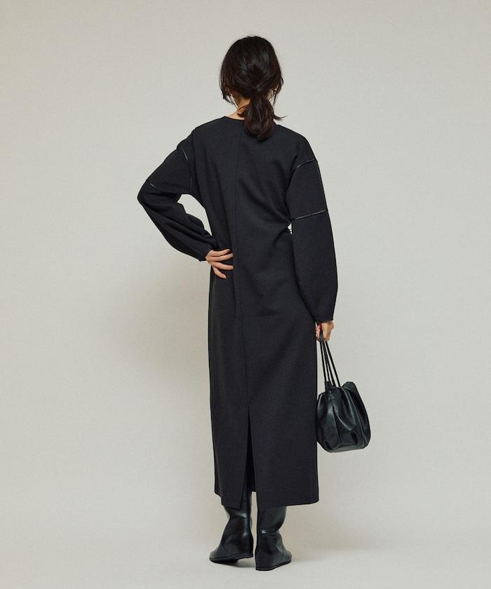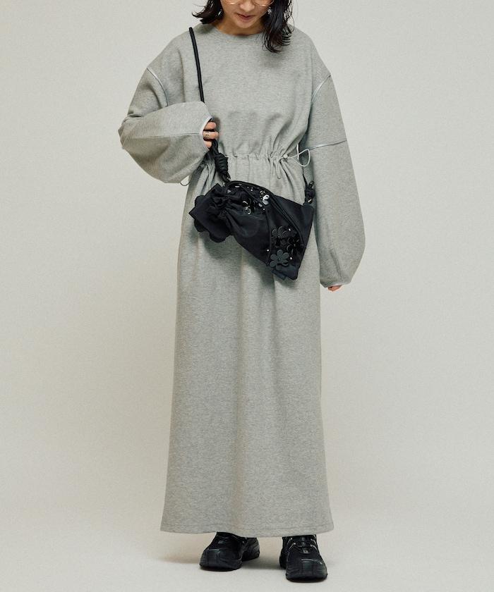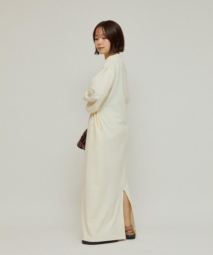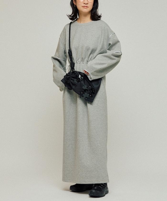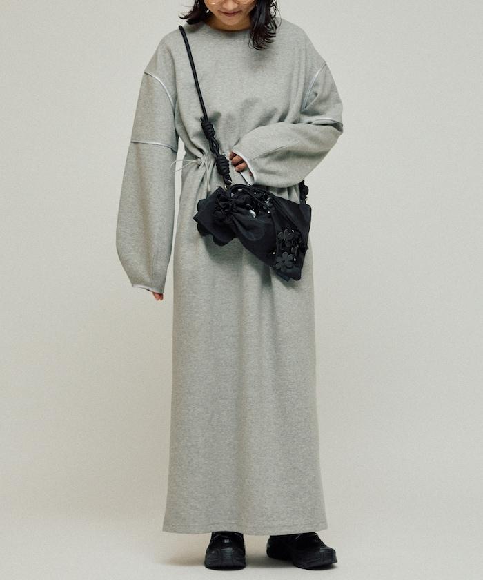 針織腰部抽繩連衣裙 / 繭型袖帶抽繩連衣裙