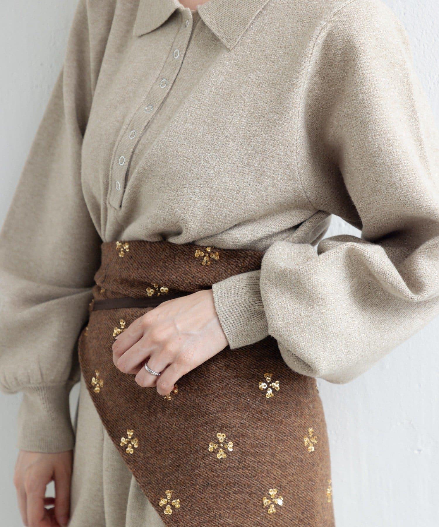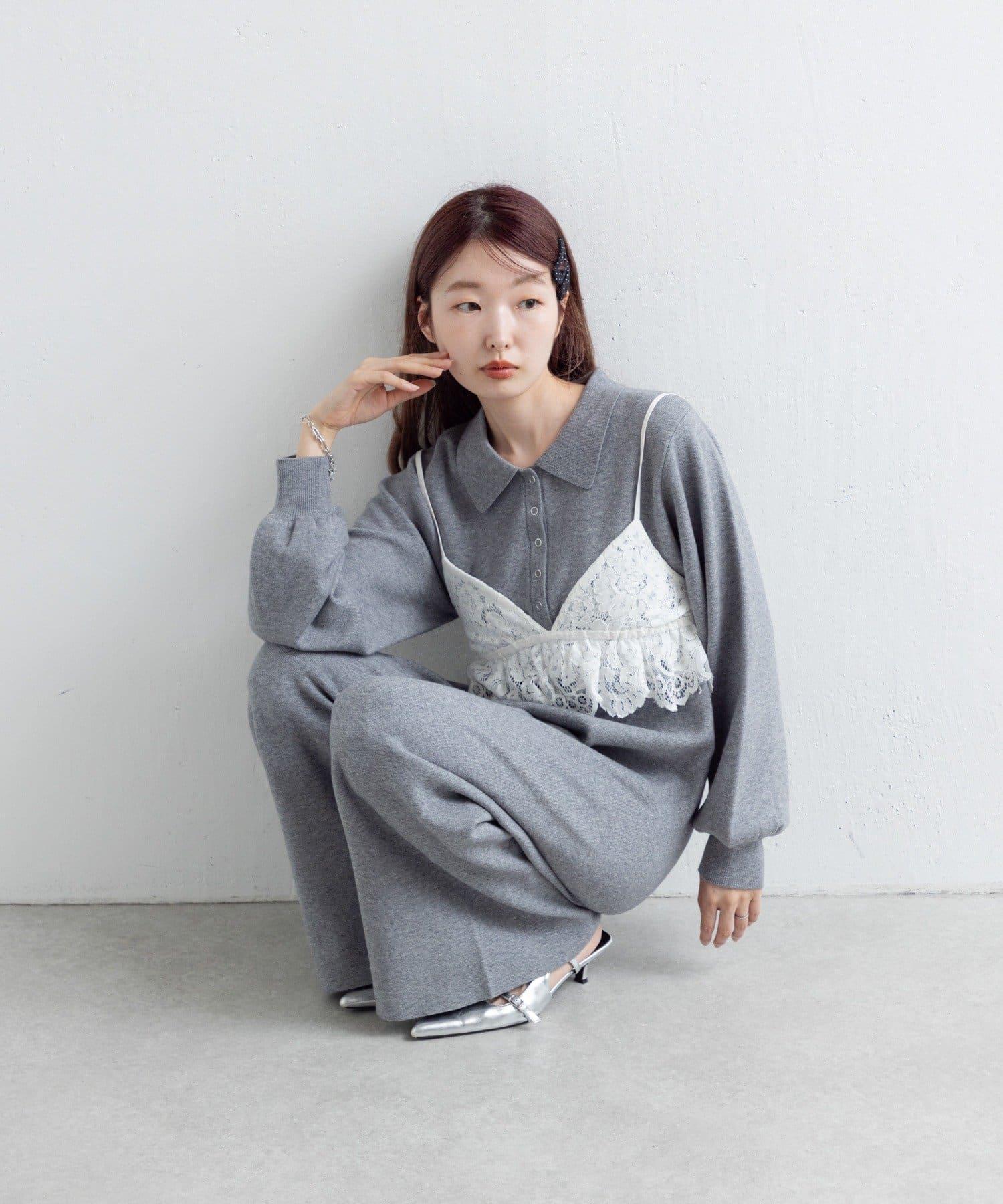 光滑的針織面料輕柔地貼合身體線條,營造出輕鬆而優雅的印象。