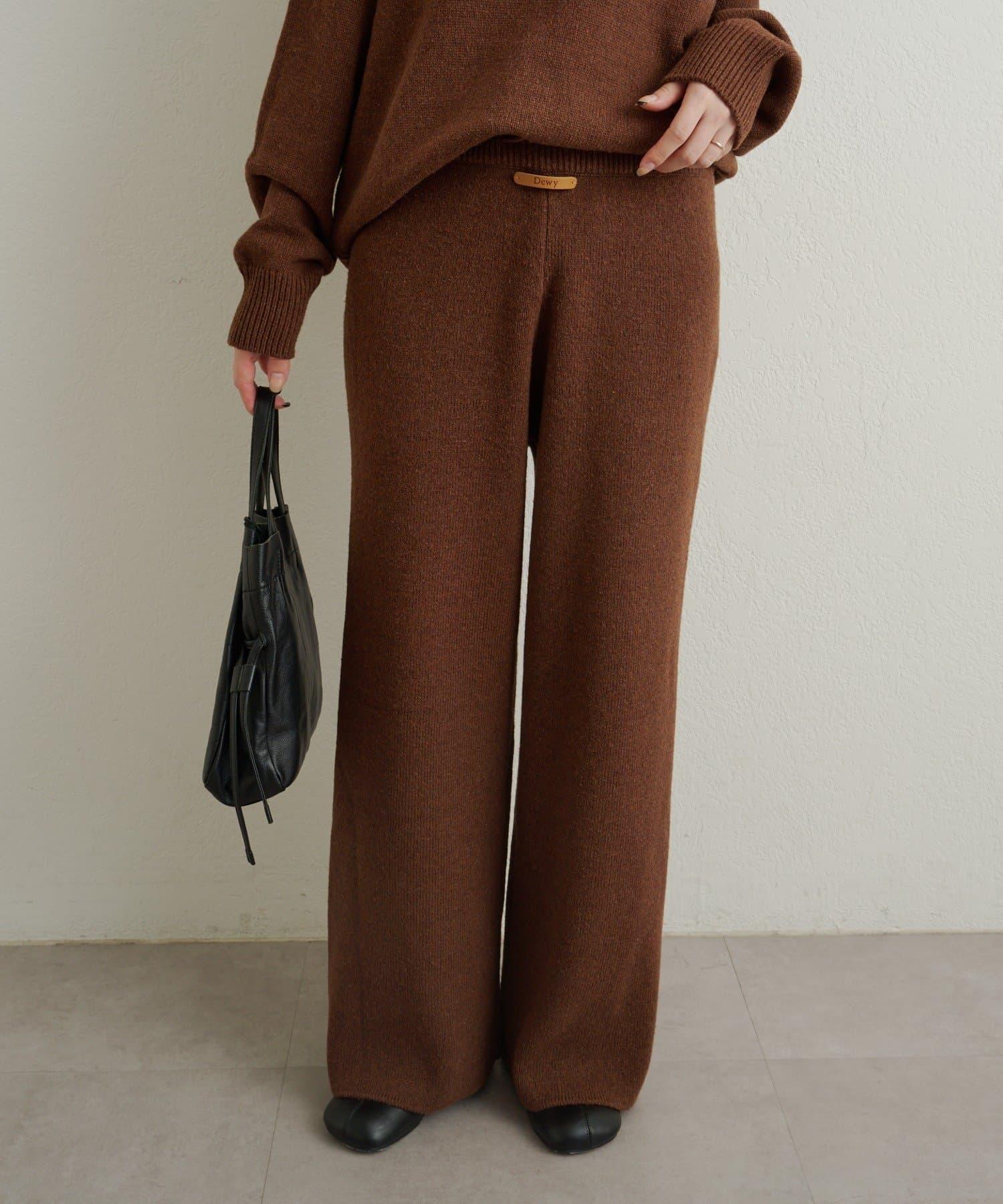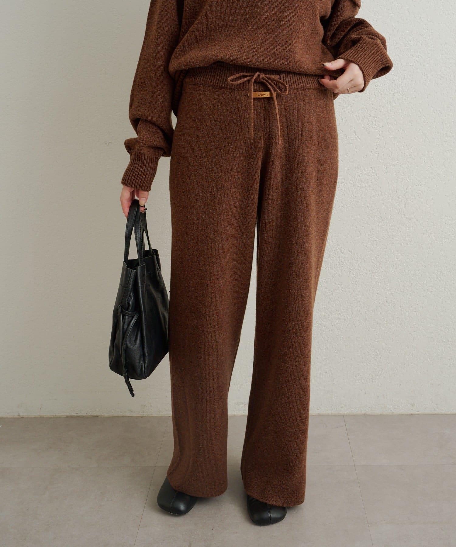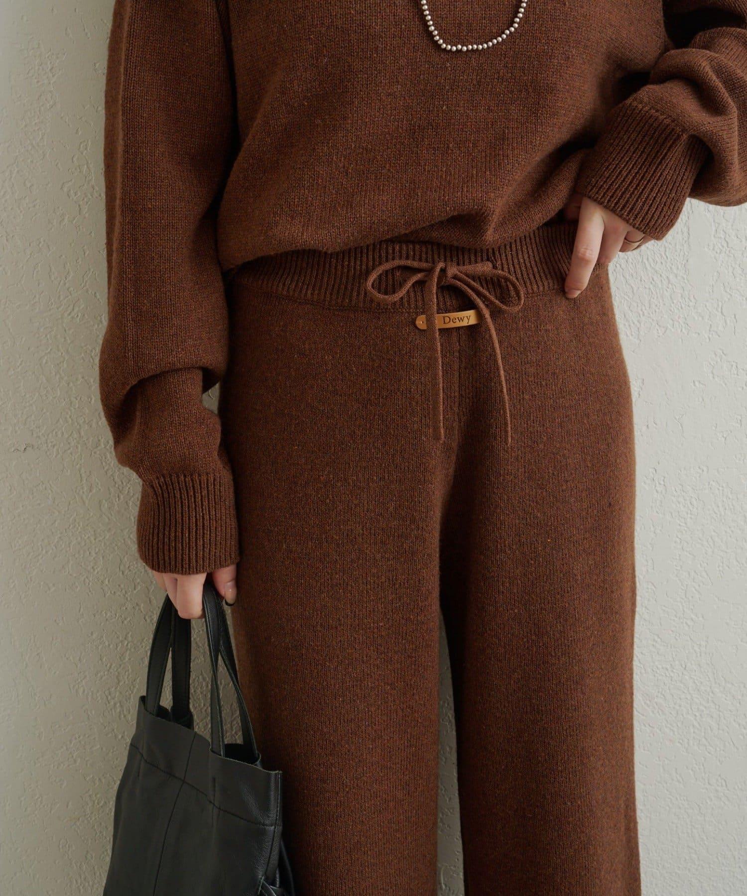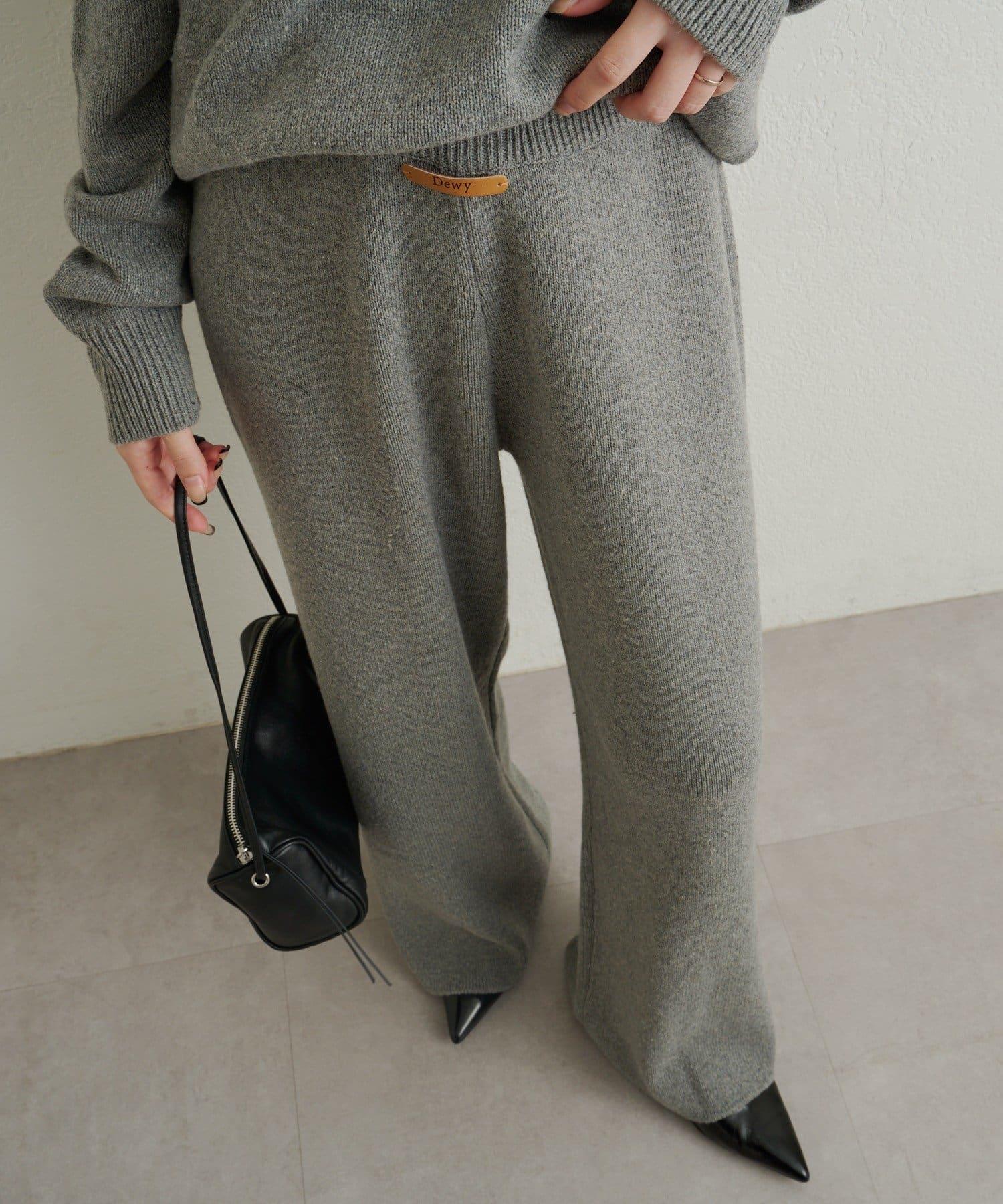 這款針織長褲以 "Dewy "吊牌作為點綴。