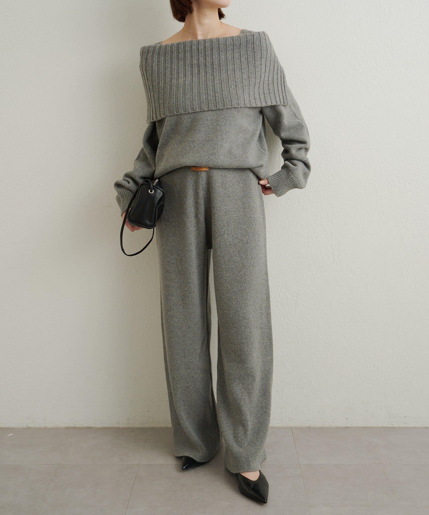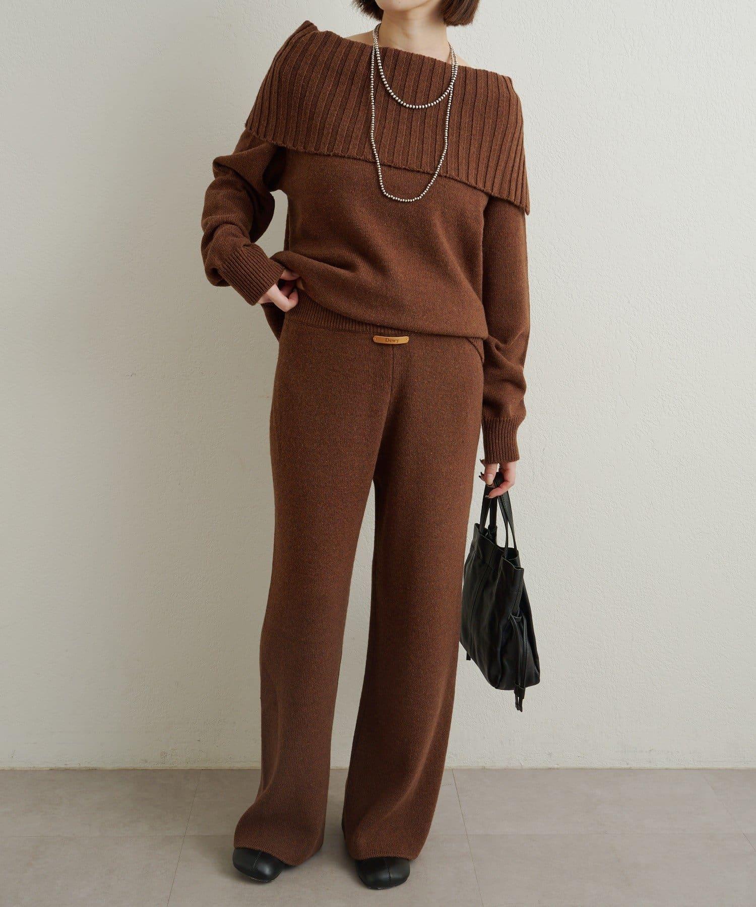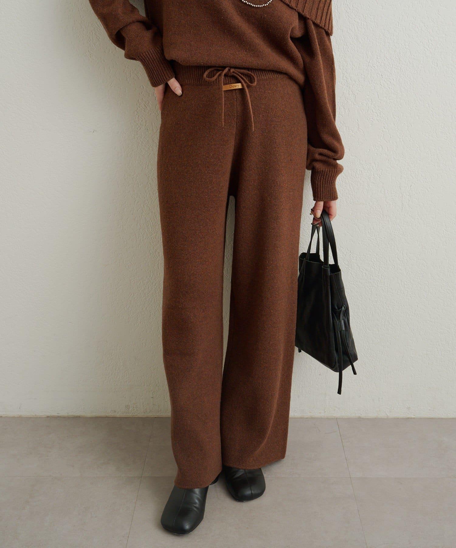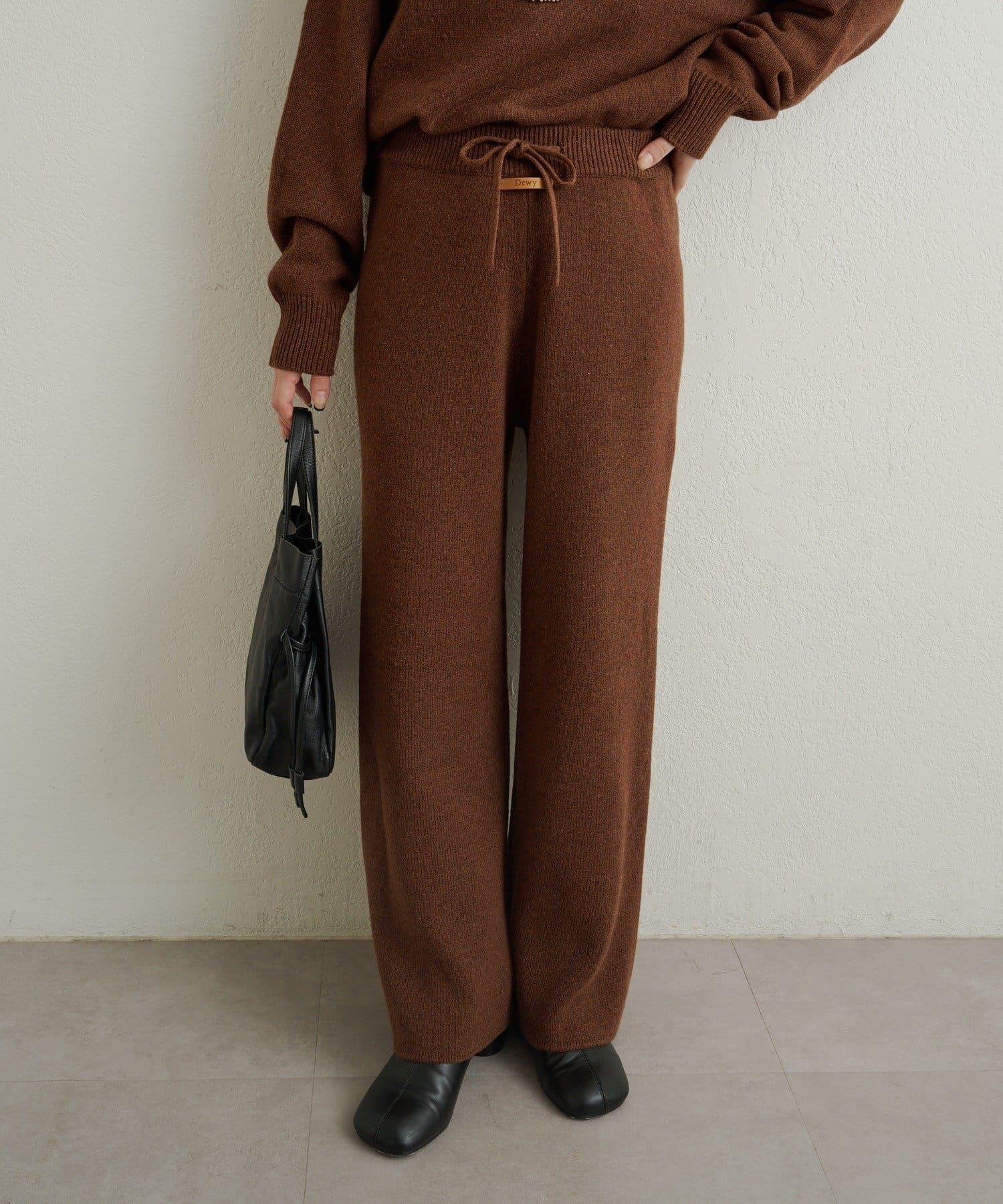 這款針織長褲以 "Dewy "吊牌作為點綴。