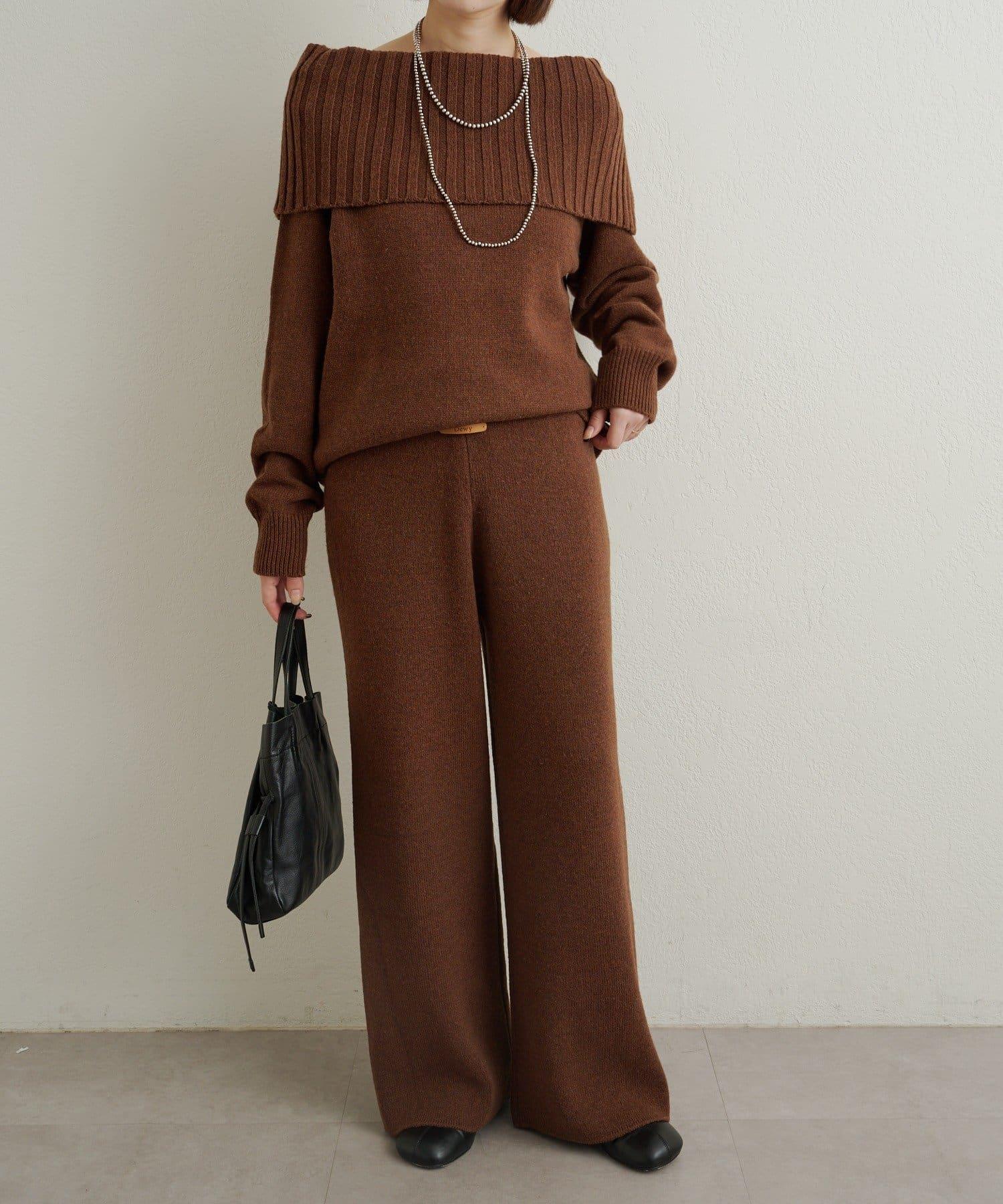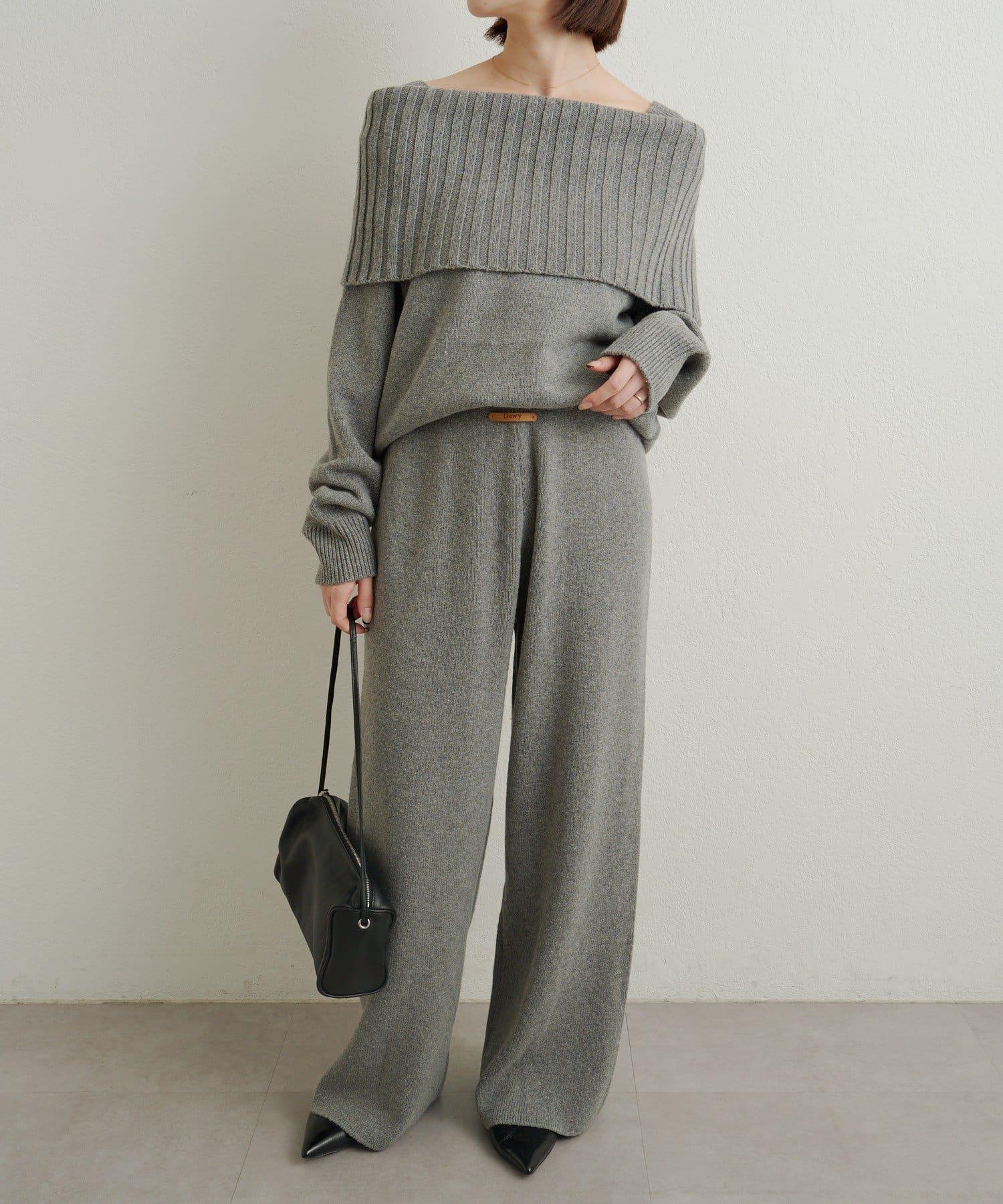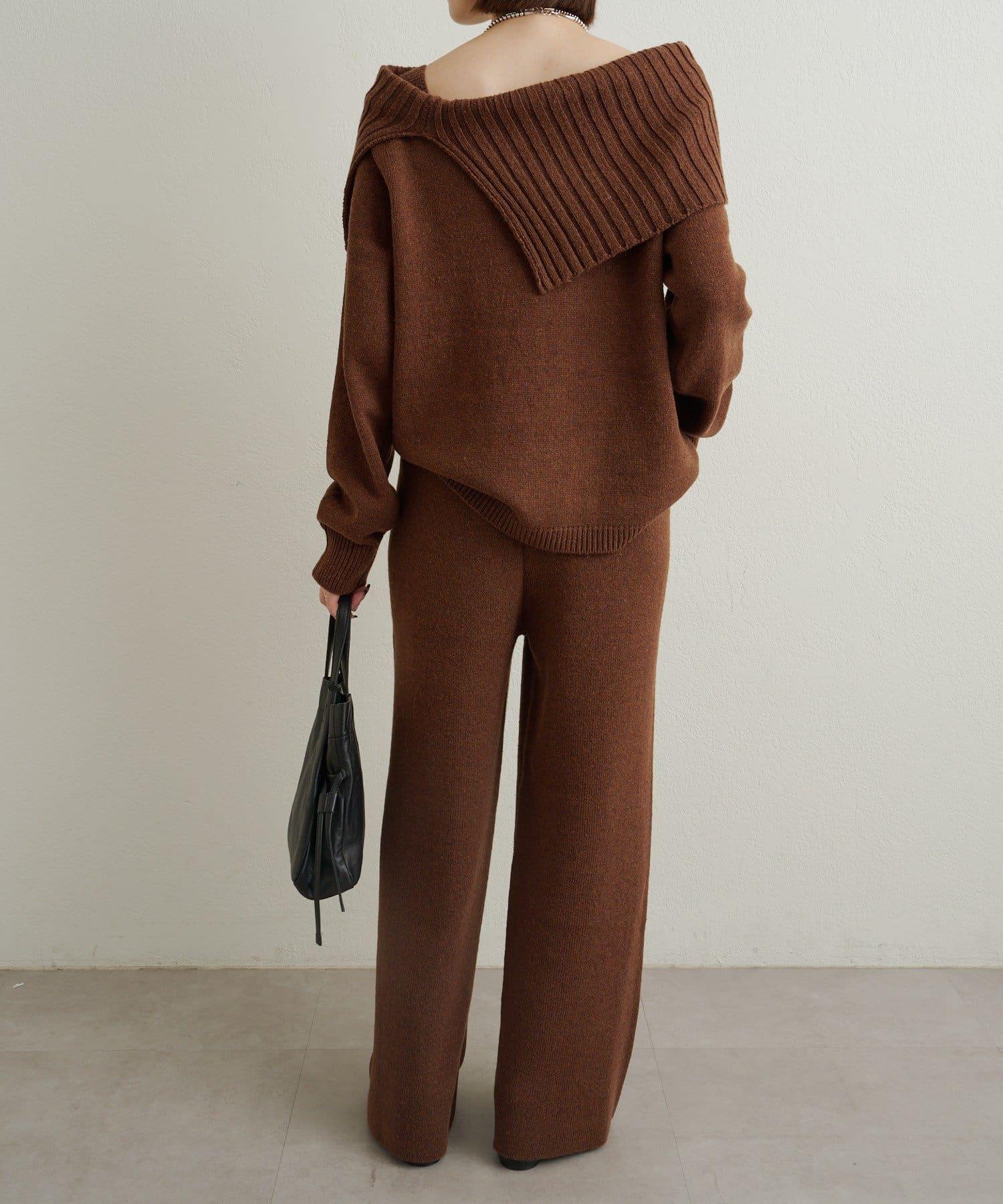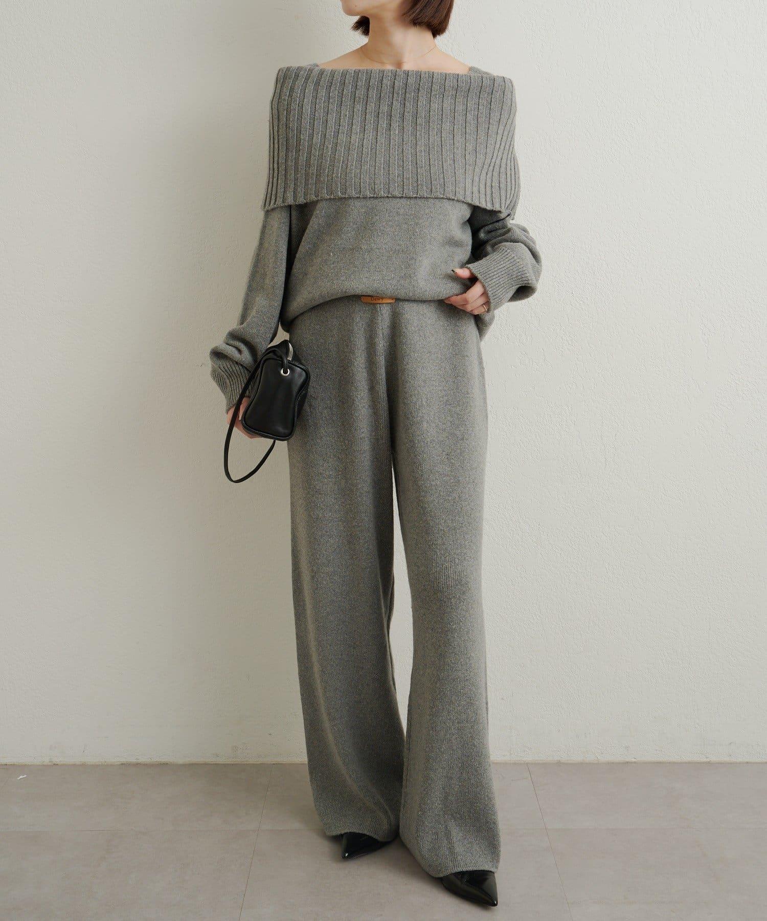 這款針織長褲以 "Dewy "吊牌作為點綴。