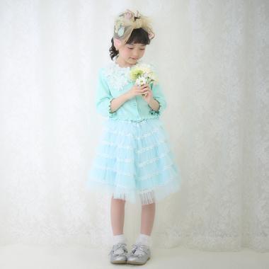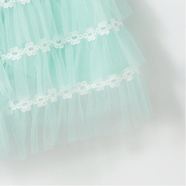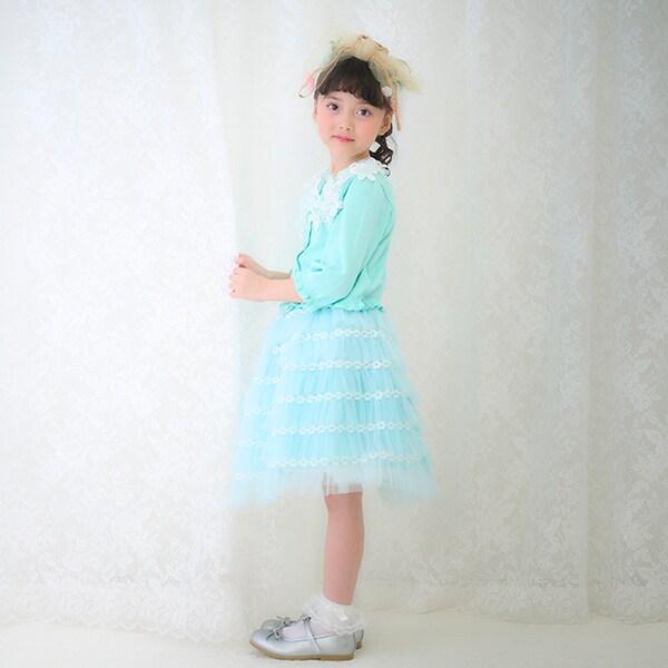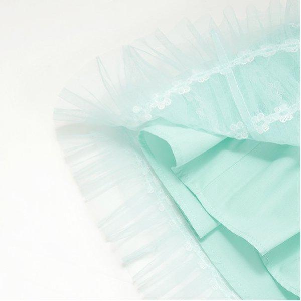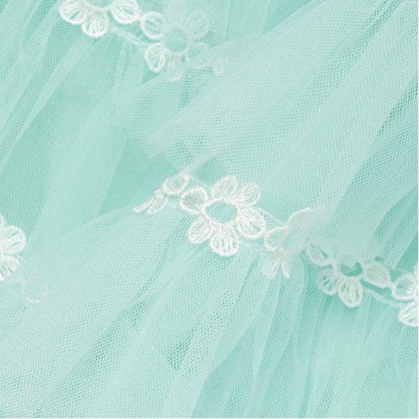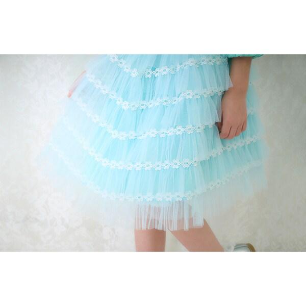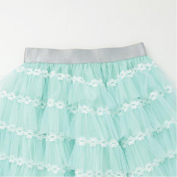 裙子的輪廓是可愛的不規則薄紗,配有銀色鬆緊腰帶。