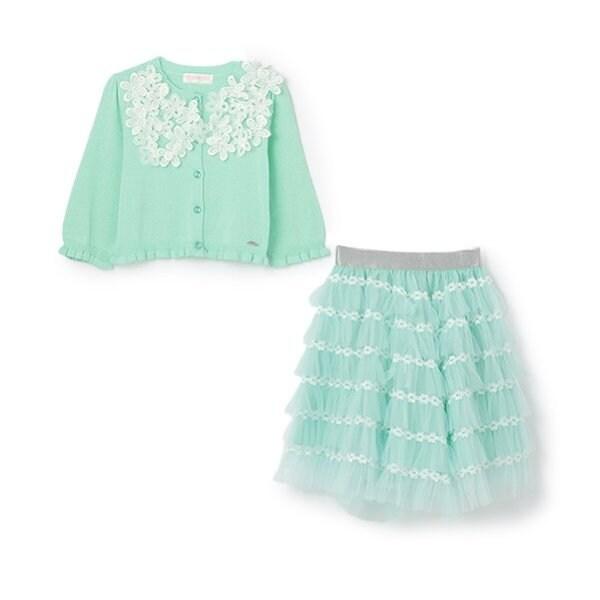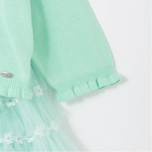 荷葉邊過渡處鑲有小雛菊花邊,為開衫增添了微妙的圖案。