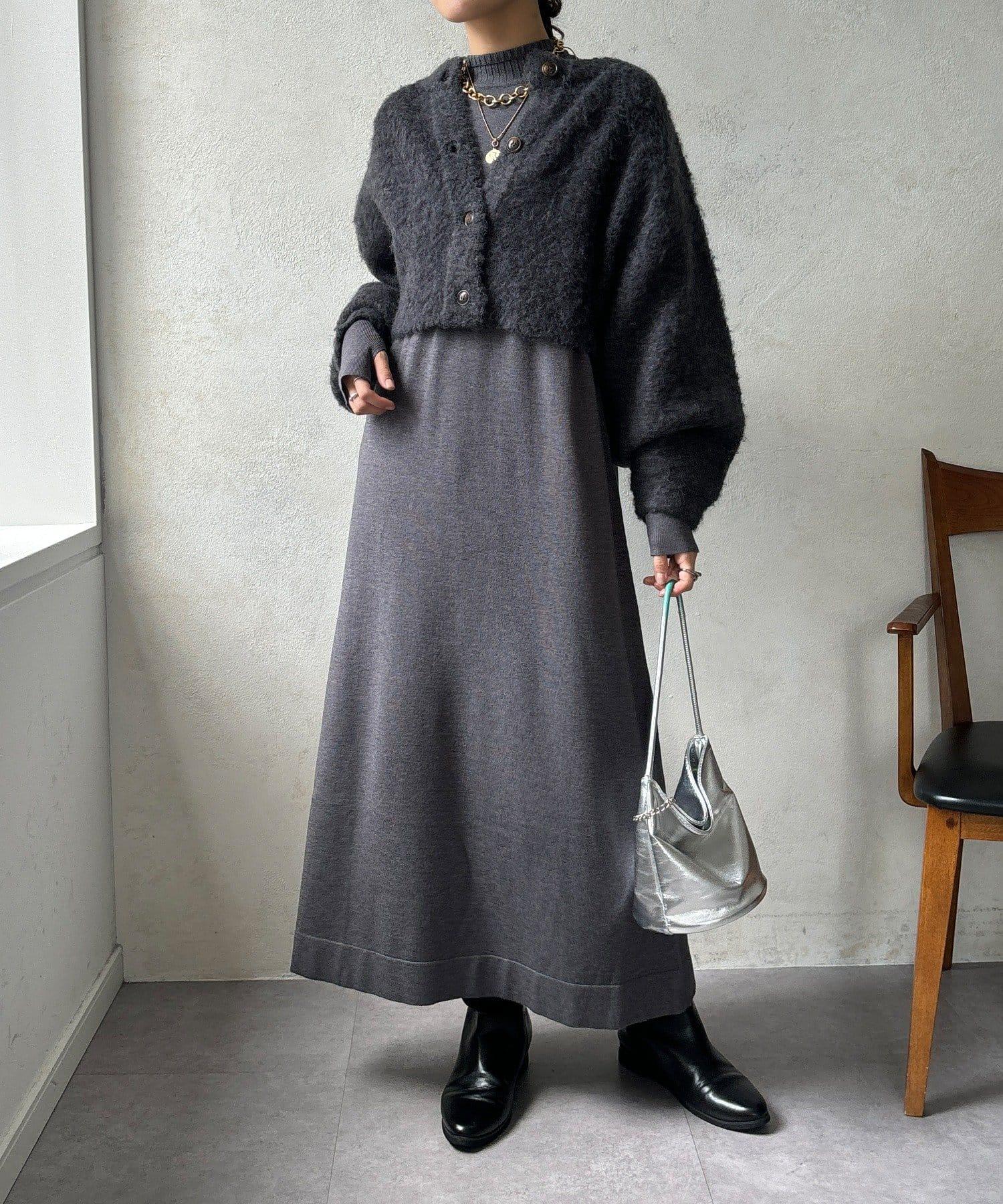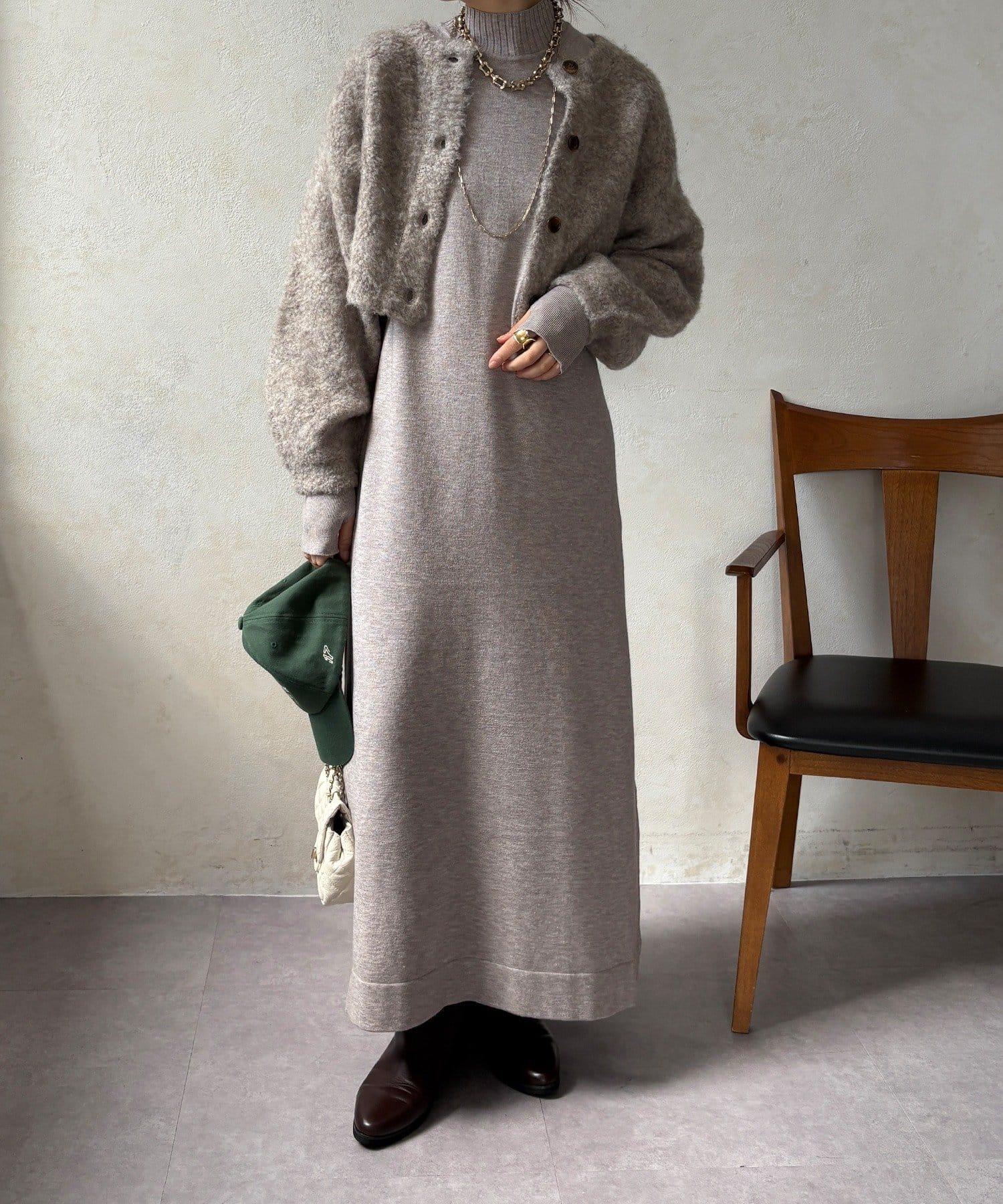 2件套]針織開衫&針織連衣裙|可隨意搭配的百搭套裝。
