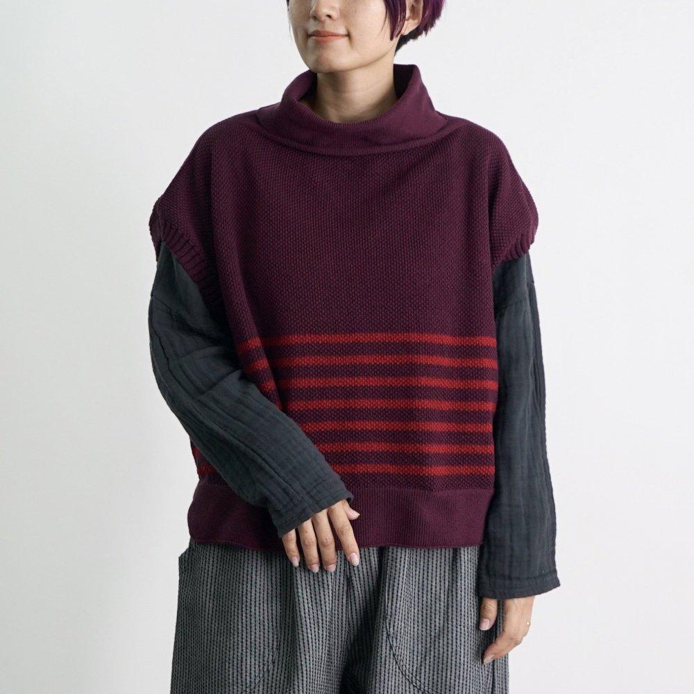 針織馬甲/酒紅色/三河產針織/MOTTAiiNA