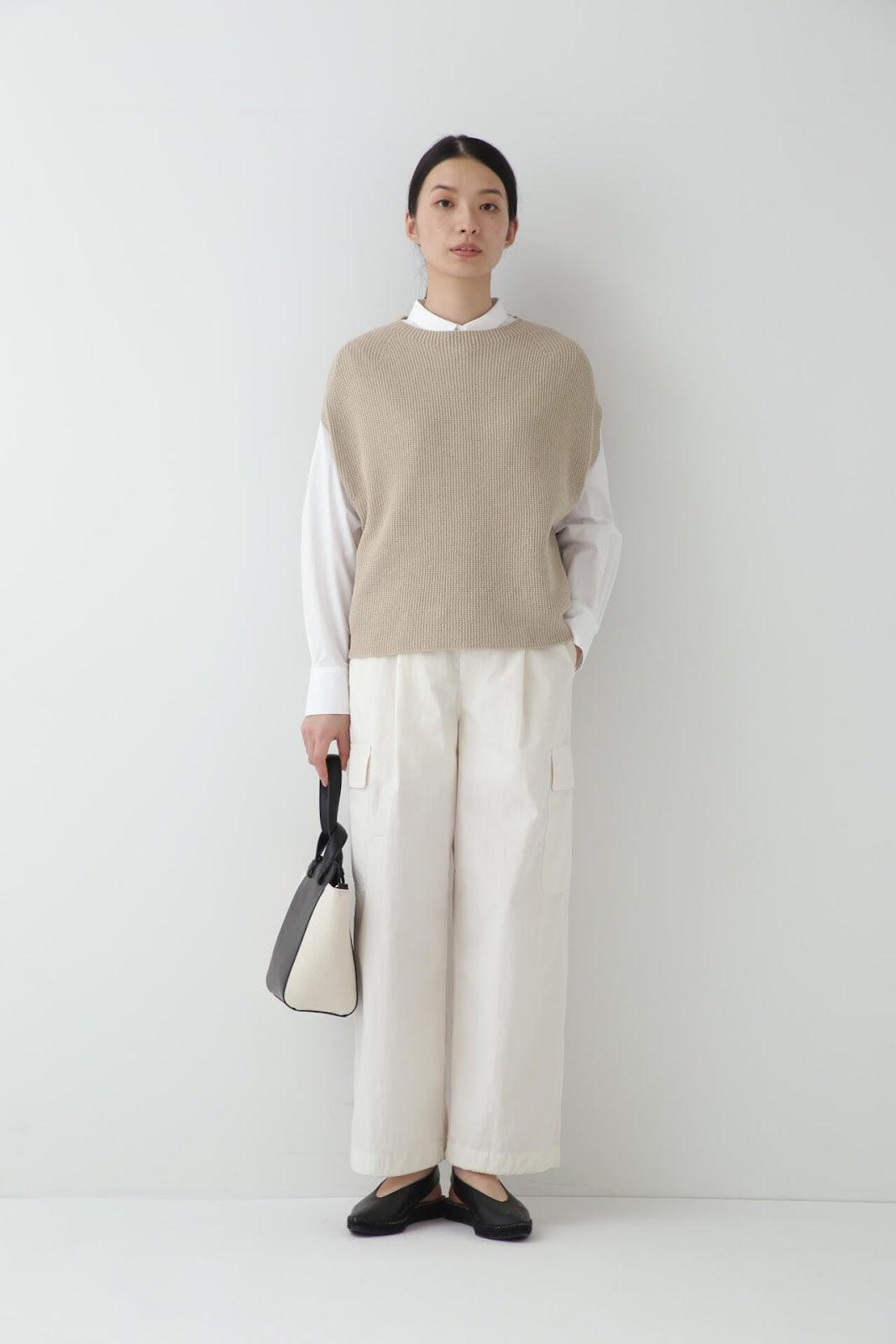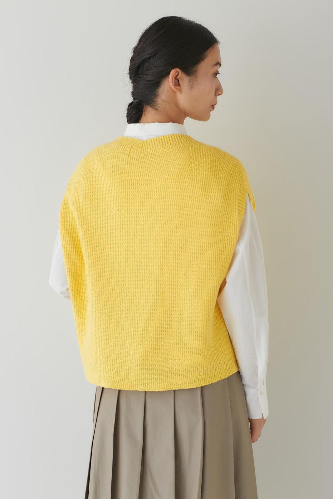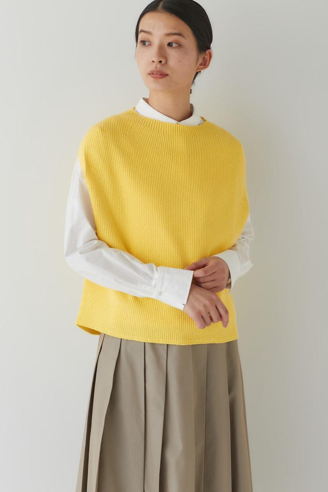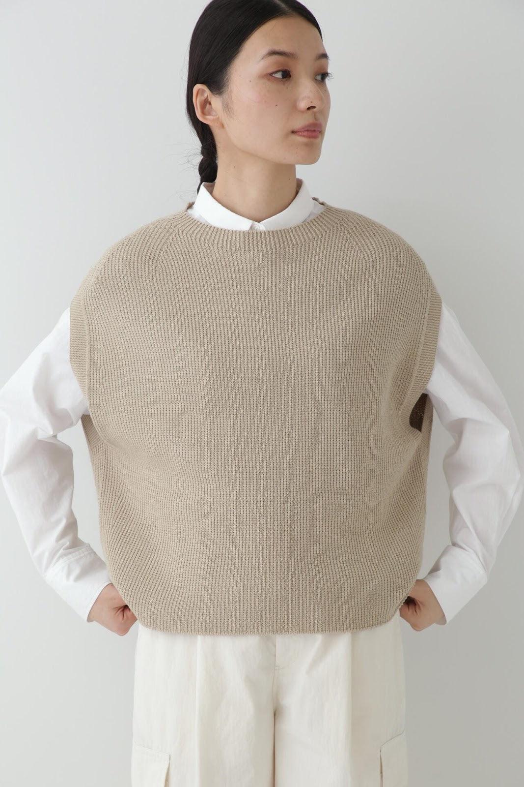 多層次款式的必備單品!圓領馬甲 [設計要點] 採用 7G 全成型面料編織的無壓力圓領馬甲。針織面料輪廓簡潔,輕柔地環繞肩部,變形羅紋具有垂直紋理的外觀特徵。這款針織面料採用百合紗線編織而成,經過加工使面料更加豐滿,因此質地輕盈。推薦搭配:推薦襯衫與 T 恤的搭配,以及與連身裙的層次搭配。這是一款能讓您享受豐富變化的多層次風格的服裝。