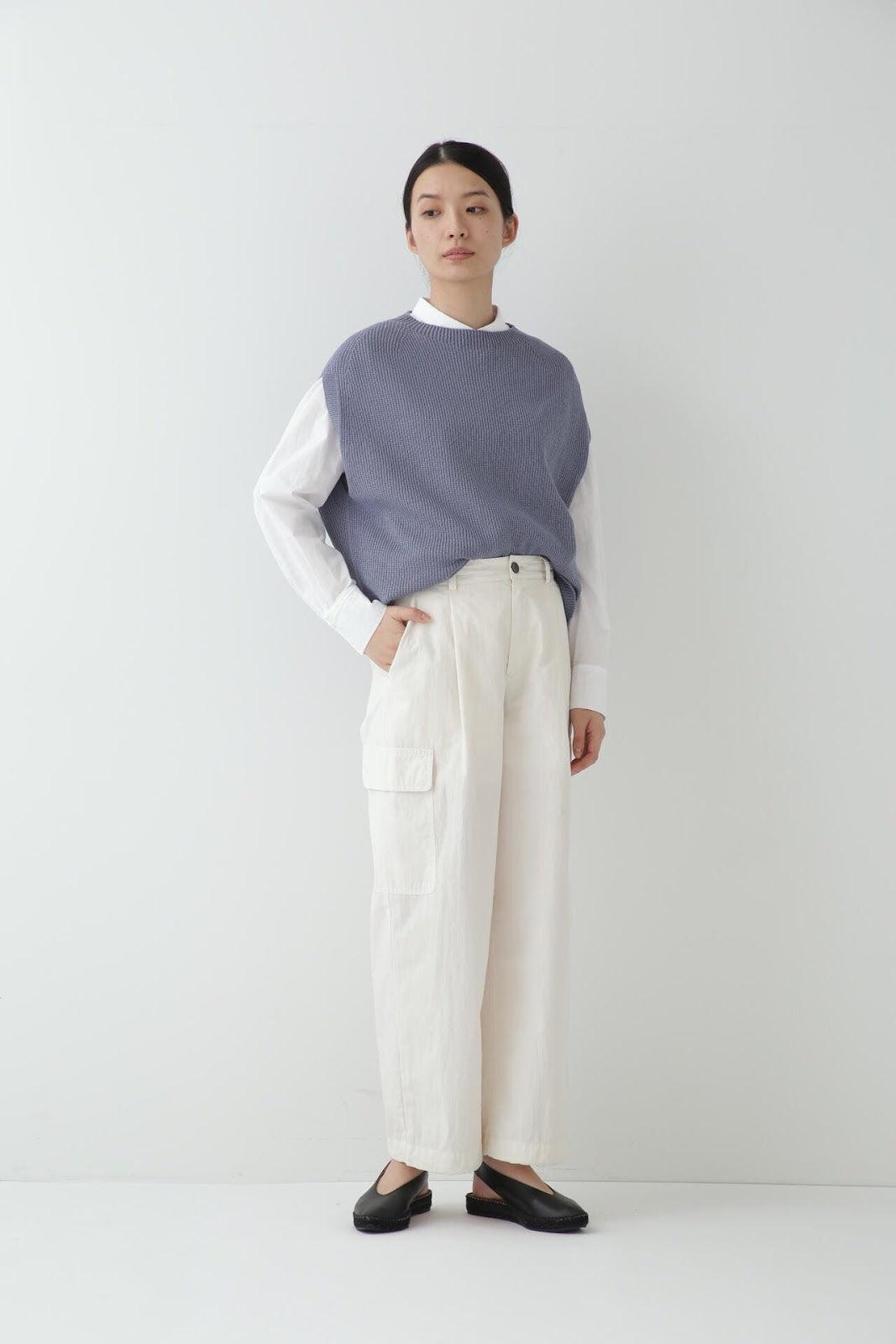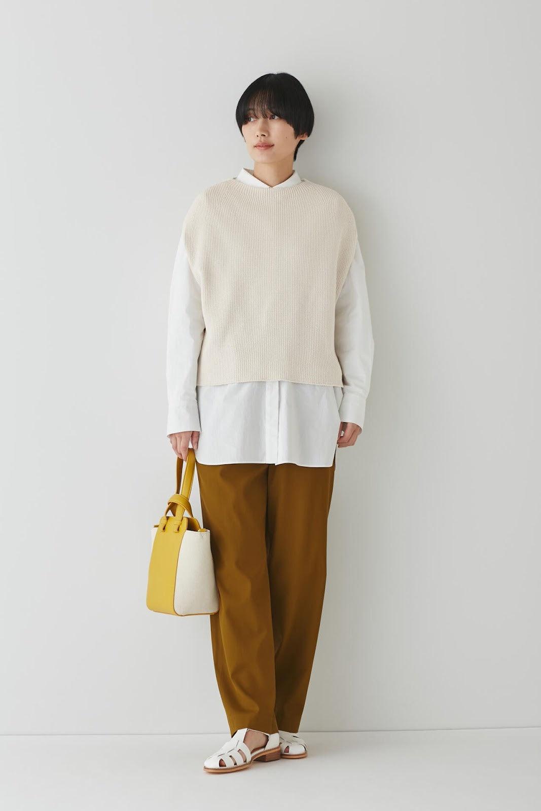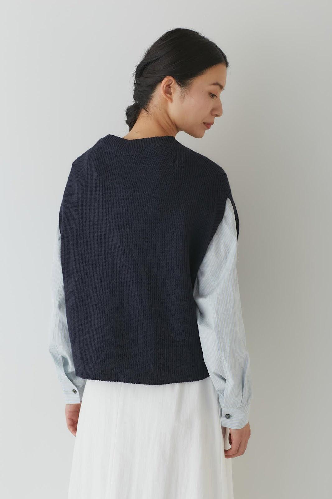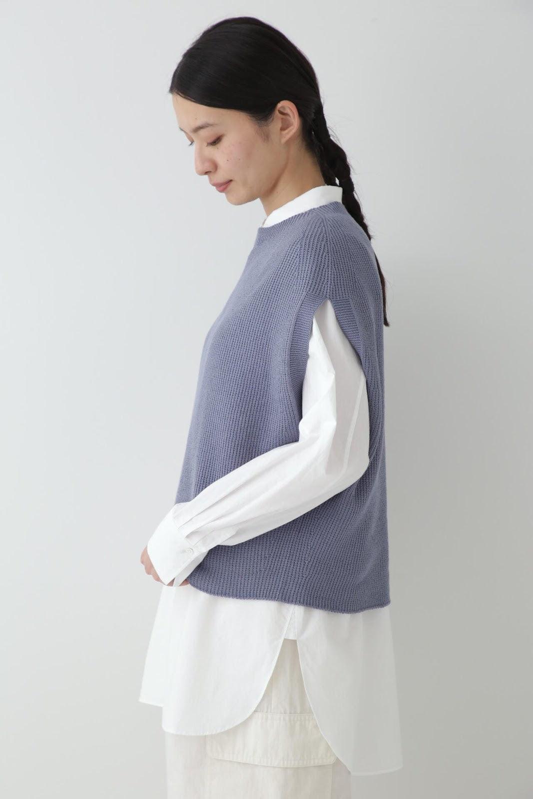 多層次款式的必備單品!圓領馬甲 [設計要點] 採用 7G 全成型面料編織的無壓力圓領馬甲。針織面料輪廓簡潔,輕柔地環繞肩部,變形羅紋具有垂直紋理的外觀特徵。這款針織面料採用百合紗線編織而成,經過加工使面料更加豐滿,因此質地輕盈。推薦搭配:推薦襯衫與 T 恤的搭配,以及與連身裙的層次搭配。這是一款能讓您享受豐富變化的多層次風格的服裝。