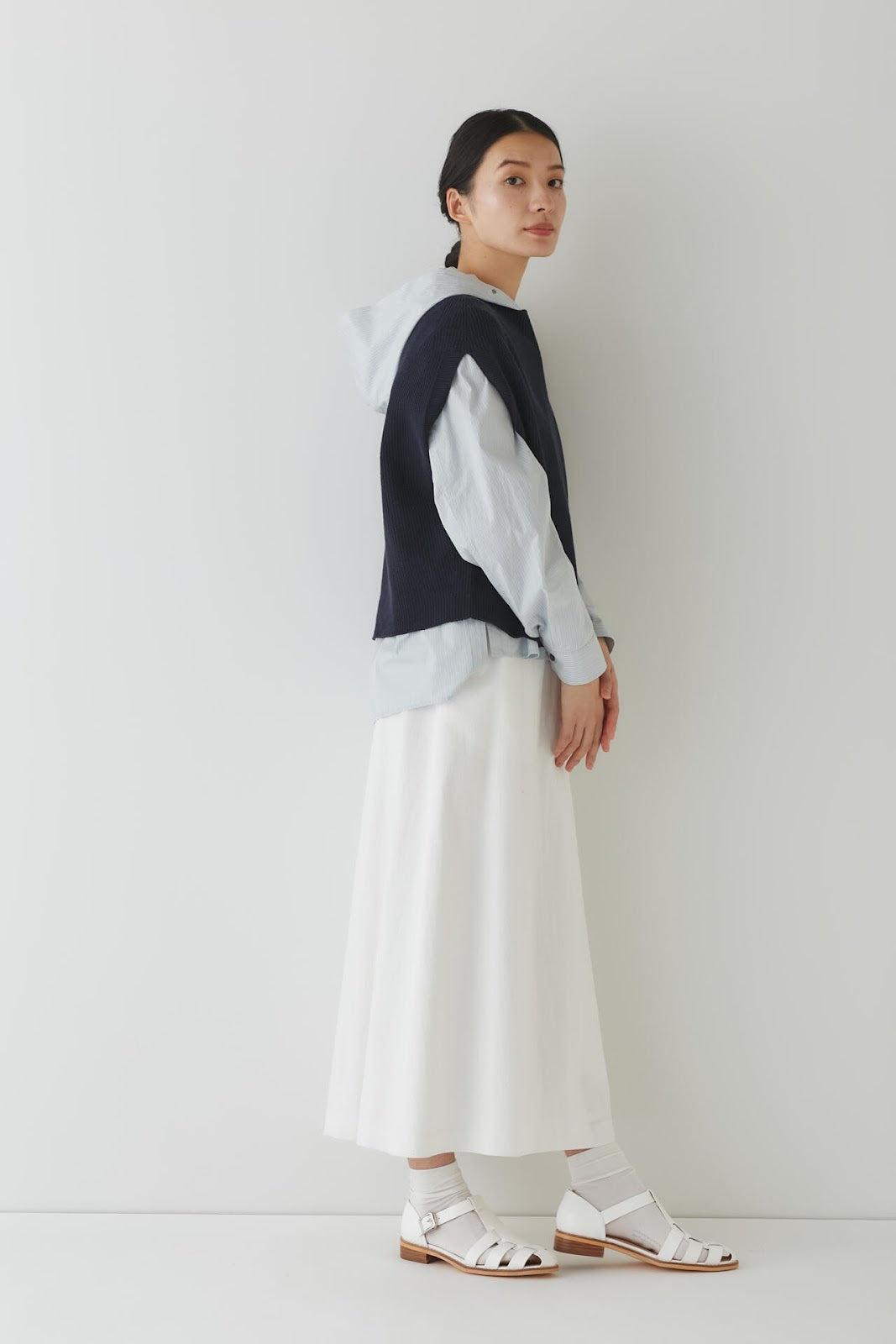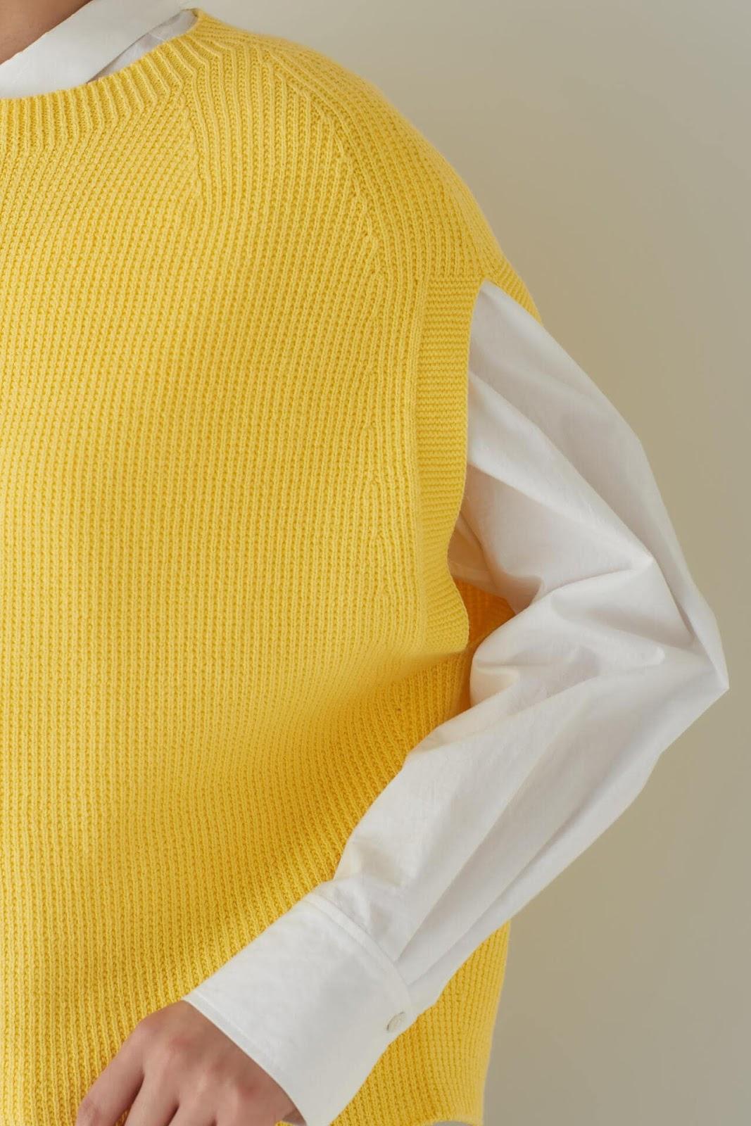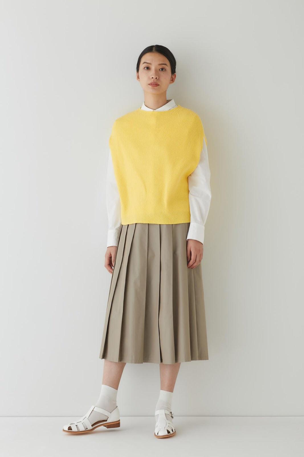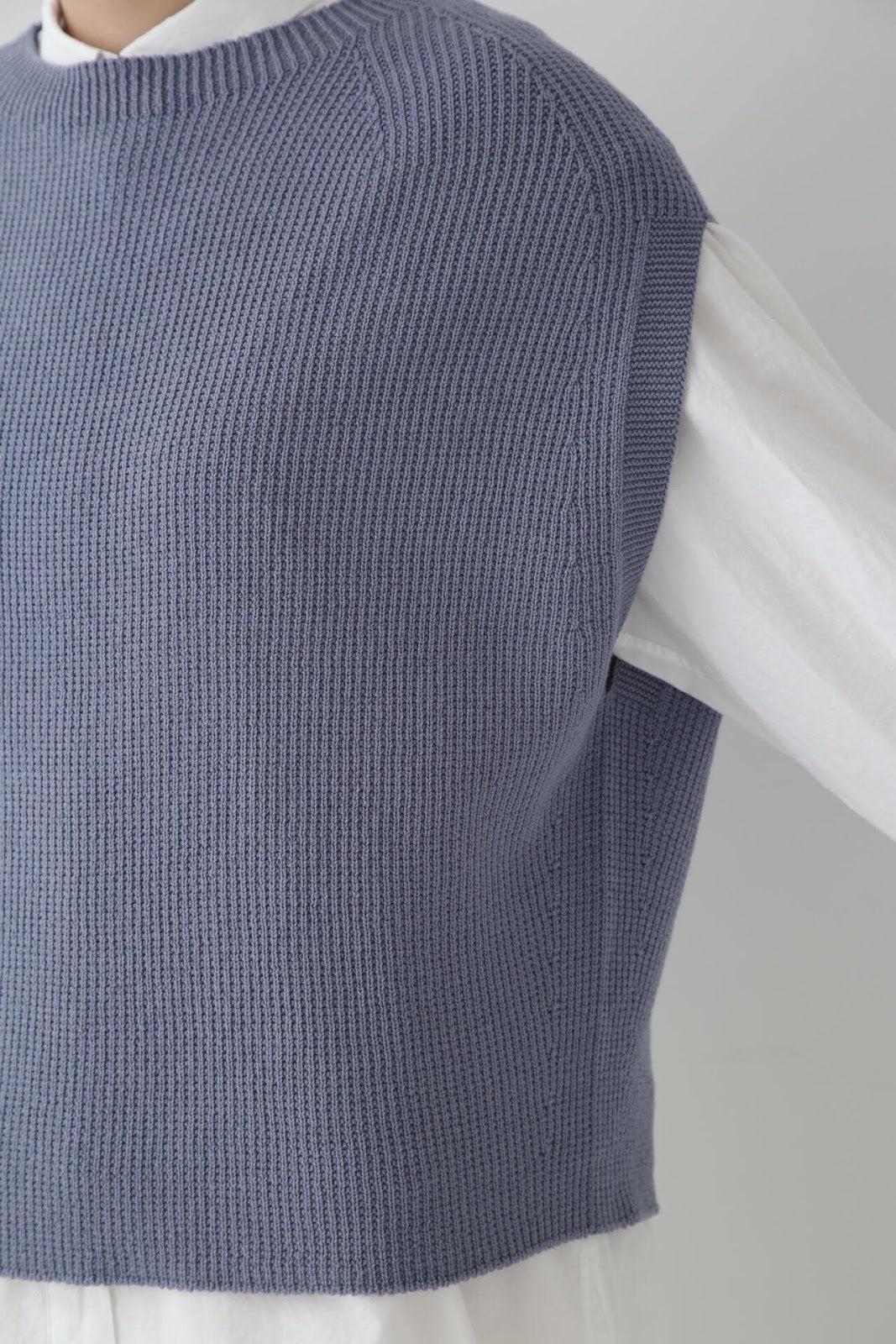 多層次款式的必備單品!圓領馬甲 [設計要點] 採用 7G 全成型面料編織的無壓力圓領馬甲。針織面料輪廓簡潔,輕柔地環繞肩部,變形羅紋具有垂直紋理的外觀特徵。這款針織面料採用百合紗線編織而成,經過加工使面料更加豐滿,因此質地輕盈。推薦搭配:推薦襯衫與 T 恤的搭配,以及與連身裙的層次搭配。這是一款能讓您享受豐富變化的多層次風格的服裝。