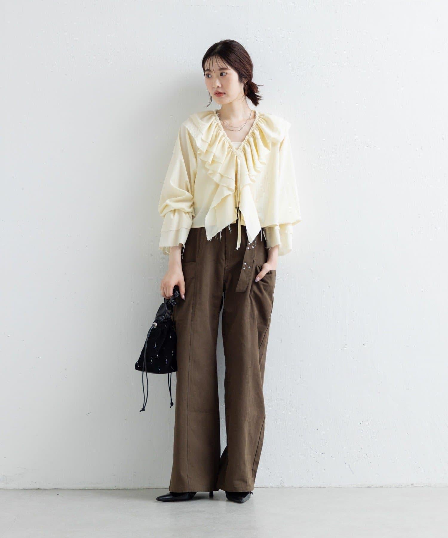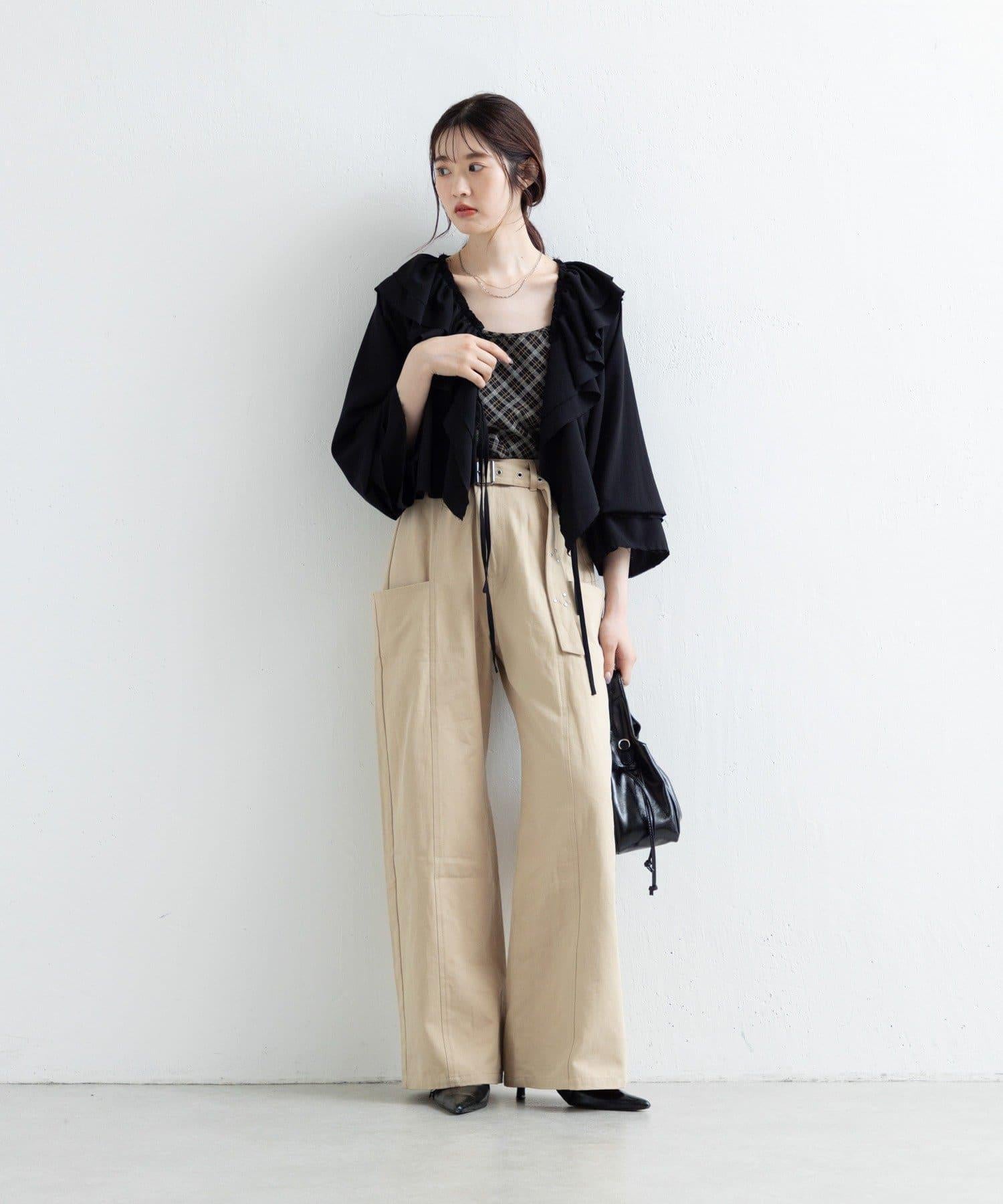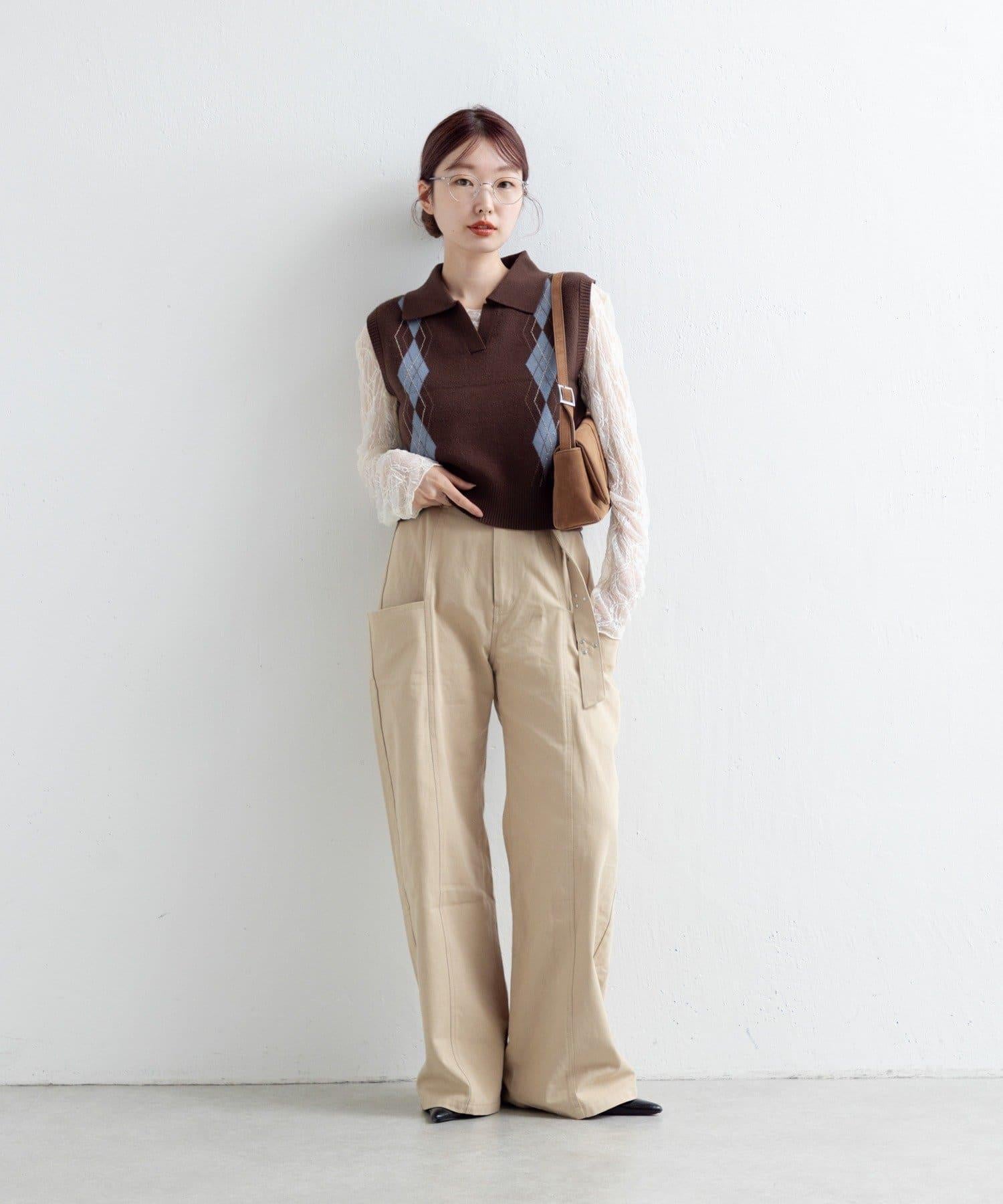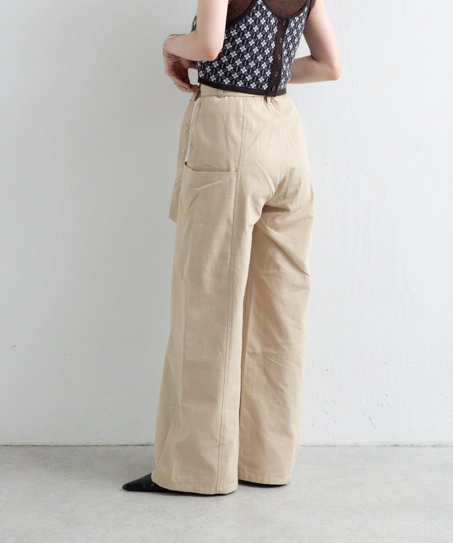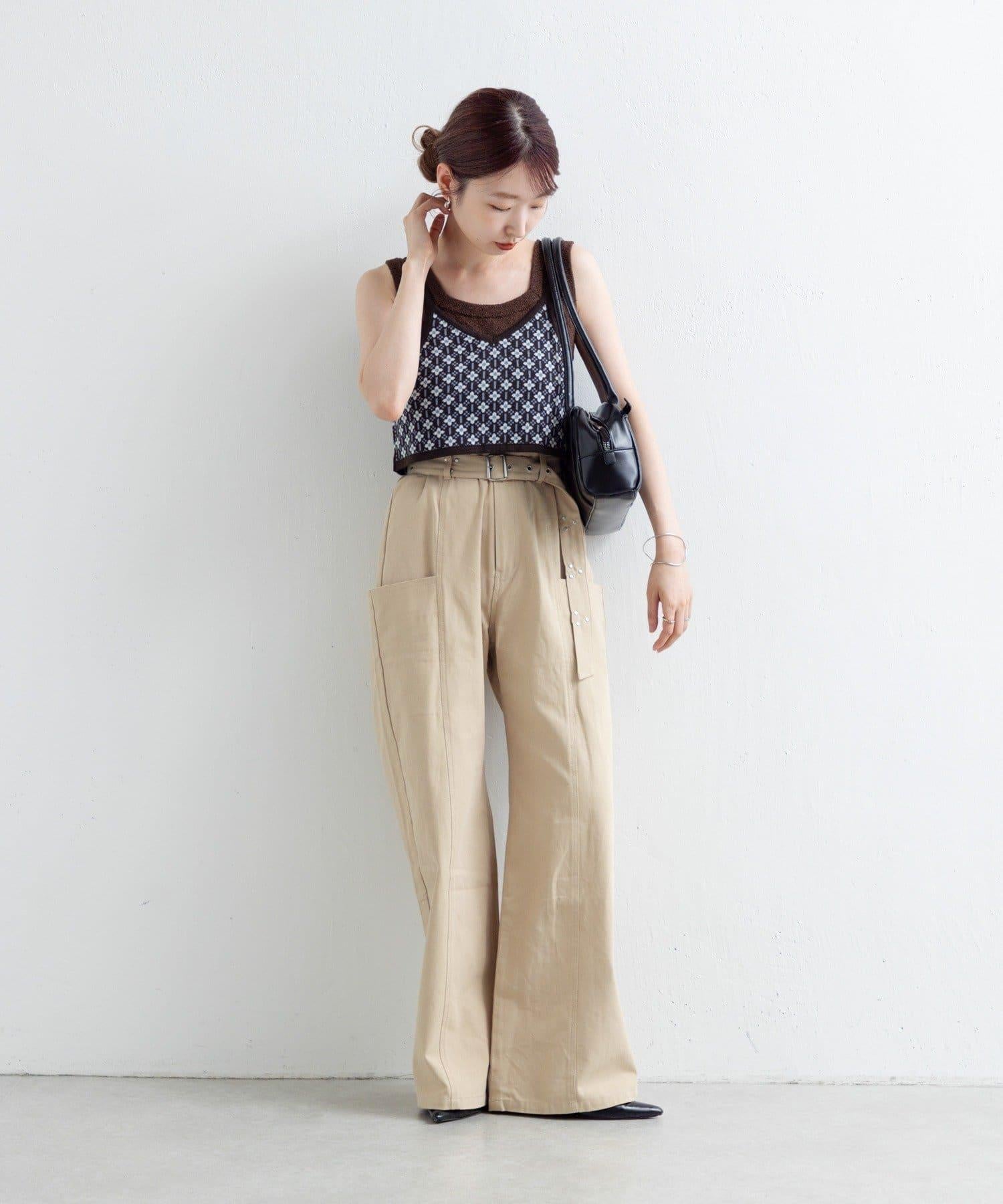 帶有細微鉚釘的長褲,盡顯成熟氣質。