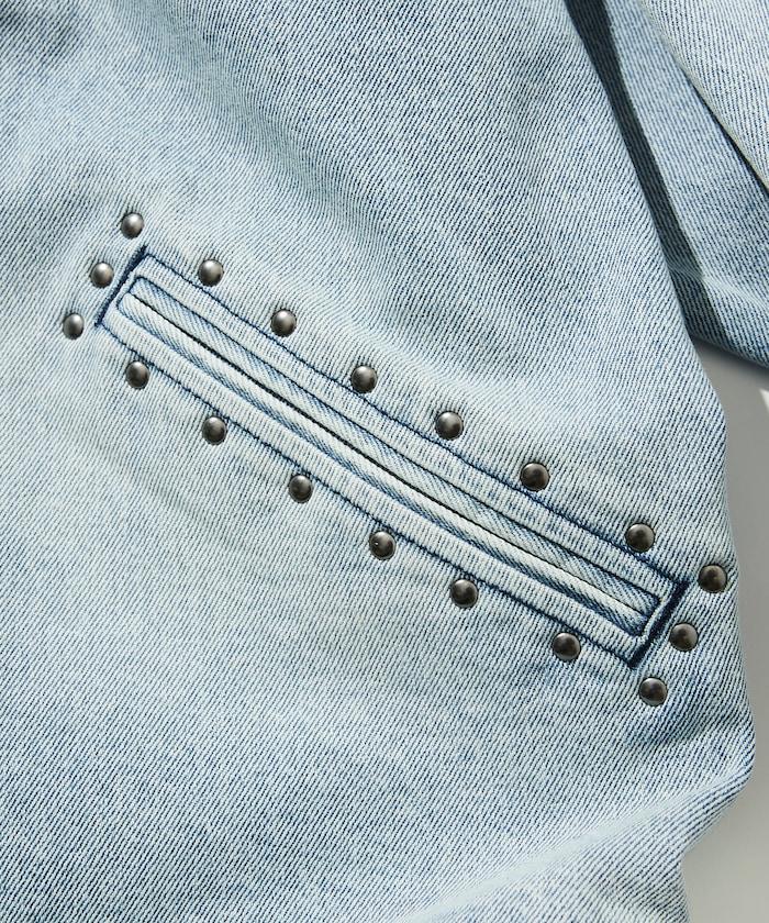 2025 春夏季單品 仿古牛仔布短夾克,加工感十足 鑲釘牛仔布短夾克