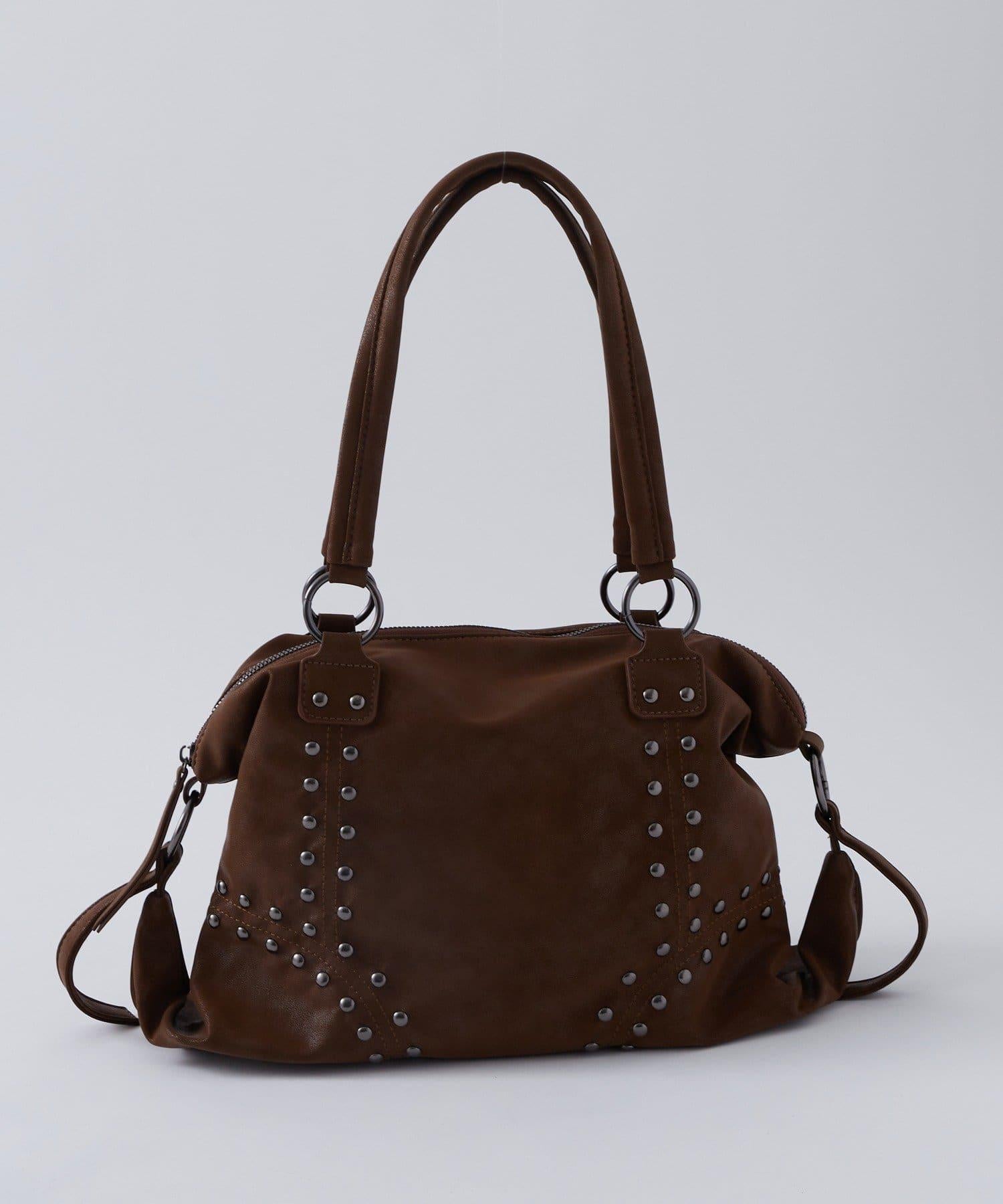 仿皮與鉚釘的結合為這款單肩包增添了幾分酷感。
