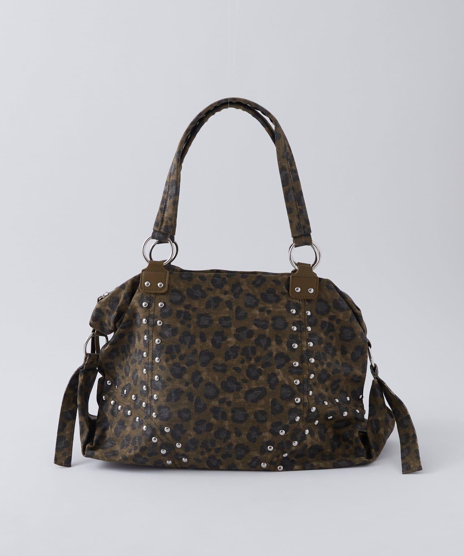 鉚釘的微妙光澤為豹紋圖案增添了一絲酷感。