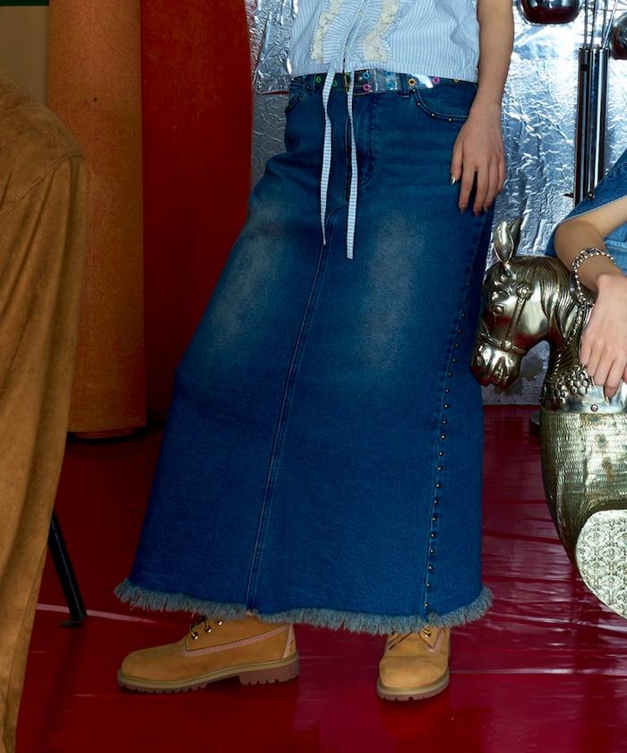 鉚釘牛仔人魚裙