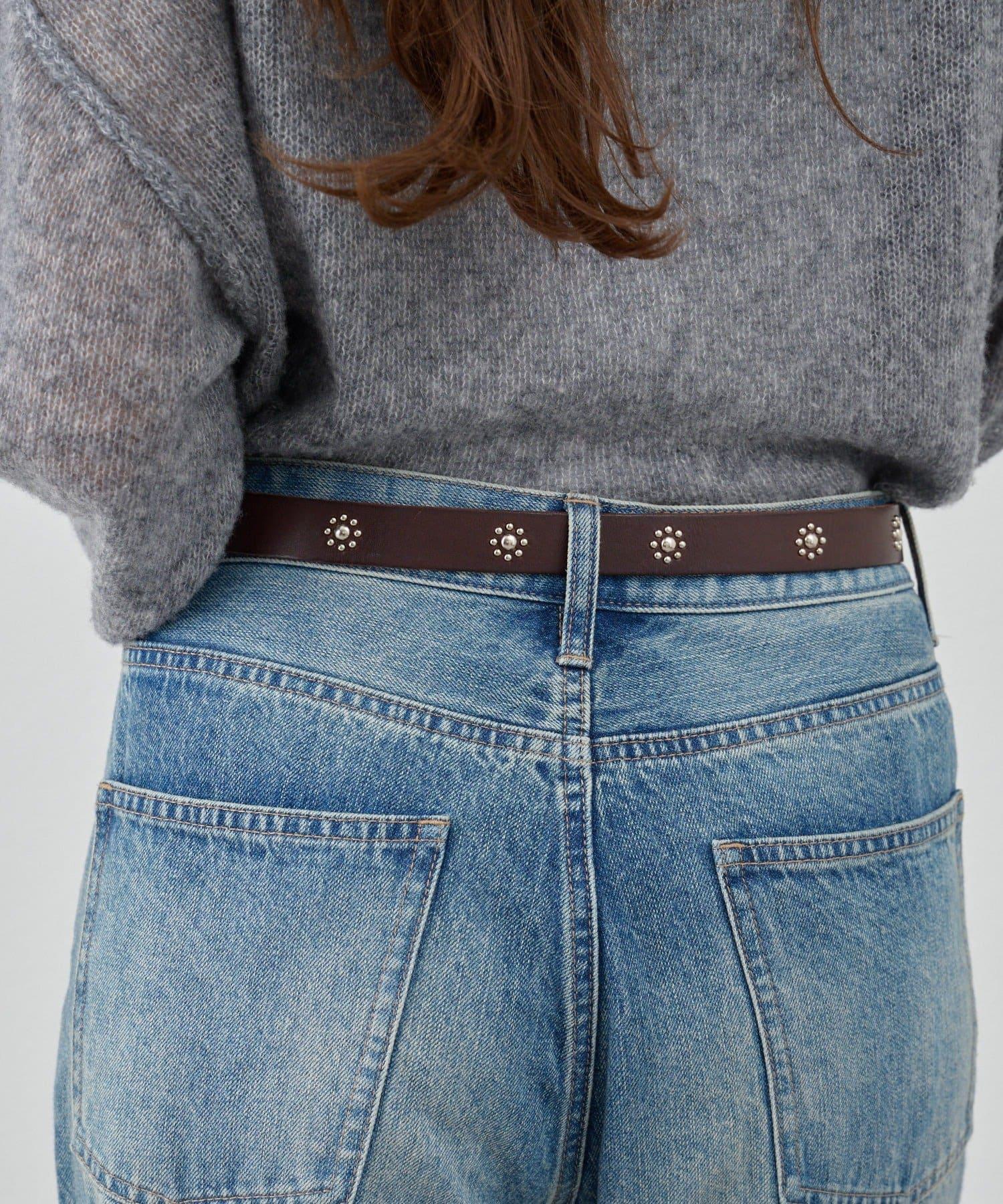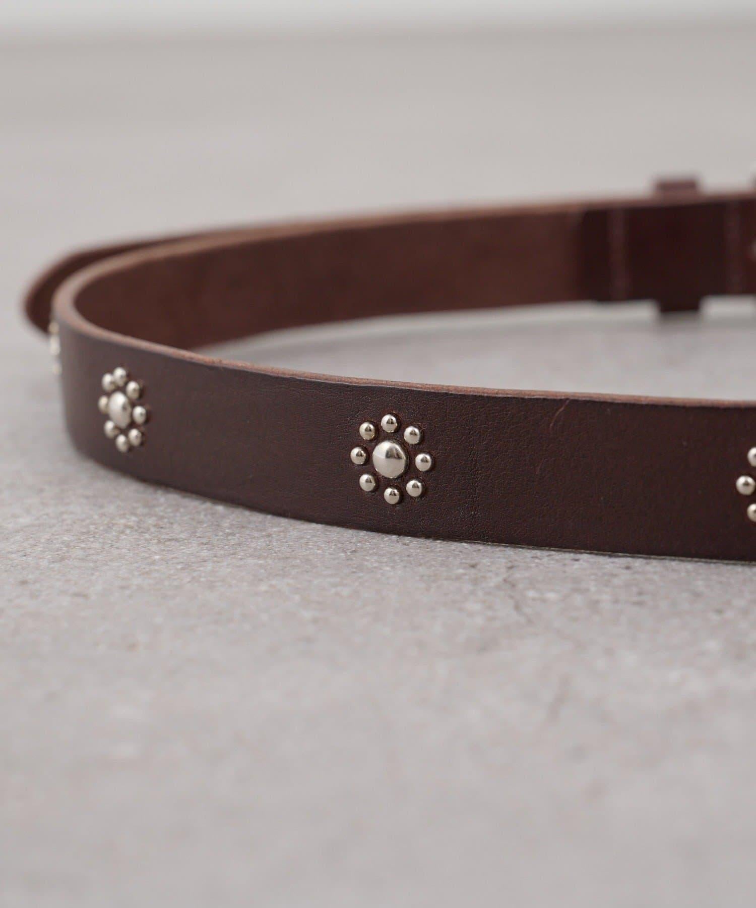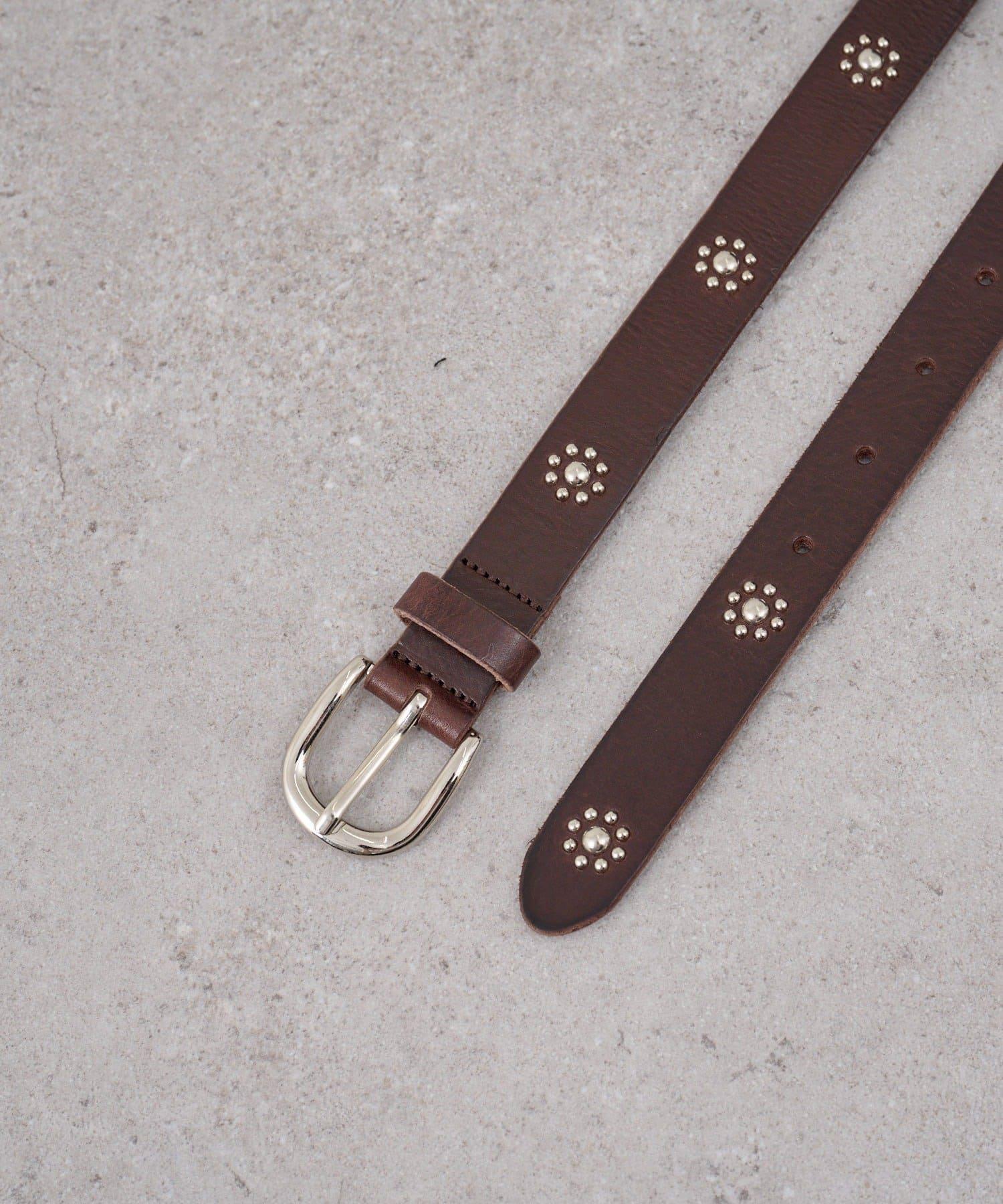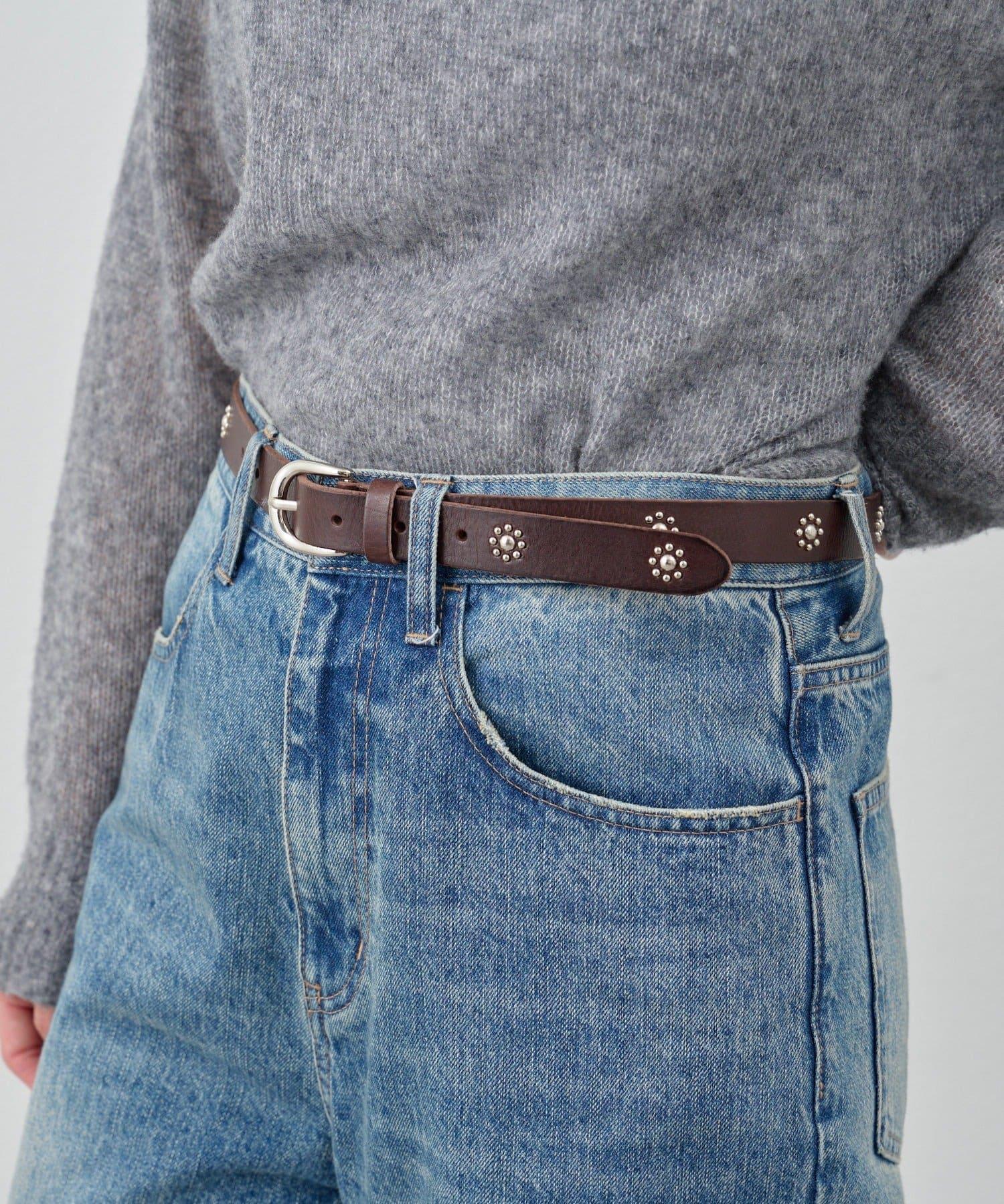 這款皮帶採用鉚釘皮革材質,是您的搭配明星。