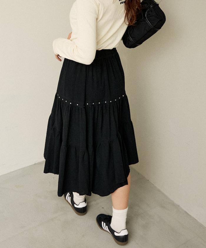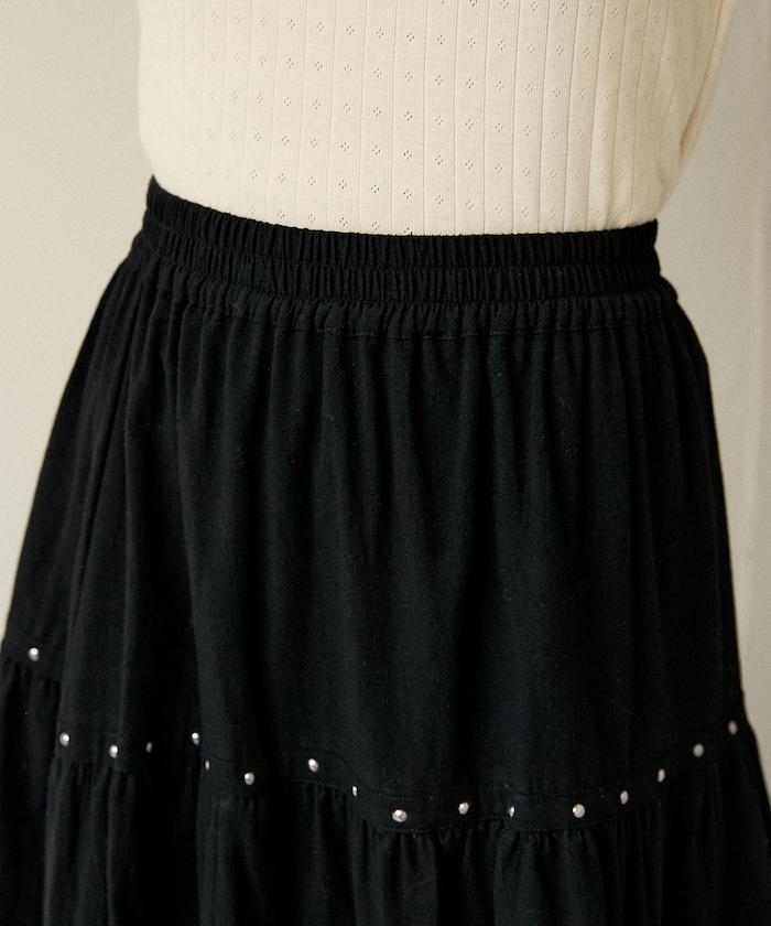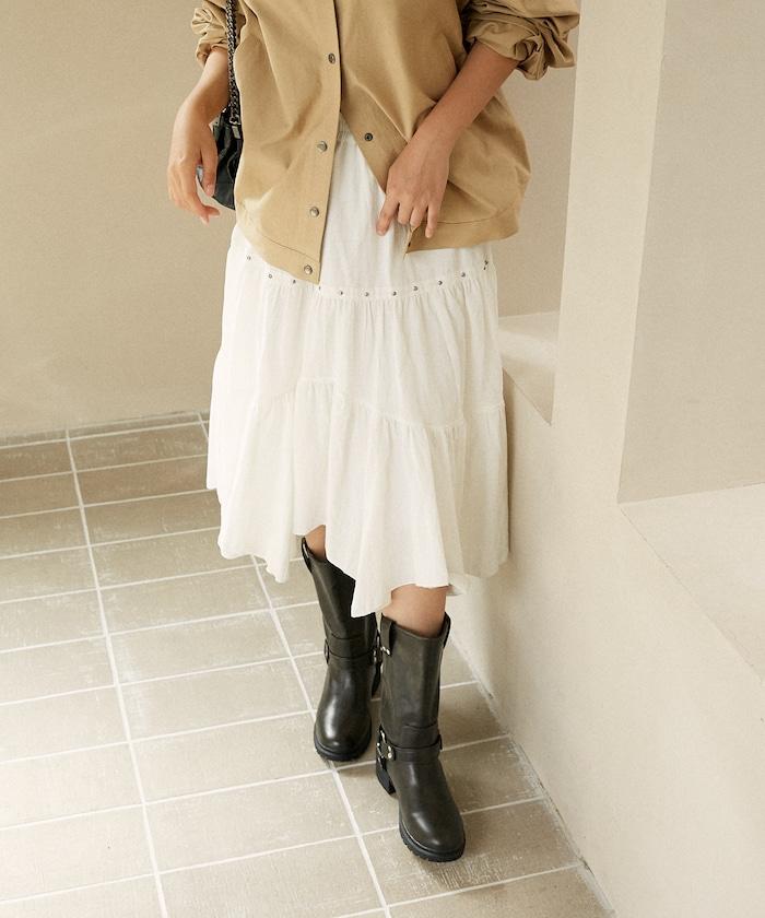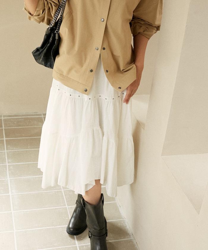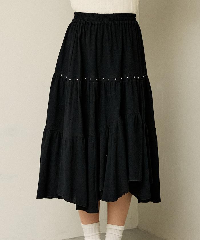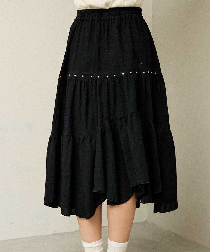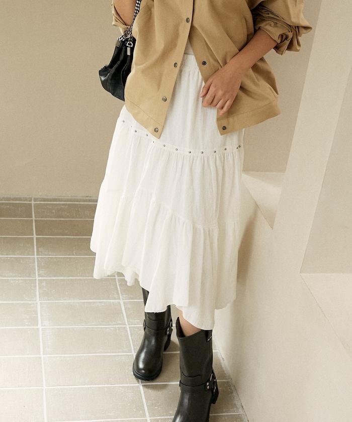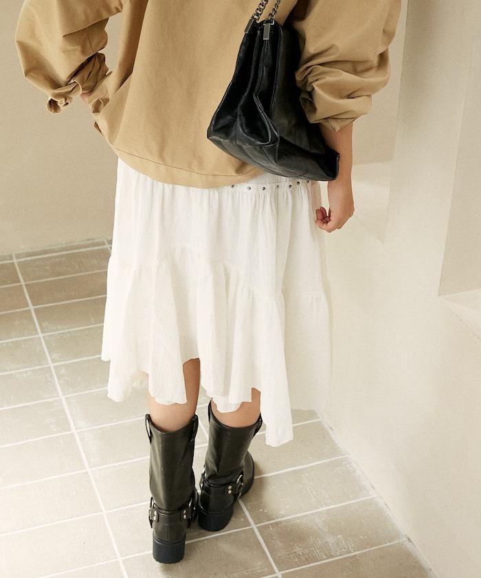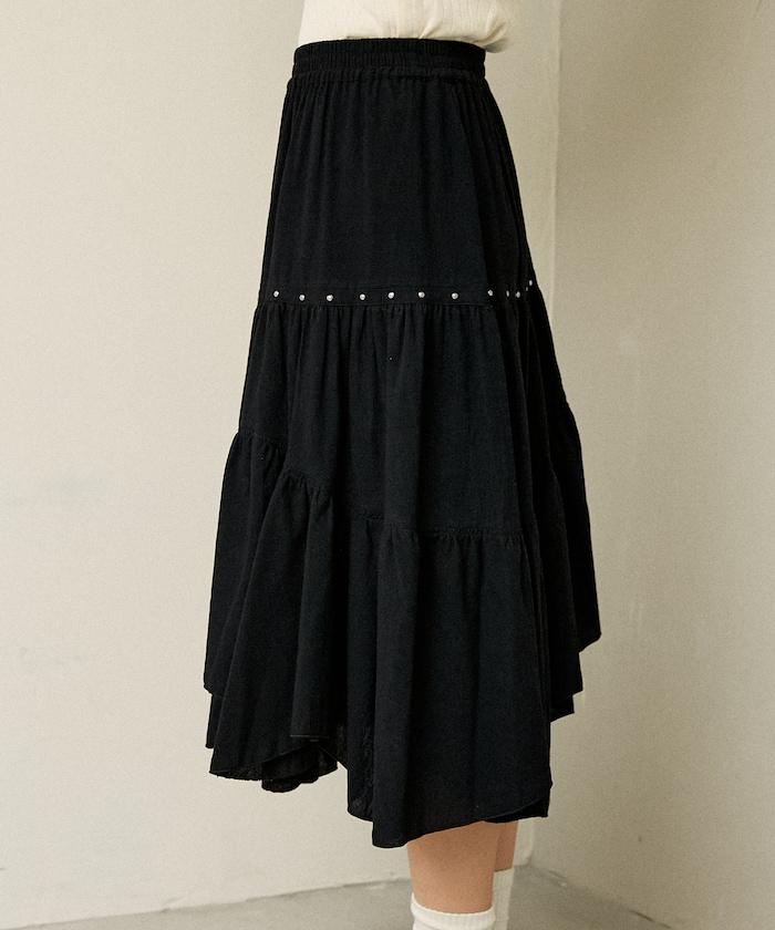 鉚釘裝飾不對稱層疊半身裙
