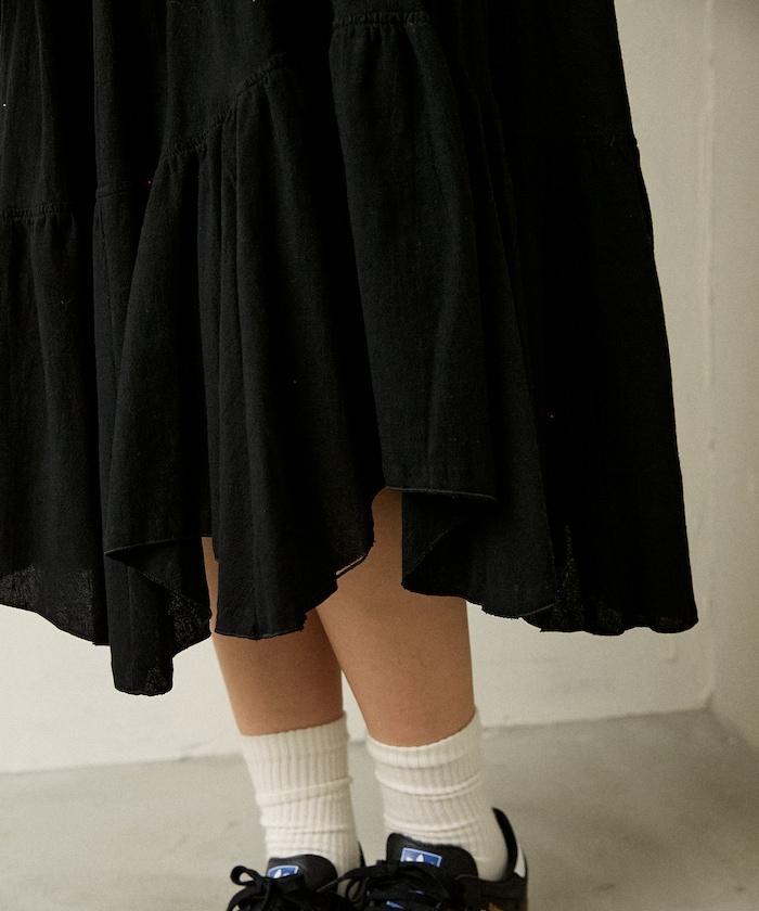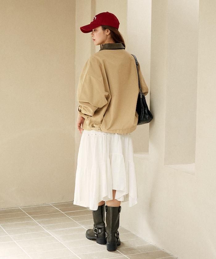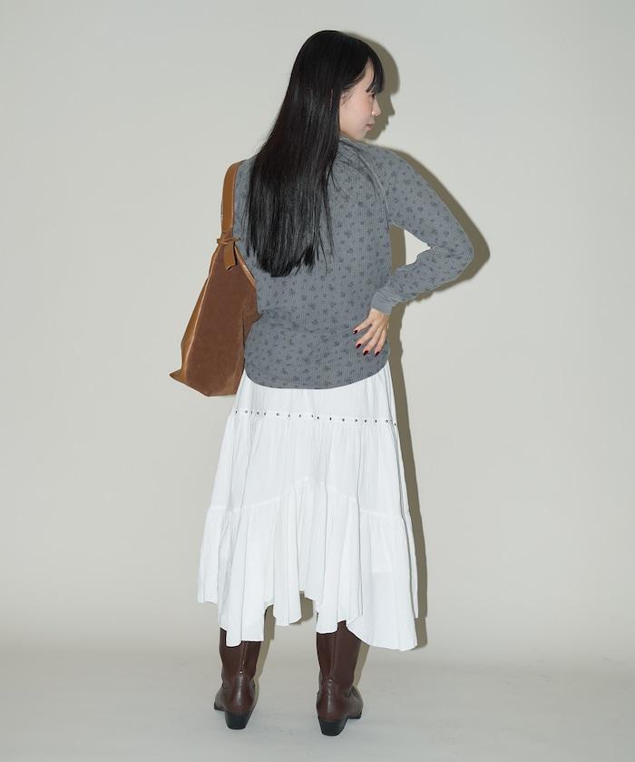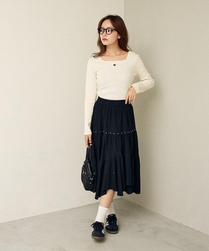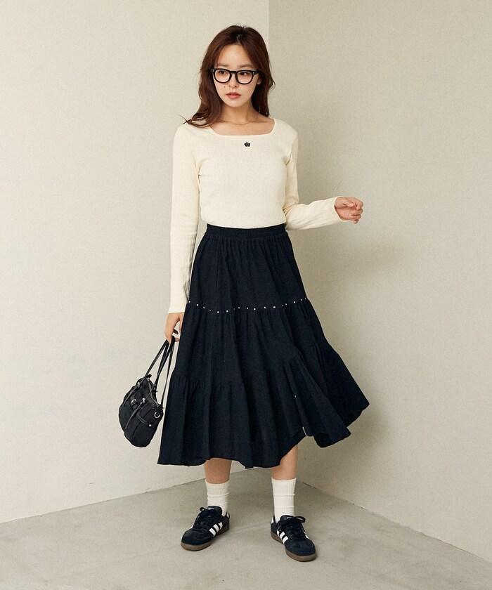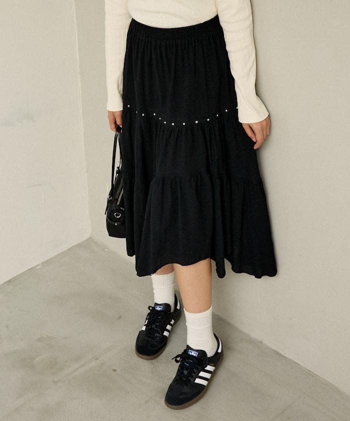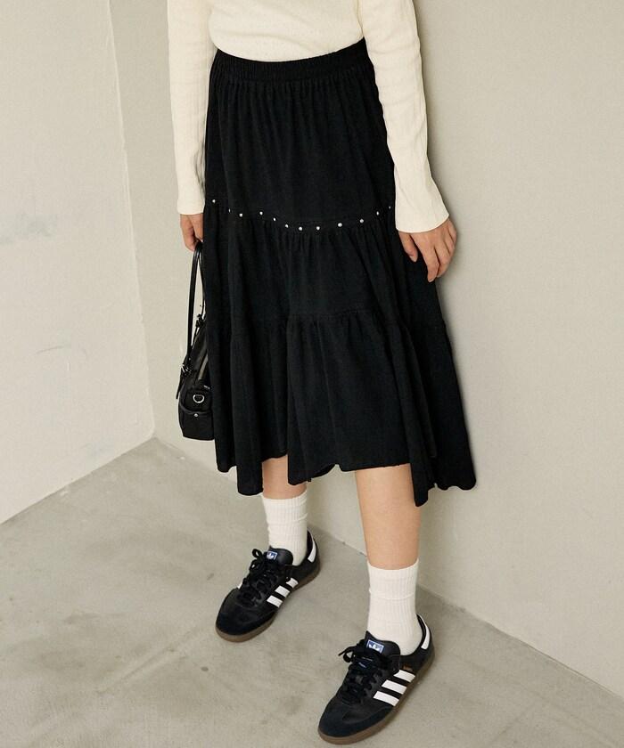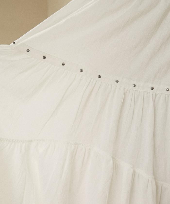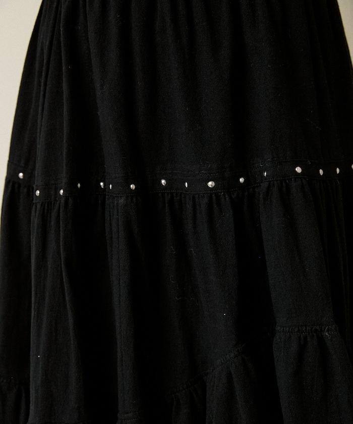 鉚釘裝飾不對稱層疊半身裙