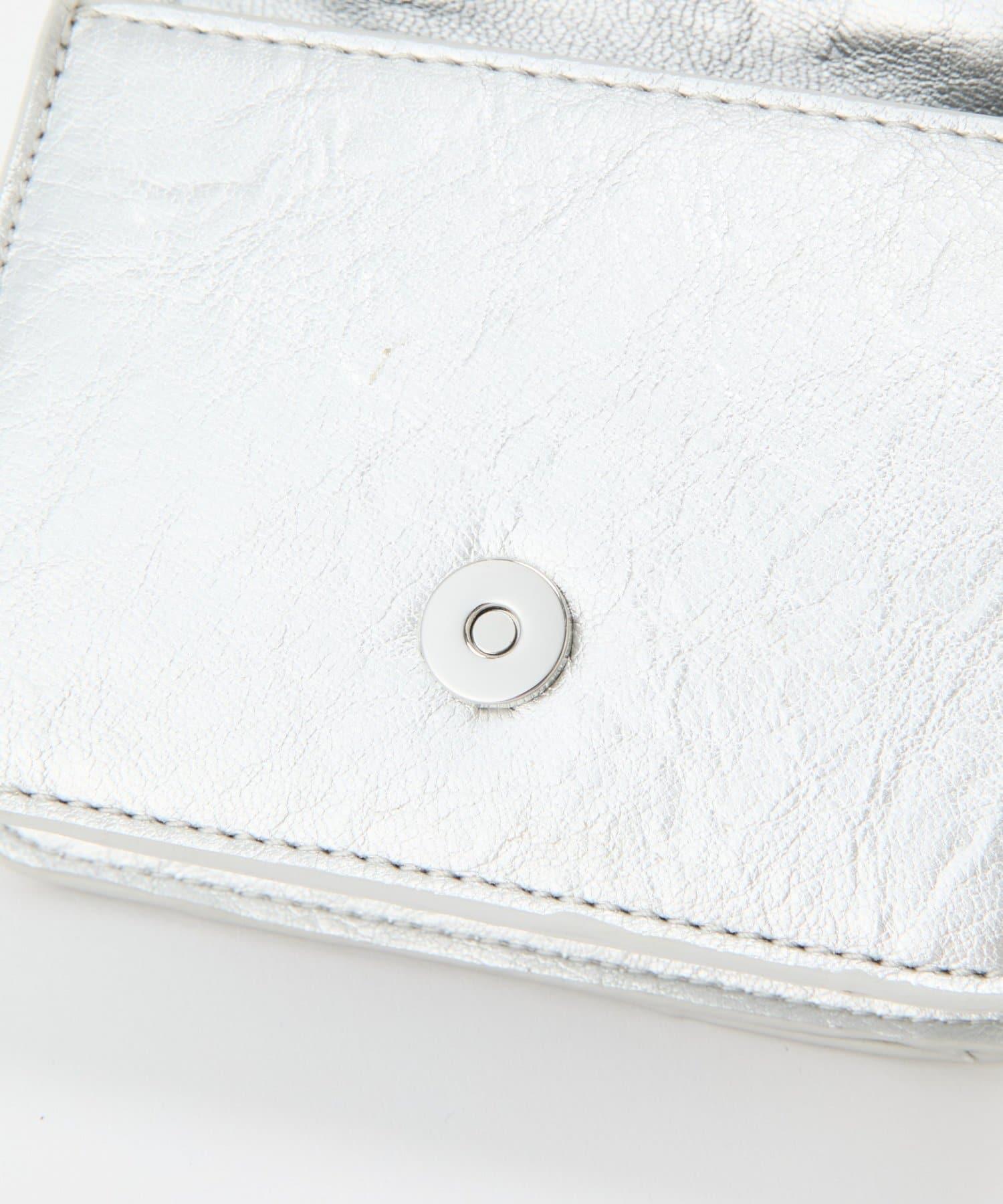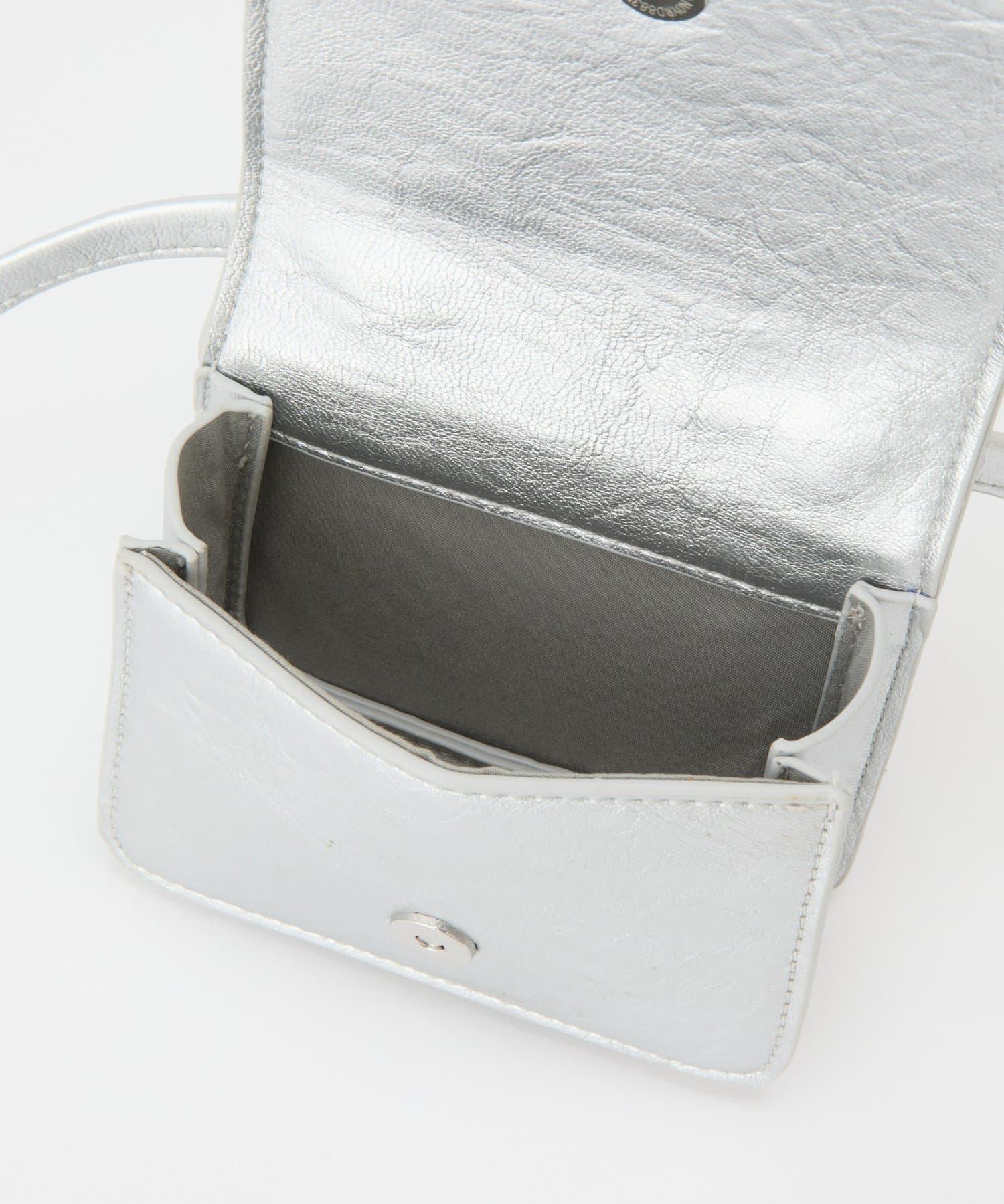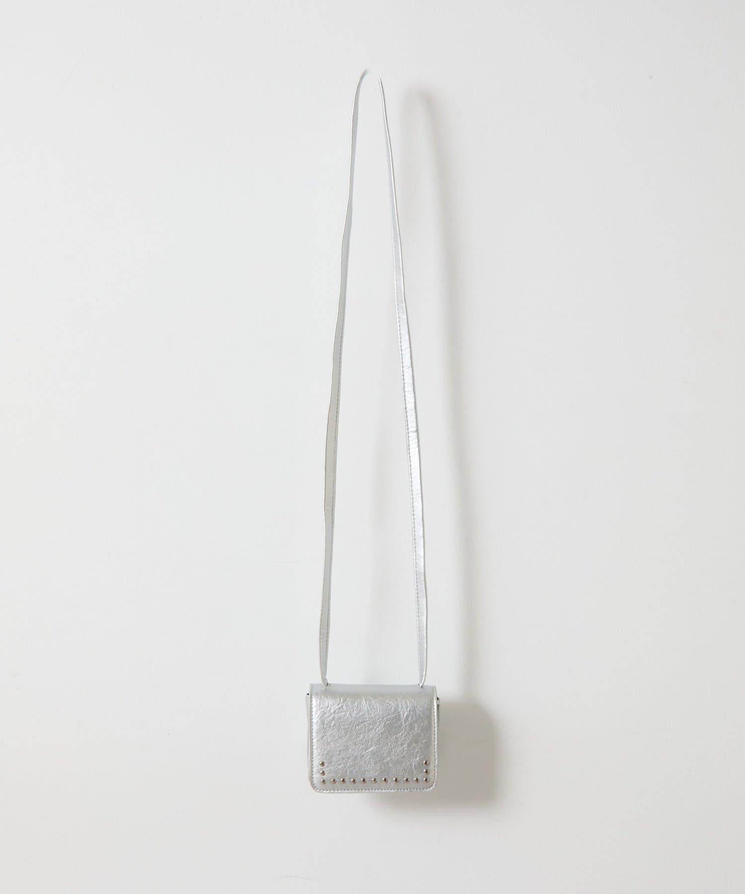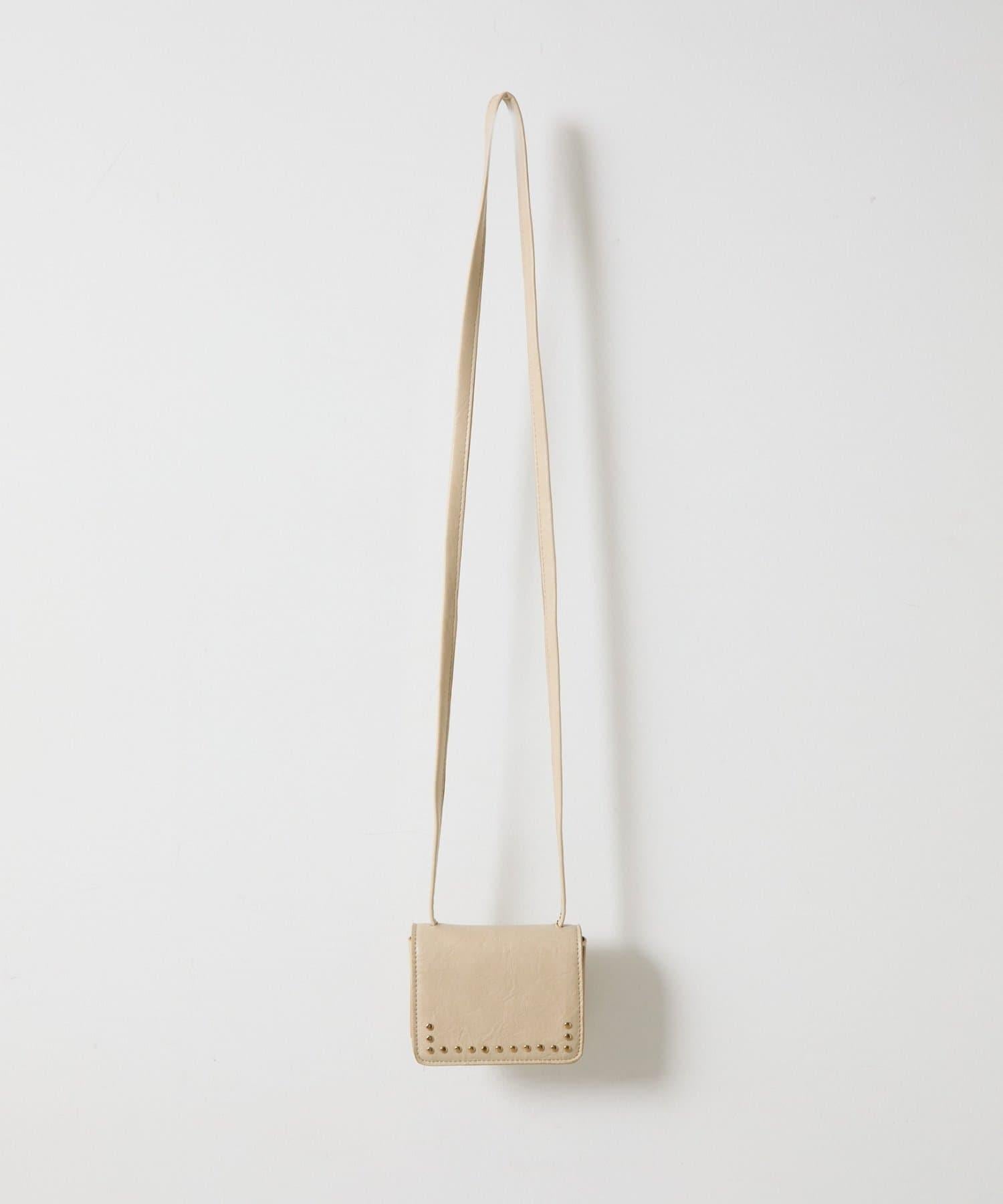 這款迷你單肩包體積小巧,飾有銀色鉚釘。