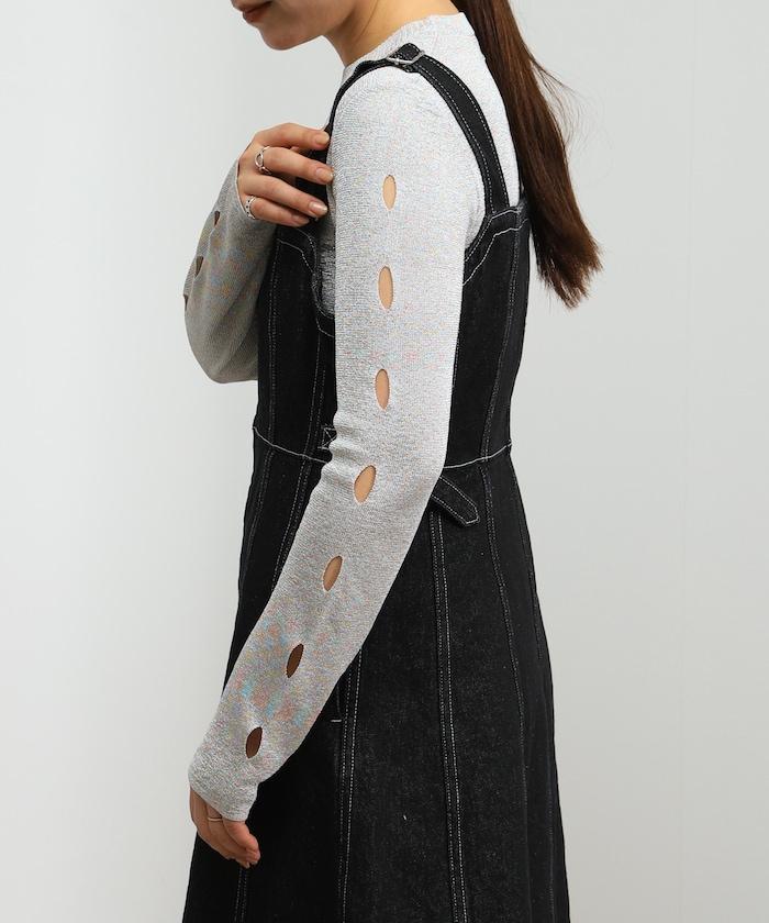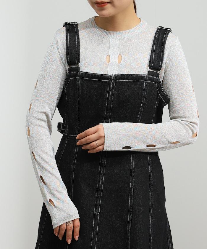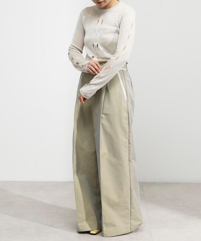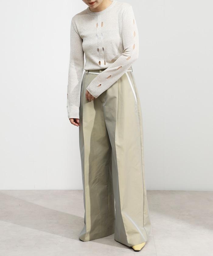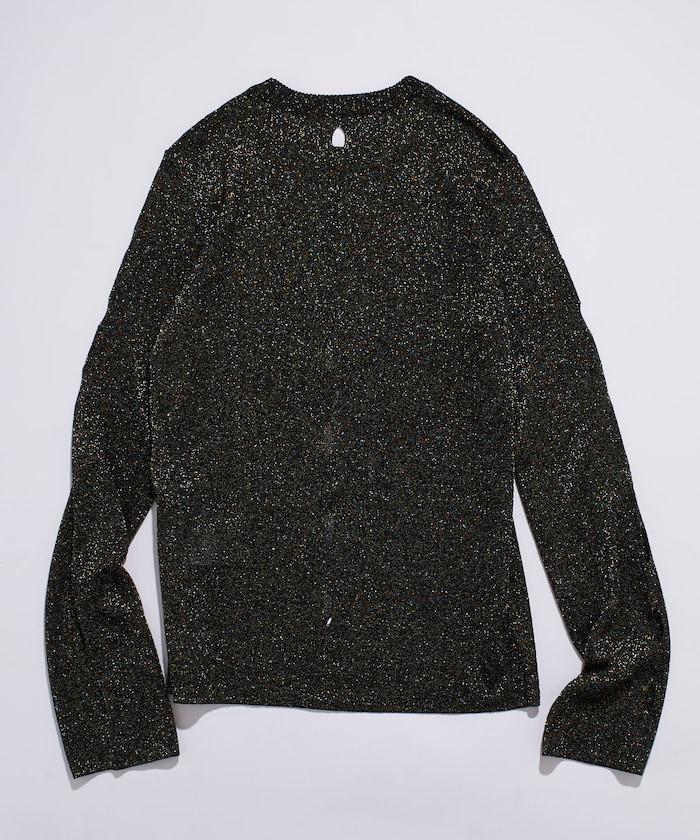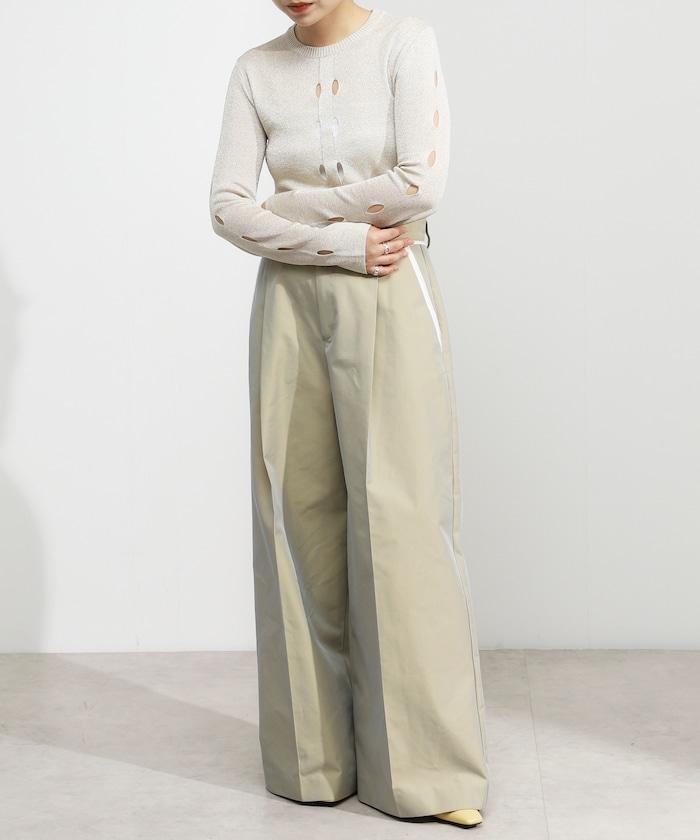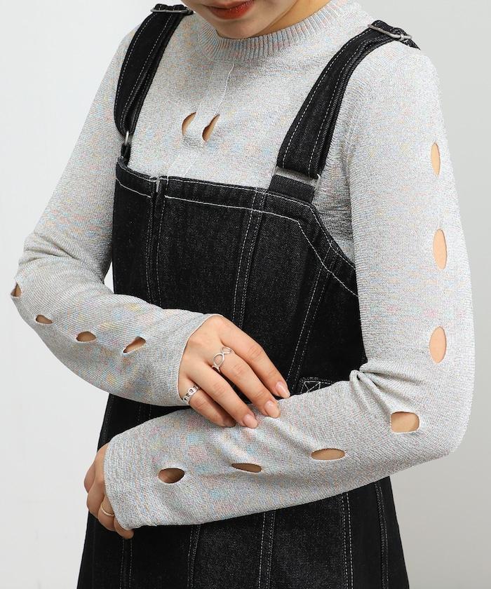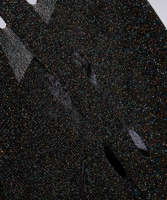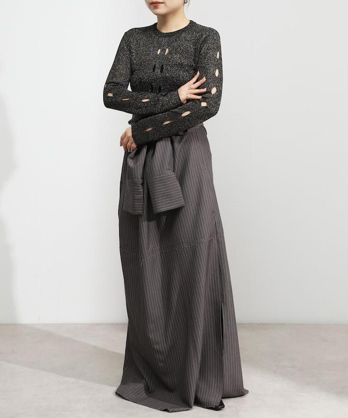 設計感十足的薄紗針織上衣,開衩呈線條狀。